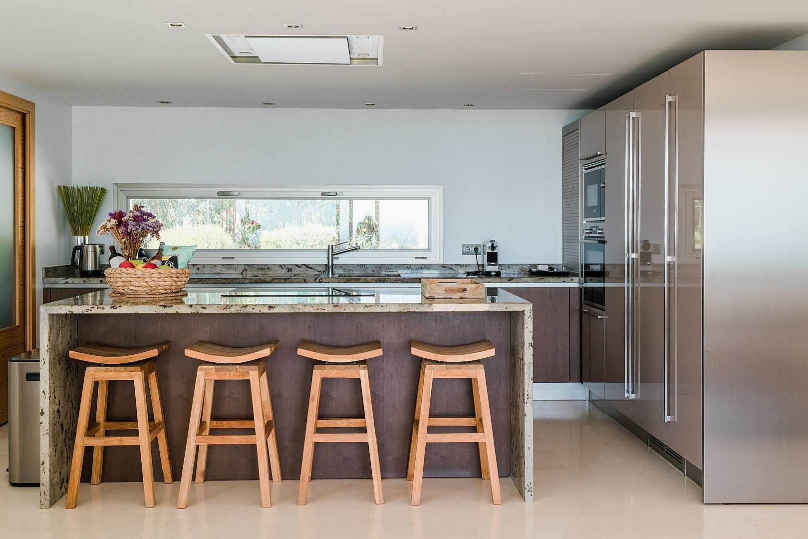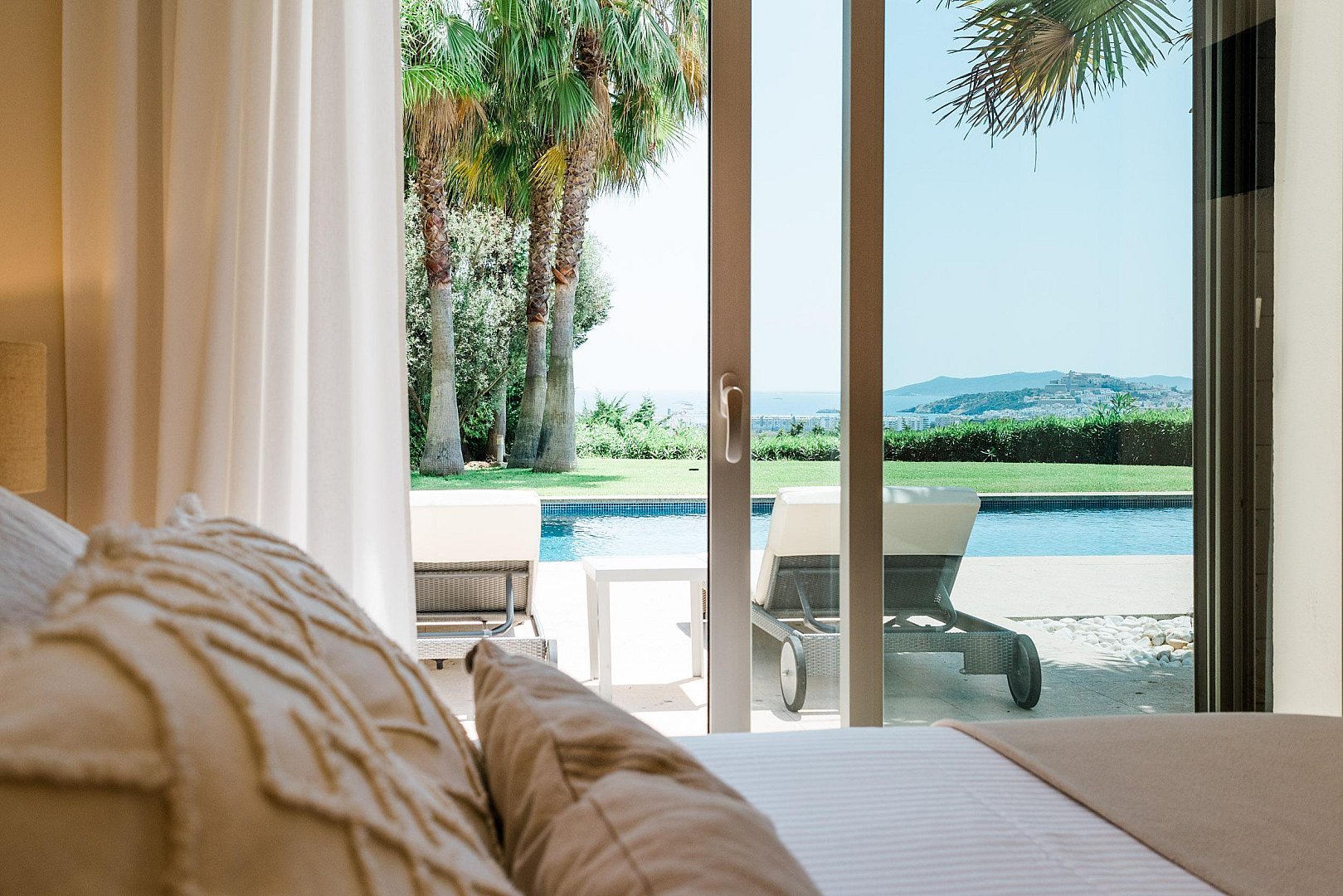 This sophisticated family villa in Can Rimbau offers a luxurious retreat with stunning views, modern comforts, and high-end amenities, making it the perfect Ibiza getaway.