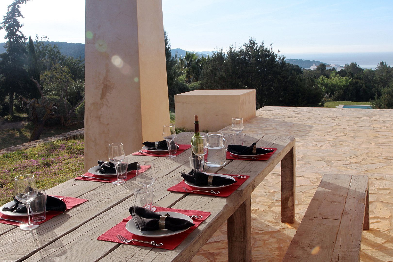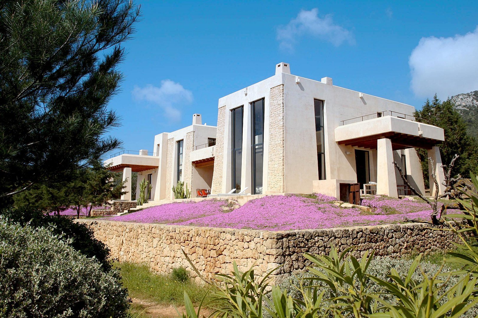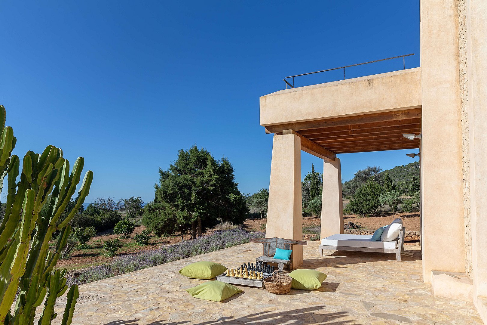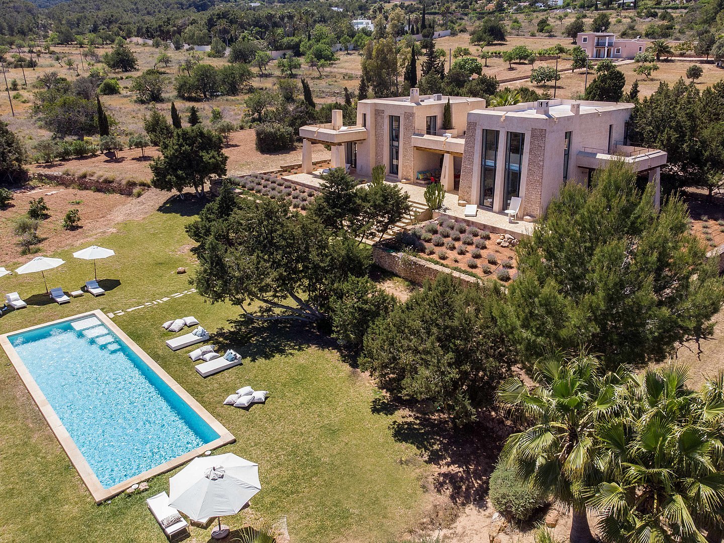 This outstanding villa designed by a well-known architect was completed in July 2006. It is unique because of its design and its situation just behind the monastery of Es Cubells, within walking distance of the small village. It combines open and very bright spaces, enjoys various terraces, and a lovely very private garden.