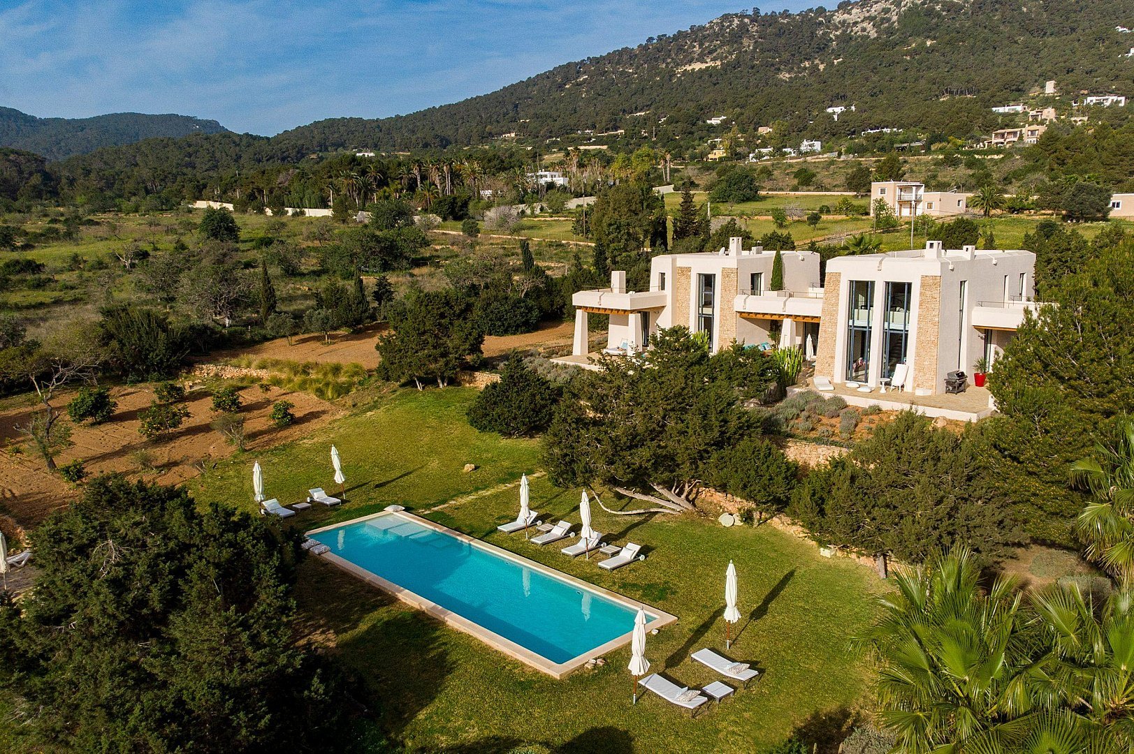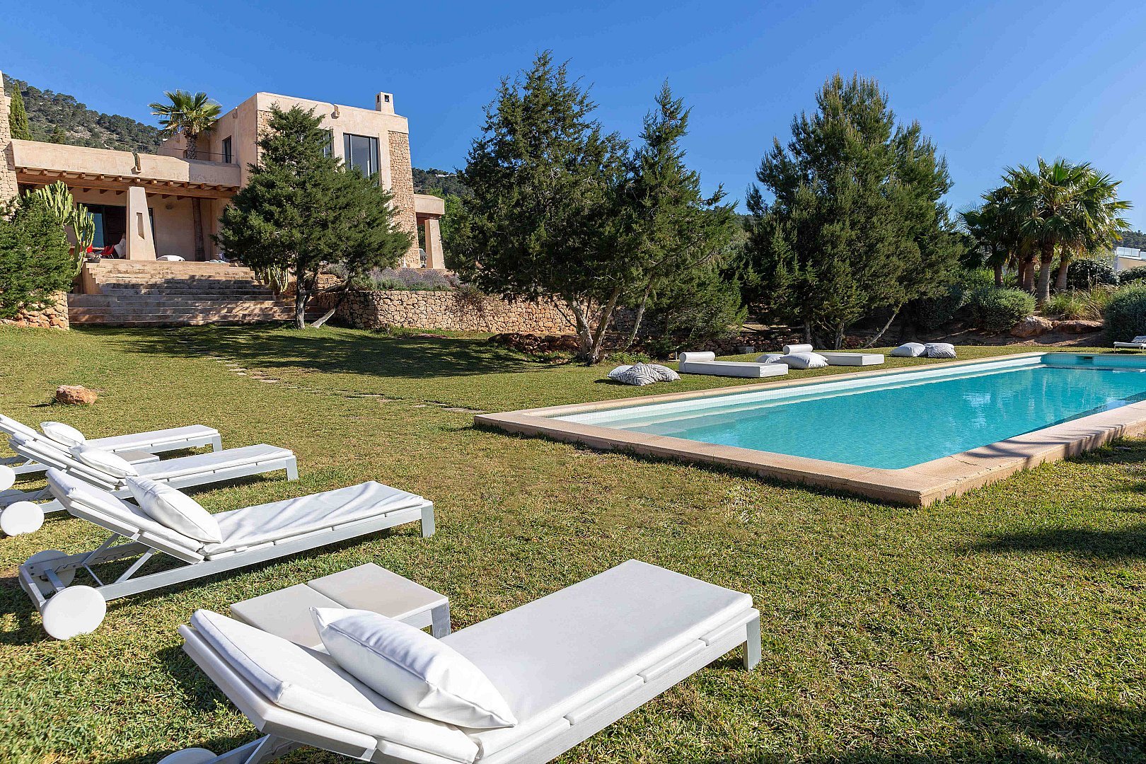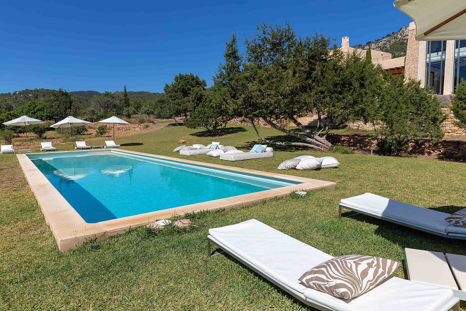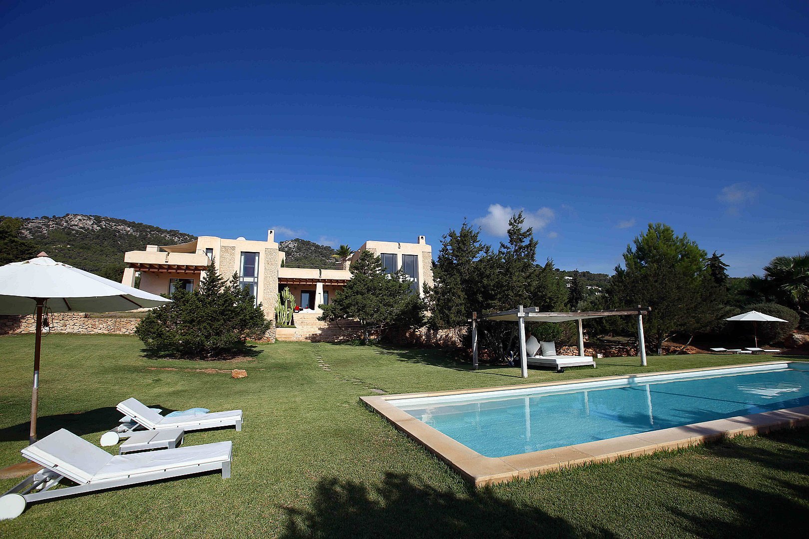 This outstanding villa designed by a well-known architect was completed in July 2006. It is unique because of its design and its situation just behind the monastery of Es Cubells, within walking distance of the small village. It combines open and very bright spaces, enjoys various terraces, and a lovely very private garden.