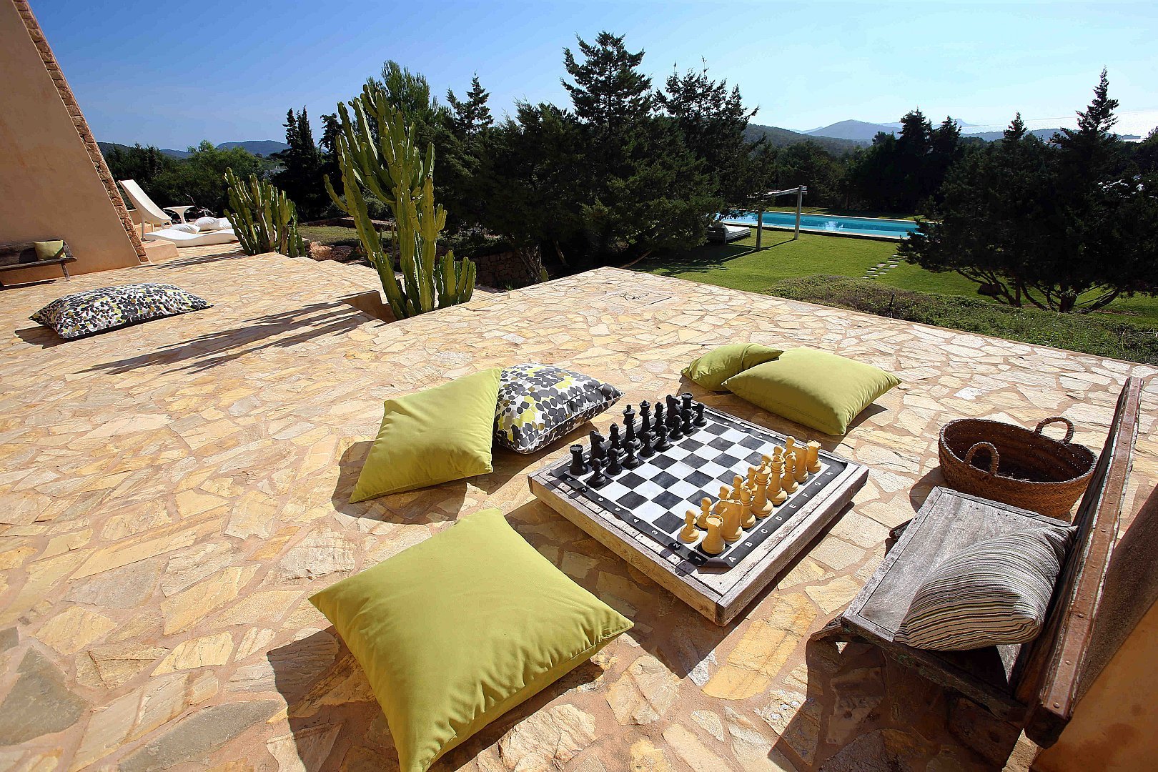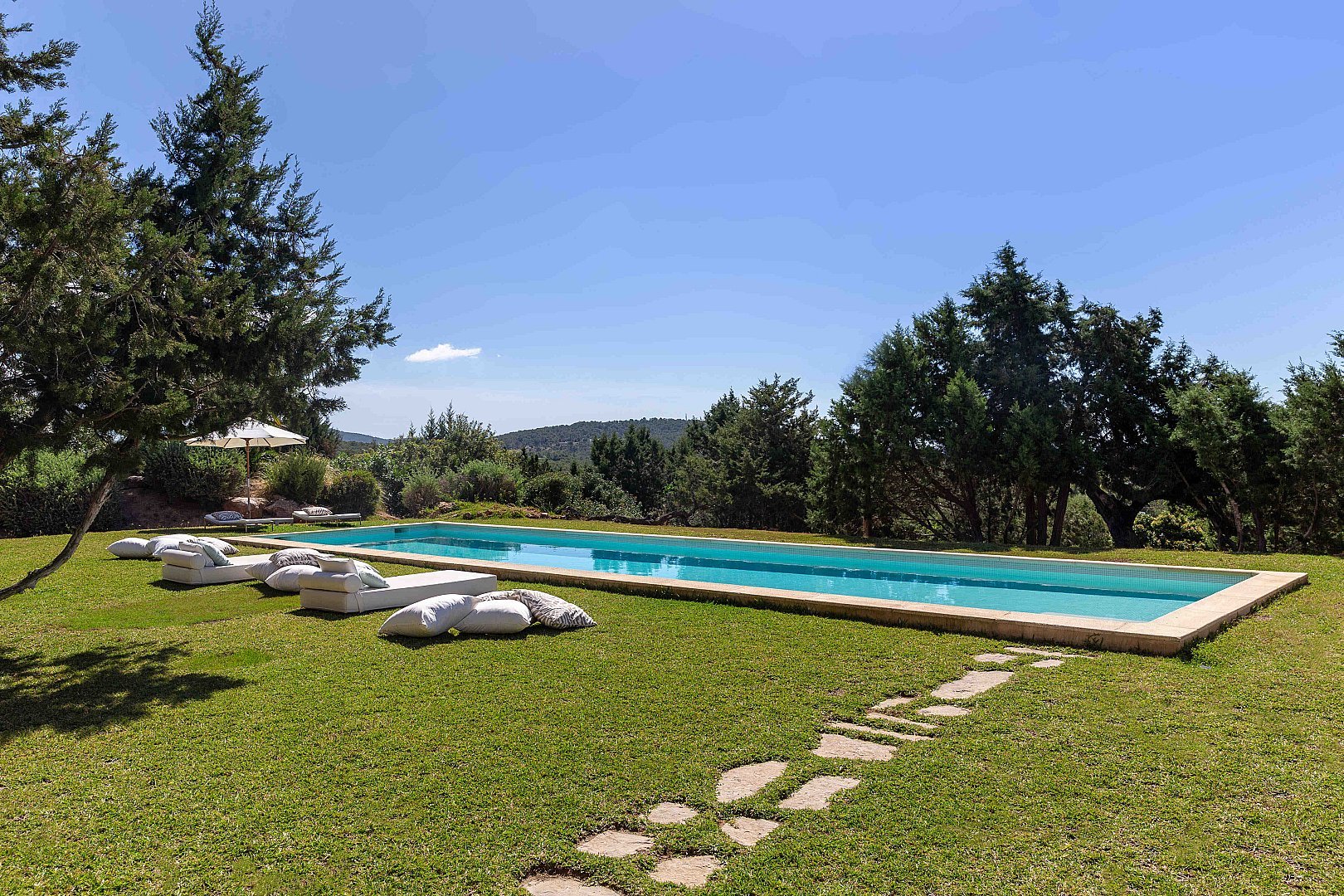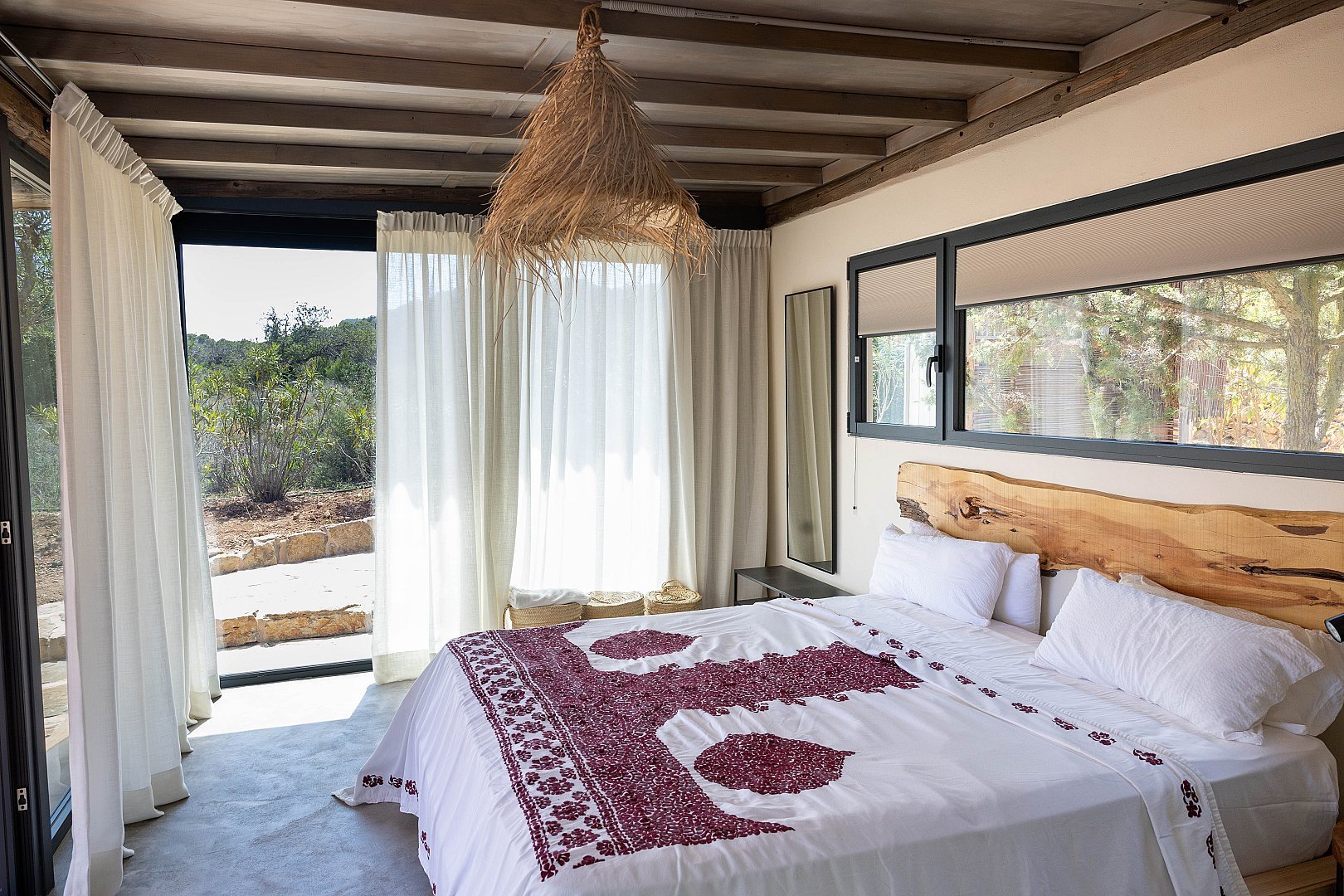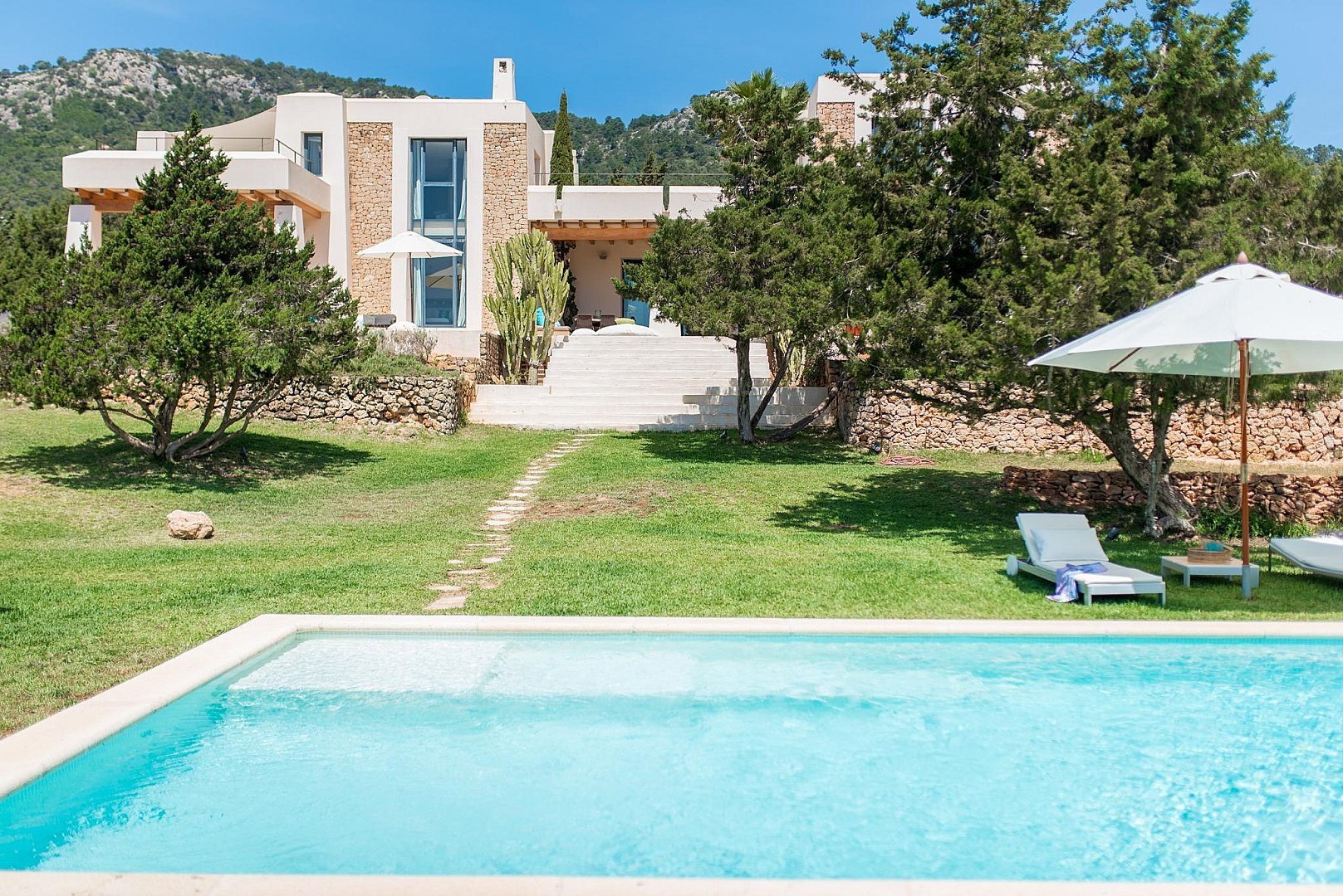 This outstanding villa designed by a well-known architect was completed in July 2006. It is unique because of its design and its situation just behind the monastery of Es Cubells, within walking distance of the small village. It combines open and very bright spaces, enjoys various terraces, and a lovely very private garden.