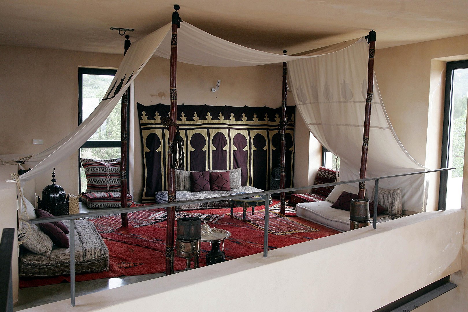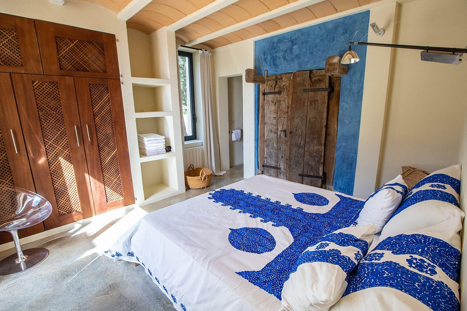 - Master bedroom: on the first floor with double bed (1.60 x 2.00 m), open plan bathroom with bath, access to the terrace, newly decorated with high-end furnishings and luxury linens for added comfort