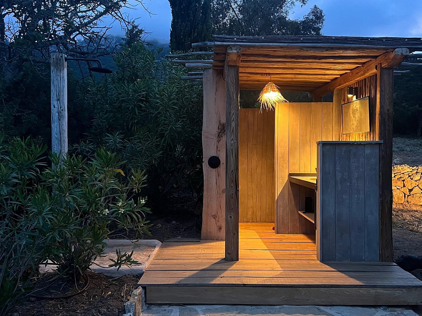 - Open-air bathroom on one side with an open-air shower, ideal for warmer months ( Ideal for use during the warmer months )