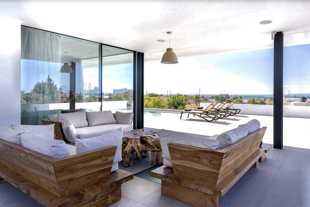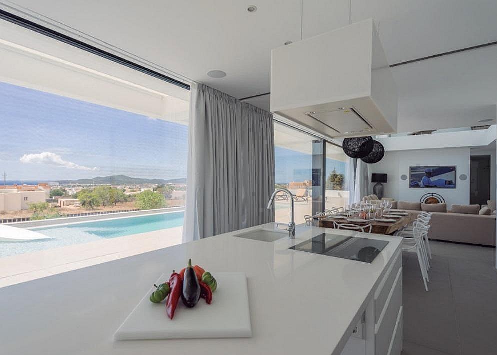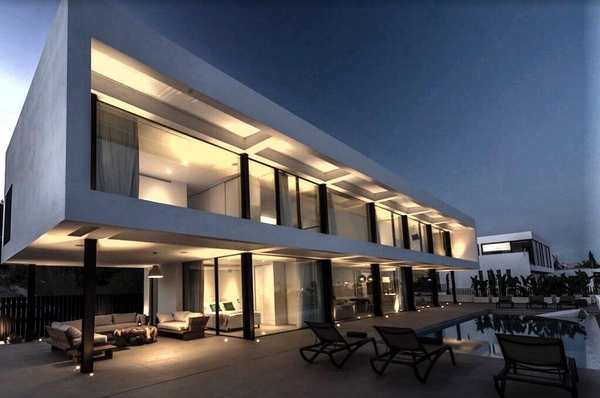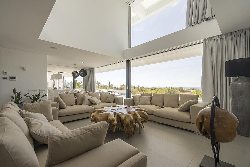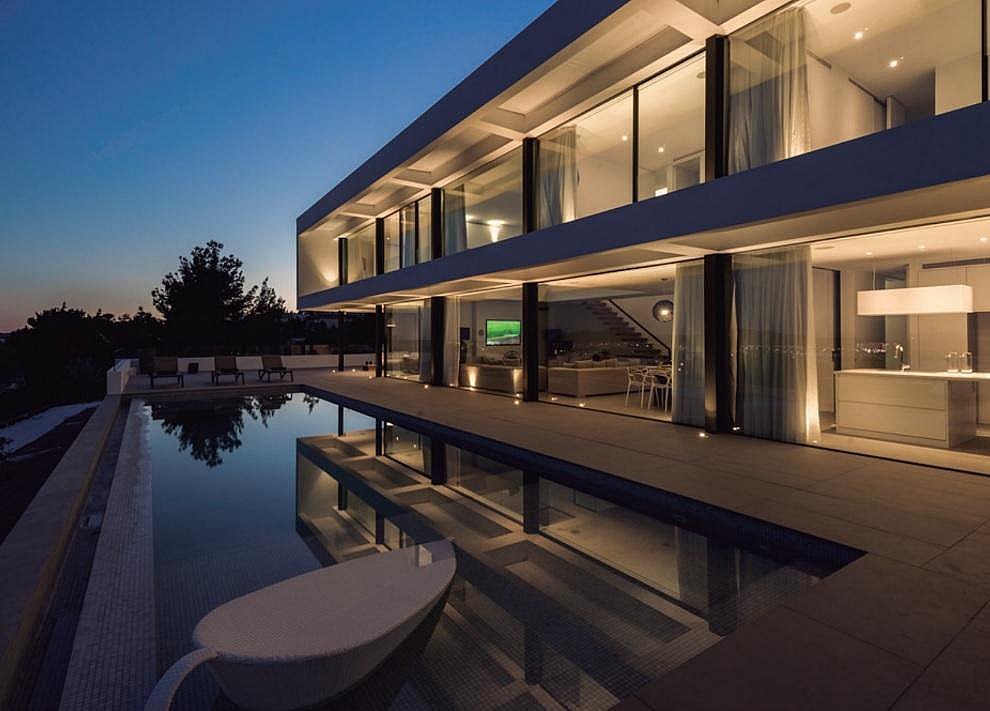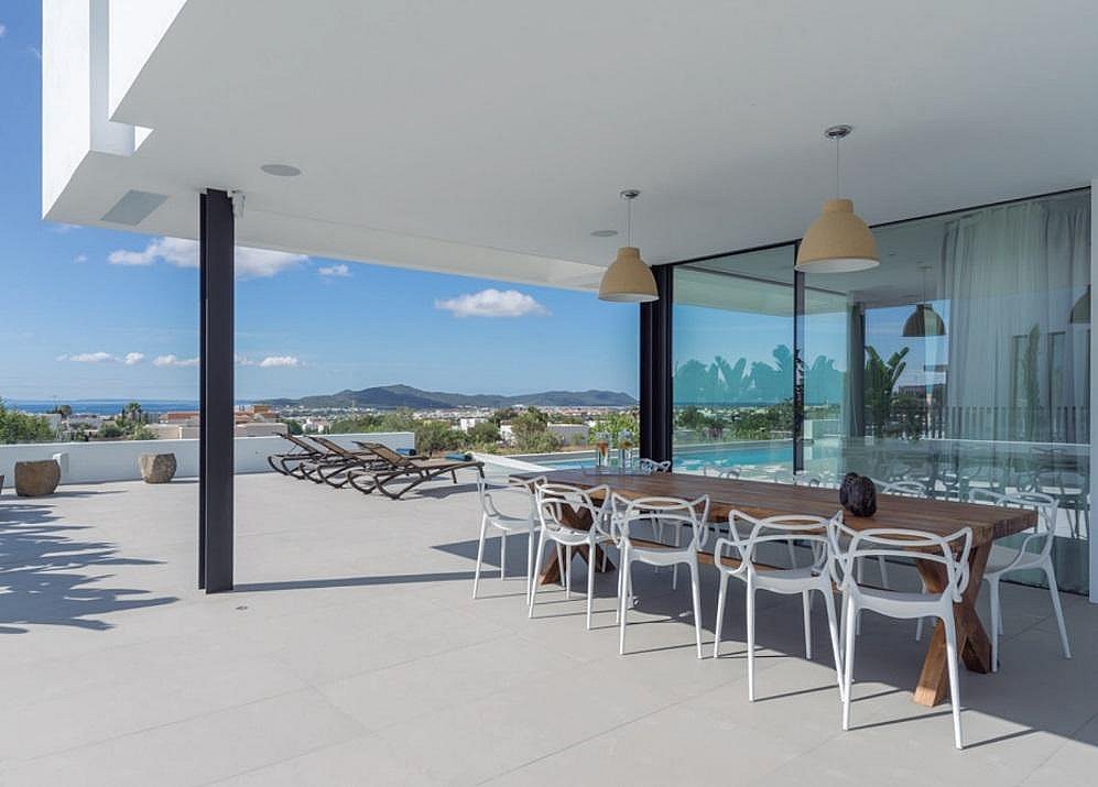 This luxury villa is strategically located in the exclusive Can Fita residential area, along the coastal road leading away from Ibiza town. It is: