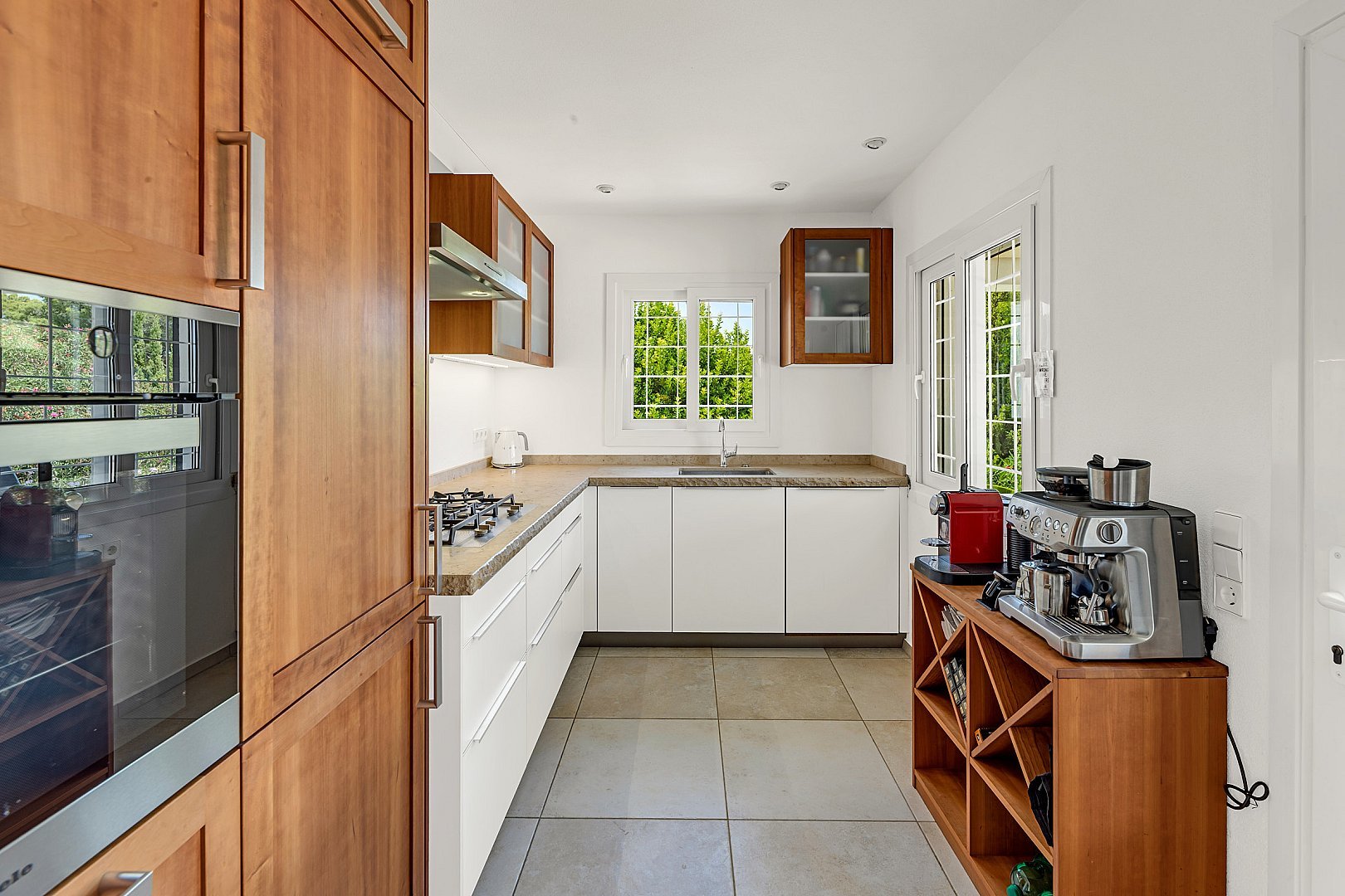Located in a quiet residential area, this delightful single-storey home offers comfort, functionality, and a privileged location. Just a few minutes' walk away, you'll find two magnificent beaches — allowing you to enjoy the sea without ever needing a car. Surrounded by a beautiful Mediterranean-style garden, the property faces west, offering spectacular sunsets each evening. Inside, the spacious and bright living-dining room features a cozy fireplace and opens onto a covered porch — perfect for relaxing in the shade on warm days. From here, you can step directly into the pool, ideal for cooling off and enjoying the outdoors. The fully equipped kitchen has direct access to the porch, where a large table invites you to enjoy outdoor meals. Outside, you'll also find a barbecue area. The house offers three spacious bedrooms, all exterior and filled with natural light. The master bedroom includes an en-suite bathroom, while the other two share a full bathroom. This property is ideal for those seeking a comfortable, well-laid-out home in a privileged setting near the sea, with all the amenities needed to enjoy a perfect summer.