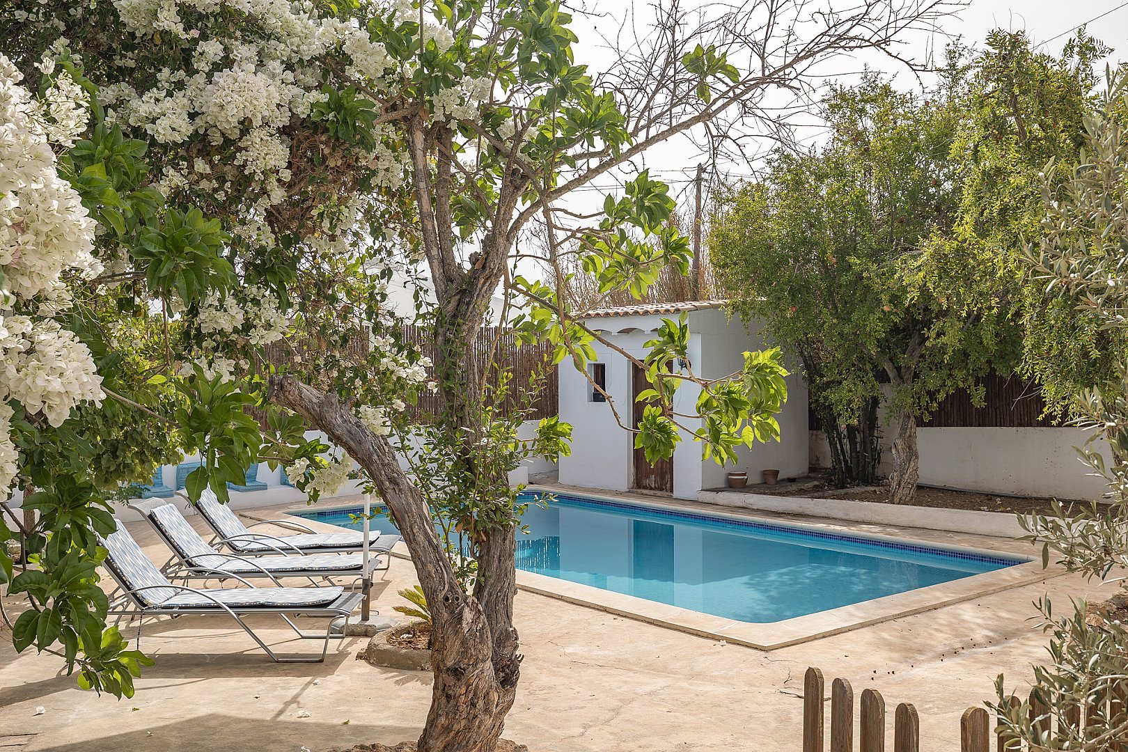 Type: House • Region: Ibiza Town and Surroundings • Year of construction: 1952 • Total Surface: 110 m2 • Total rooms: 5 • Bedrooms: 4 • Bathrooms: 2 • Living space: 110 m2 • Plot size: 1.005 m2 • Guest Apartment • Fireplace • Swimmingpool • Floor type: Tiles •