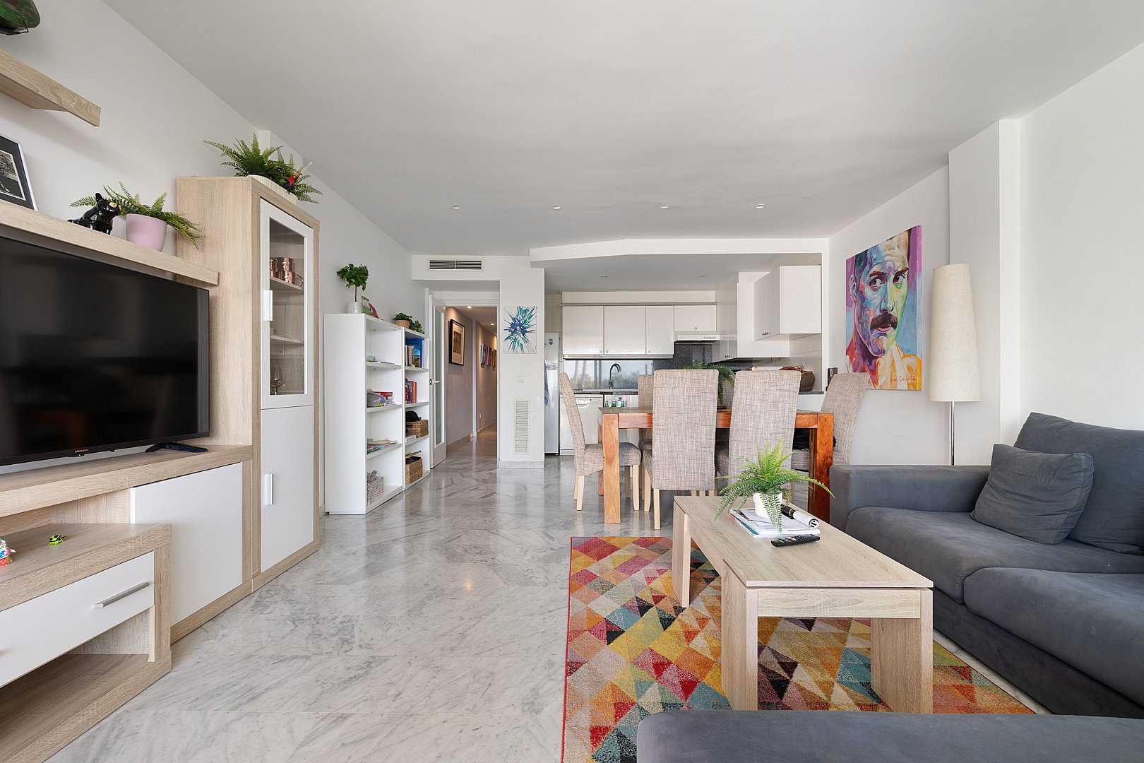 Situated in the sought-after Las Terrazas residence in Marina Botafoch, this apartment offers a comfortable and functional lifestyle. Located on the first floor, the property features a practical layout with two bedrooms and two bathrooms, a bright open-plan living and dining area with an integrated kitchen and direct access to a pleasant terrace with beautiful views towards Dalt Vila. The apartment is designed for everyday comfort, with a focus on easy maintenance and convenience. The building Las Terrazas is well known for its high-quality construction and excellent communal areas. Residents enjoy a fantastic swimming pool as well as private underground parking, a real advantage in this area. Thanks to its central yet quiet location it’s equally suitable as a year-round residence or as a holiday base in one of Ibiza’s most desirable areas.