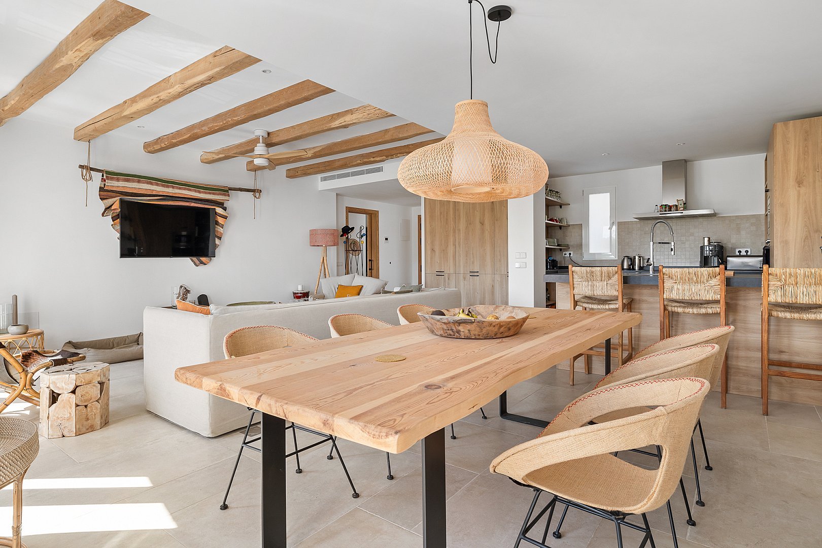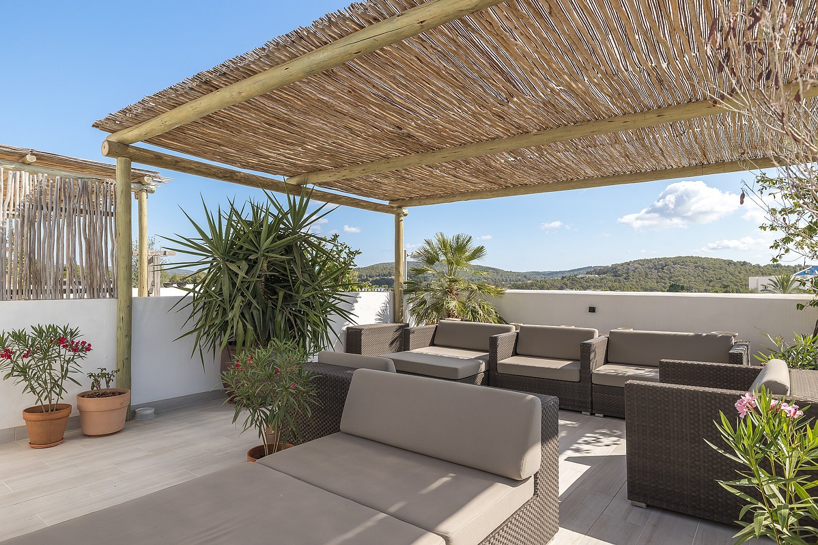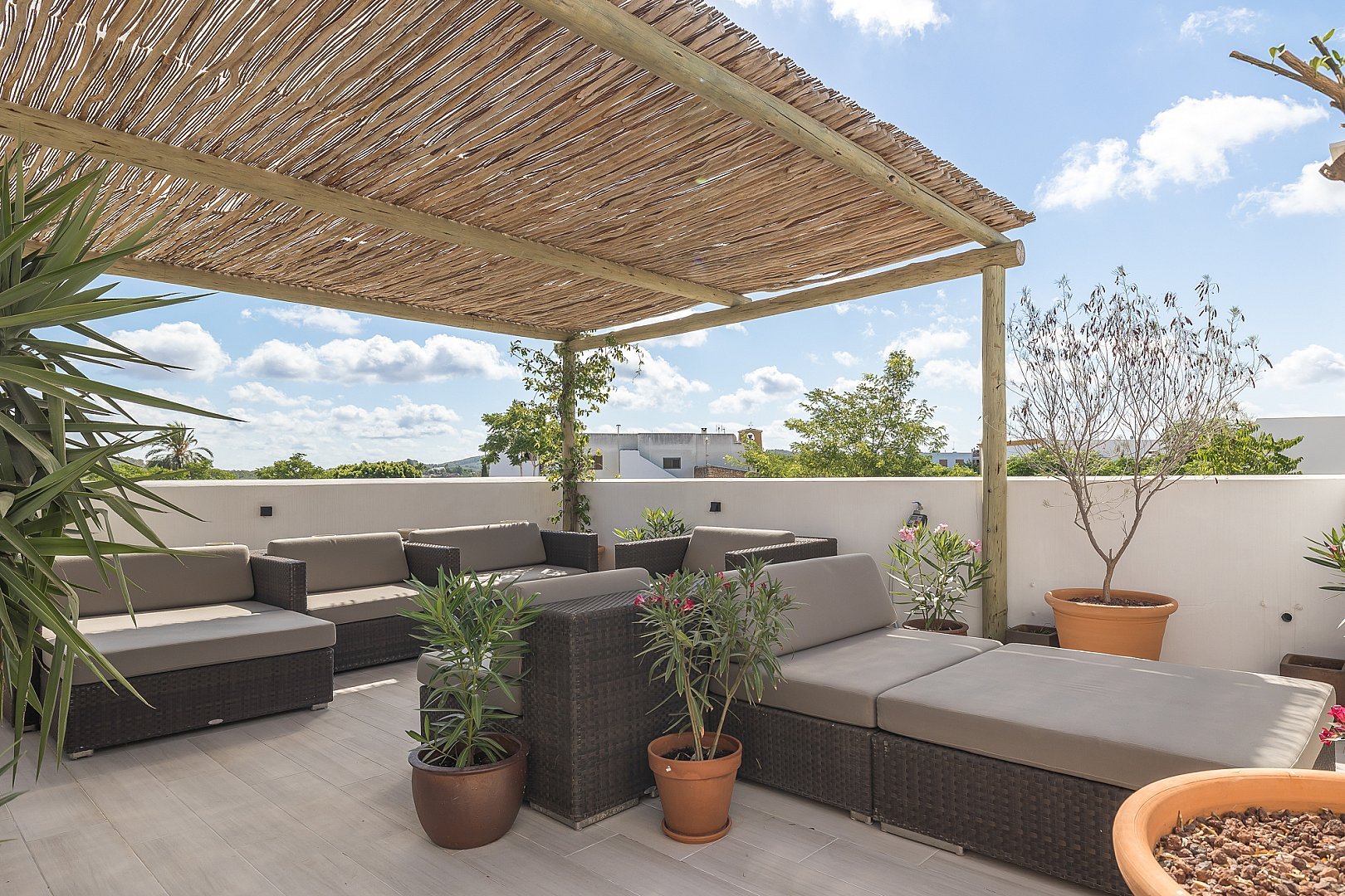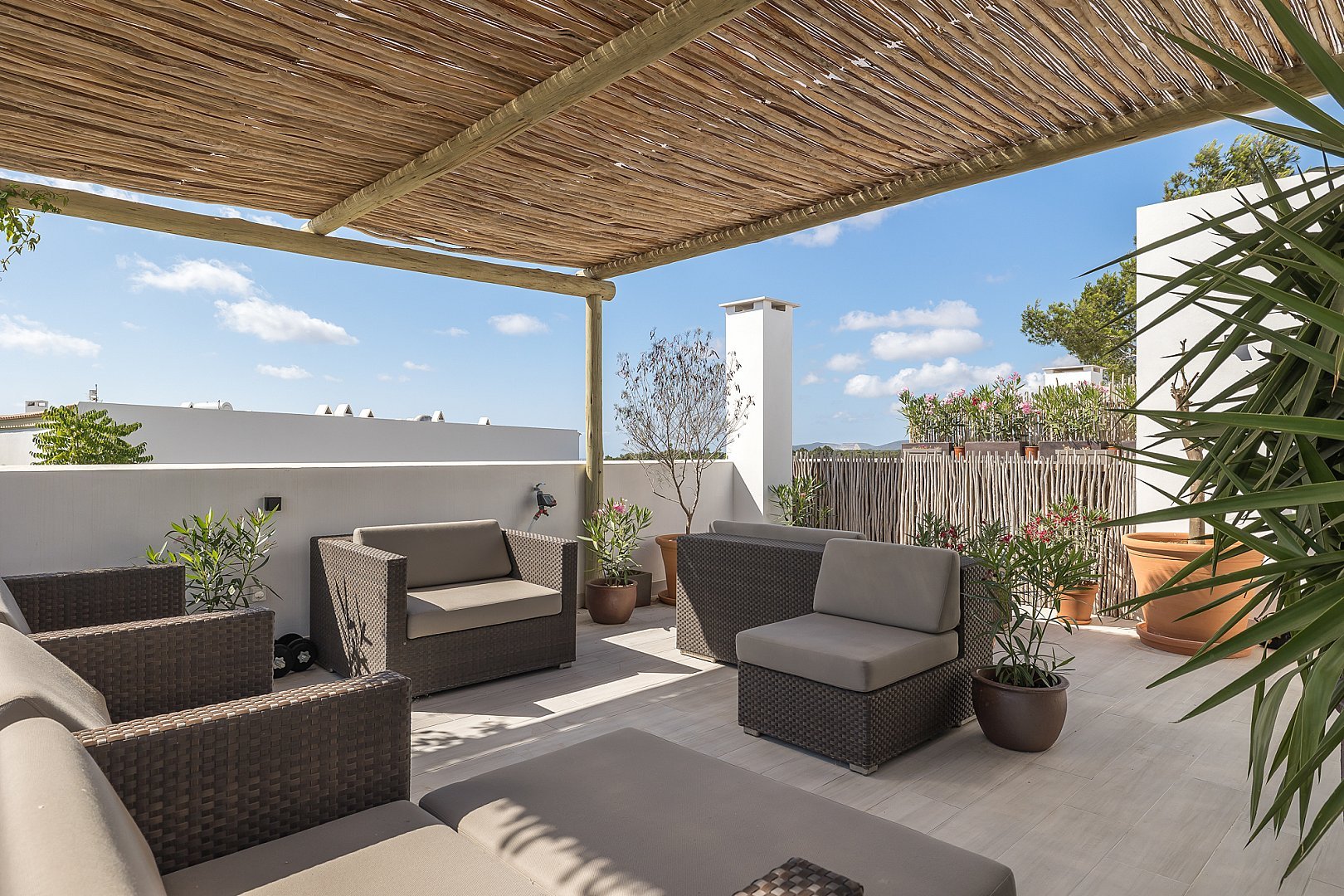 Exclusive property located in the heart of the charming village of Santa Gertrudis, one of the most sought-after areas on the island of Ibiza. This recently built penthouse stands out for its elegant finishes, thoughtful layout, and high level of comfort. Originally designed with two bedrooms, the layout was modified to create a spacious and bright master suite featuring a generous and functional walk-in wardrobe. The en-suite bathroom offers a refined combination of high-quality materials and is equipped with double sinks, a bathtub, and a shower. In addition, the property includes a guest toilet. The fully equipped kitchen, fitted with top-of-the-line appliances and high-quality details, blends seamlessly into the living area, creating a warm and sophisticated atmosphere. Three balconies with large windows allow natural light to flood the interiors, providing a pleasant sense of space and well-being. As an added highlight, the penthouse features a spectacular private rooftop terrace with open views over the village center – the perfect spot to enjoy the Mediterranean climate in complete privacy. The property is completed by a lift serving all floors, a private parking space, and a storage room, ensuring the utmost convenience. A unique opportunity to acquire a high-end property in a prime location, ideal both as a permanent residence and as a solid investment on the island.