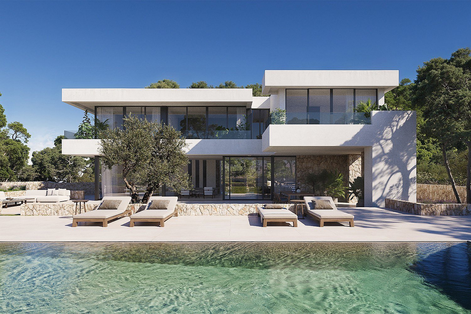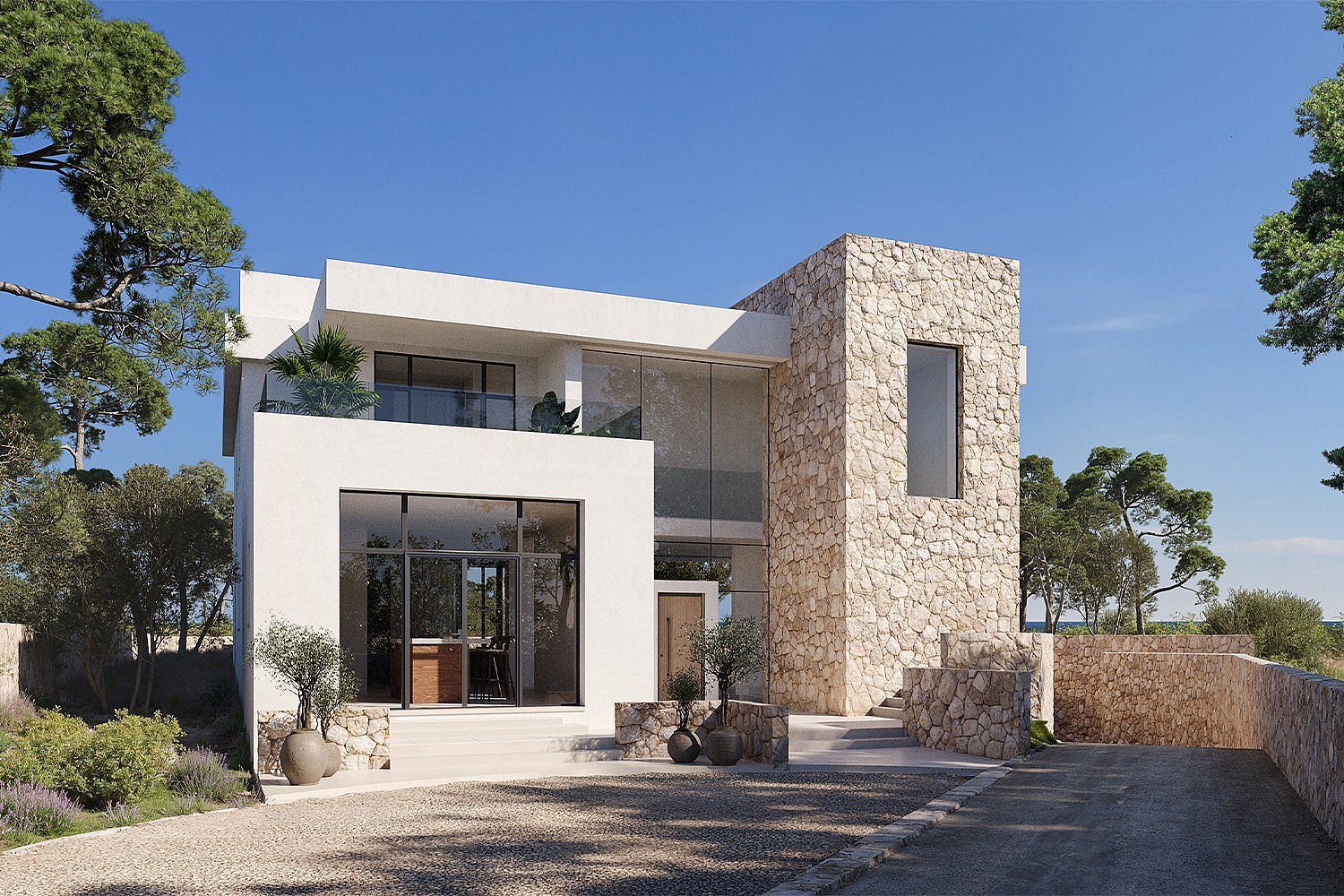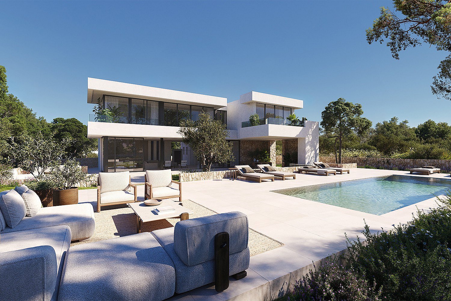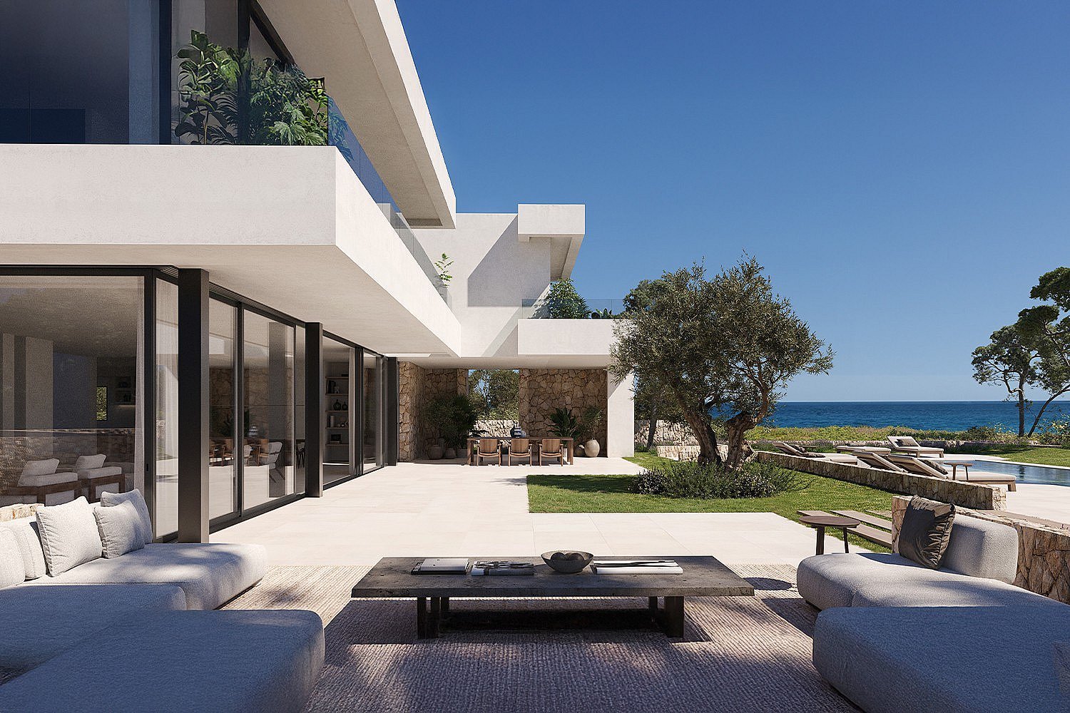 This is a rare opportunity to own a first line plot in the highly sought-after Cala Llenya, with exceptional views of the Mediterranean Sea and private access to the beach, offering unparalleled convenience for beach lovers. The plot, measuring 1,480 m², comes with an approved building license to construct a luxurious, perfectly positioned modern villa. The future house offers approximately 600 m², designed to integrate seamlessly with its coastal surroundings and includes three expansive bedrooms and four bathrooms, with the potential for an additional 60 m² extension, allowing for an extra bedroom and bathroom to accommodate your needs. From the living room you can enjoy the uninterrupted panoramic views of the Mediterranean, providing a tranquil and luxurious living environment. The villa also comes with a spacious basement that can be tailored to your preferences, offering options for a gym, spa, or entertainment areas. The plot provides ample space for a private swimming pool, enhancing the outdoor living experience. The modern villa design allows for customization, giving you the opportunity to infuse your personal style and preferences into the final build. This exceptional property represents a rare opportunity to create a luxury residence in one of Ibiza’s most desirable locations, combining stunning natural beauty with modern design and the flexibility to suit your lifestyle. Whether you're looking for a permanent residence or a holiday retreat, this property has everything you need to create your dream home in one of the most exclusive spots of Ibiza.