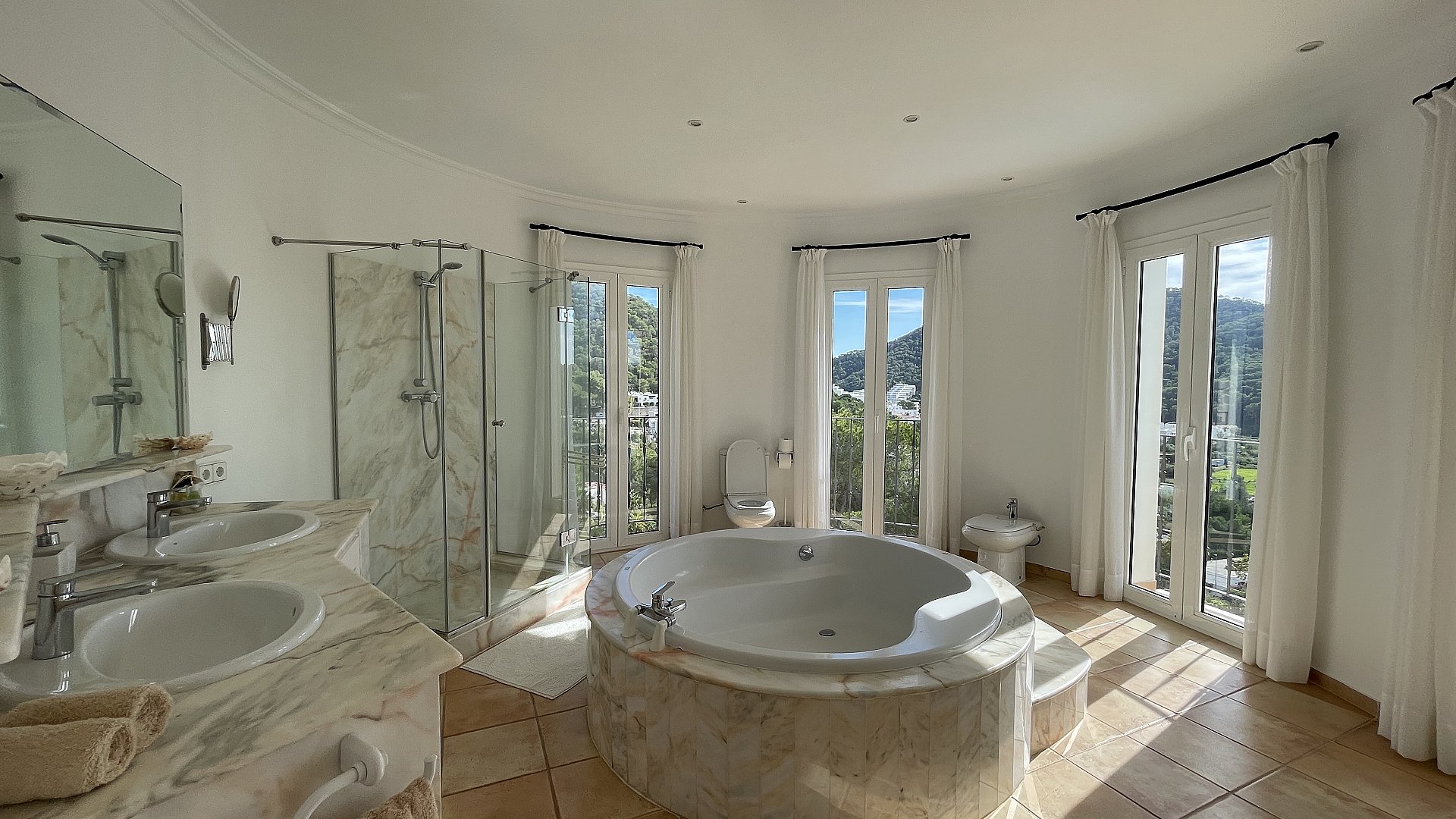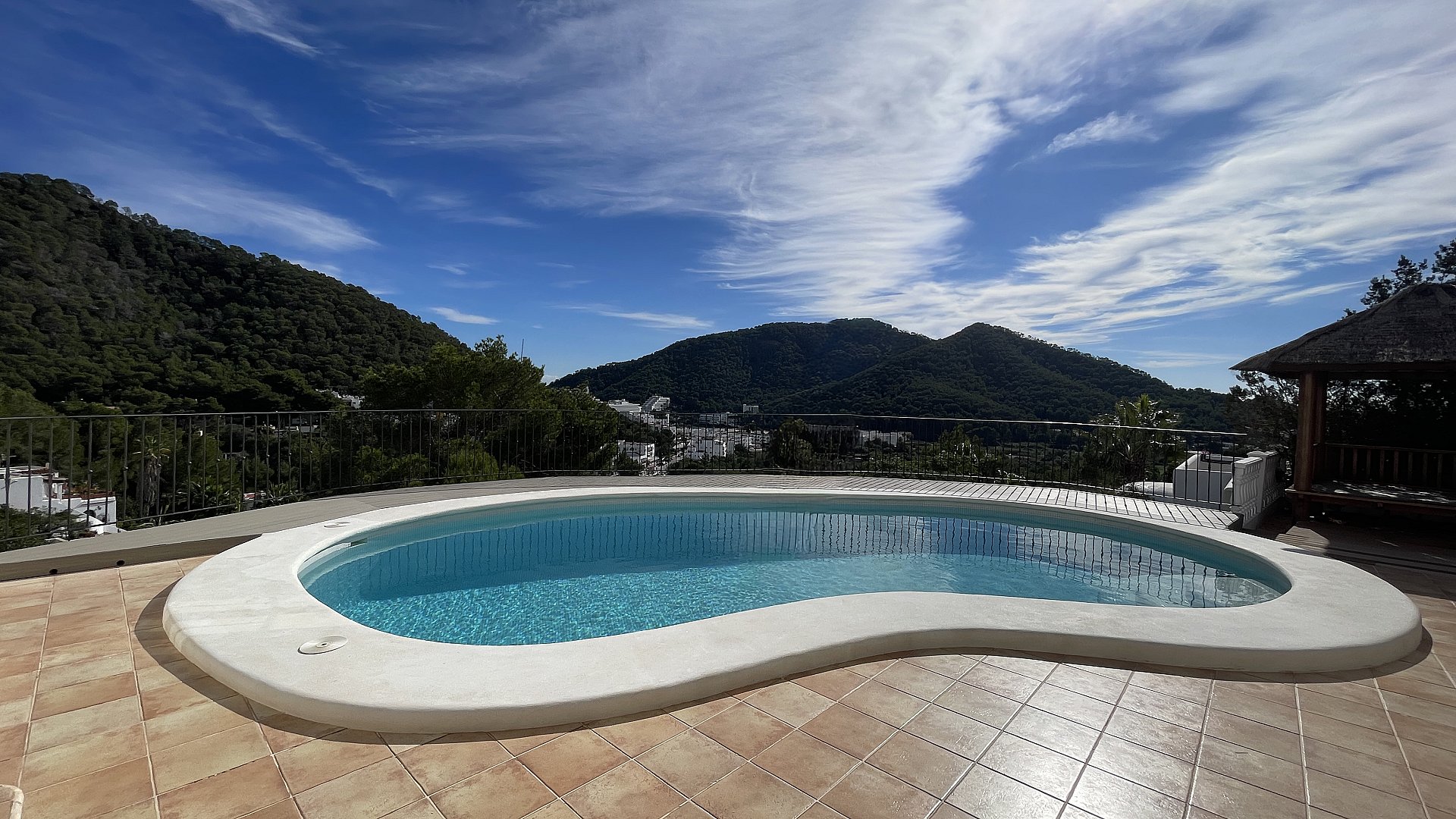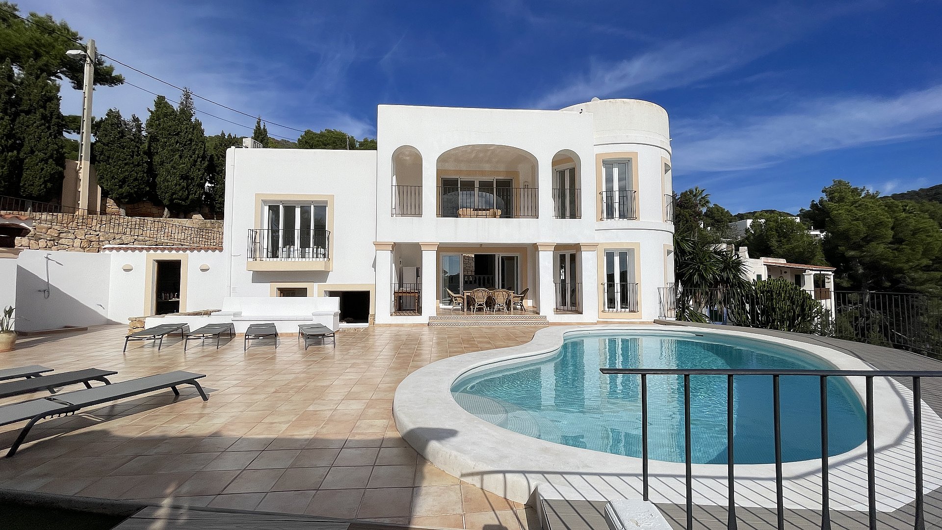 *ANNUAL RENT* Discover ultimate Ibiza living in this a sophisticated hillside retreat with sweeping sea, mountain, and pool views. Just steps from Cala Llonga Beach, this elegant villa offers total privacy with a round pool, lush garden, and an open-air shower. Designed for comfort, the main house features 3 beautifully appointed bedrooms and 2 bathrooms, while a separate independent suite offers an additional bedroom with its own bathroom en suite—perfect for guests seeking extra privacy. Enjoy modern conveniences including app-controlled underfloor heating, full air-conditioning, and a spacious terrace invites alfresco dining with stunning Mediterranean backdrops. Additional features include a double garage, private barbecue area, and beautifully maintained outdoor spaces perfect for relaxing or entertaining. With Ibiza Town, Marina Botafoch, and top island hotspots just minutes away, the Villa offers the perfect blend of Mediterranean charm.