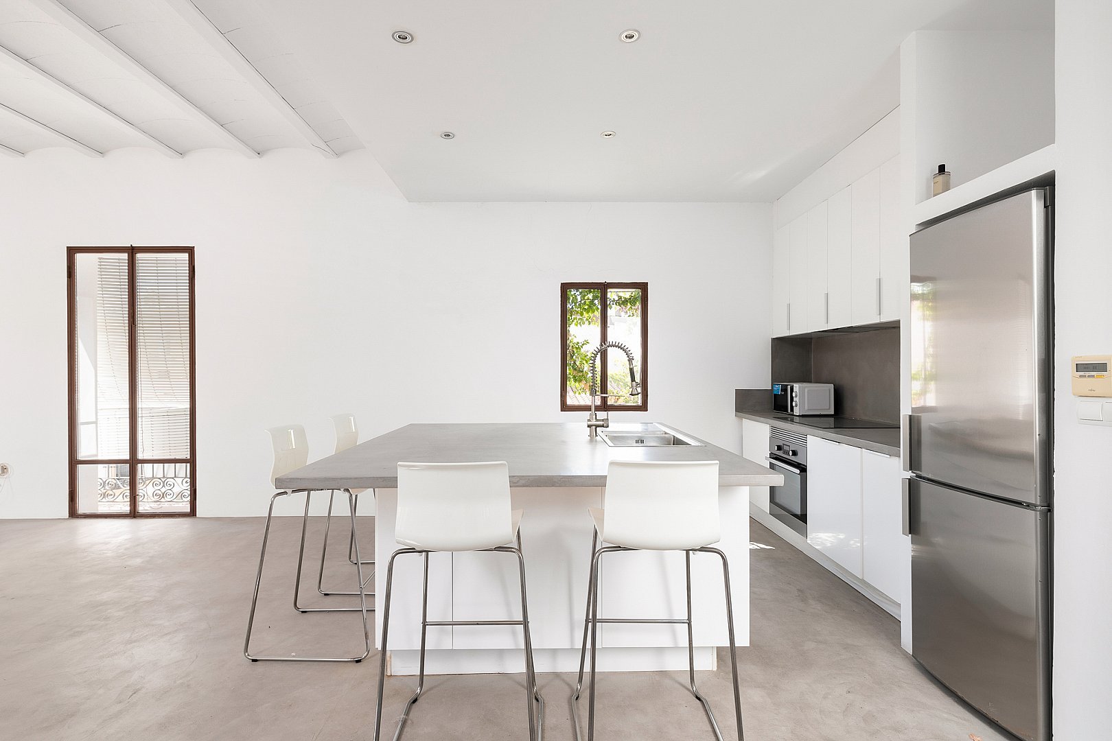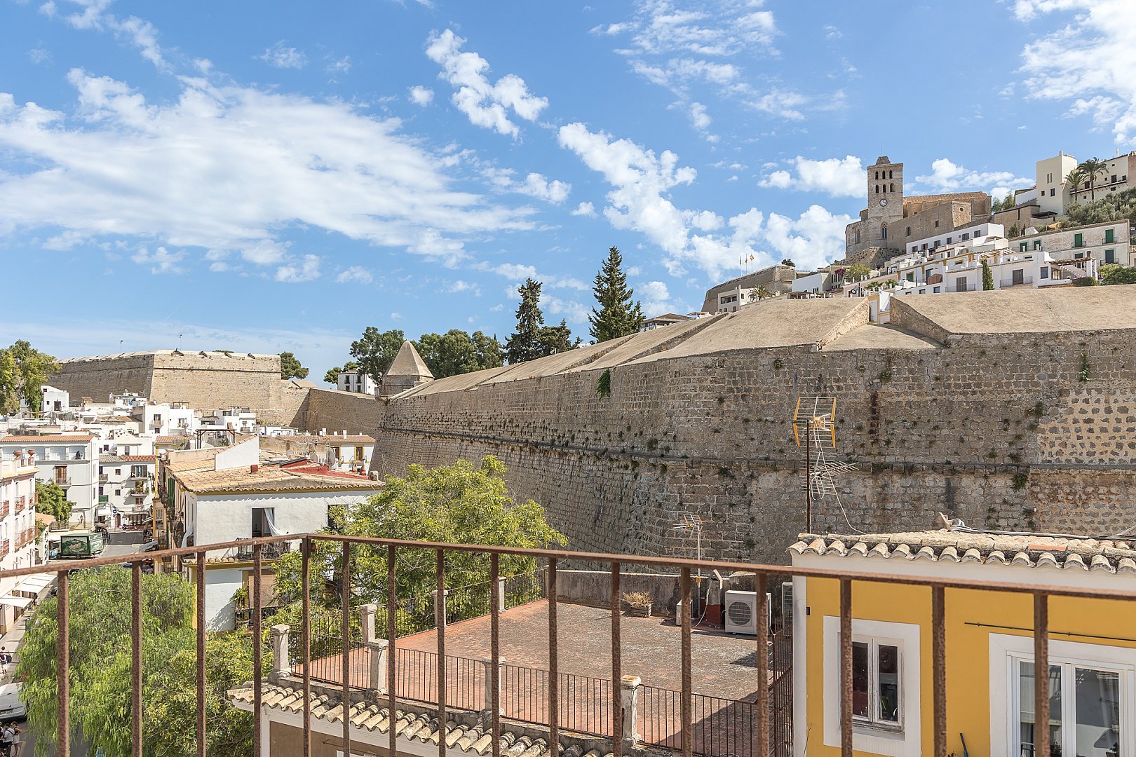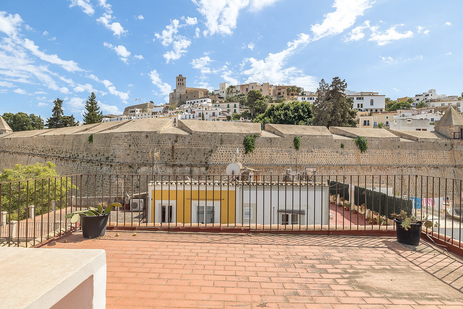 This apartment is ideally situated in a central and highly sought-after area of Ibiza Town. Recently renovated, it features a minimalist interior with microcement flooring, high ceilings throughout, and neutral finishes offering a versatile and low-maintenance living space. The property includes two generously sized bedrooms, each with access to a balcony overlooking one of the area’s most vibrant streets. A third bedroom is set on a mezzanine level. Two modern bathrooms complete the layout, both designed with clean lines and practical fittings. The open-plan living area includes a fully equipped kitchen with a central island, and benefits from abundant natural light throughout the day via multiple balconies and windows. One of the main highlights of the property is the private rooftop terrace: an ideal outdoor area to relax and enjoy the lively atmosphere of Ibiza Town, with open views of Dalt Vila and the surrounding neighborhood.
