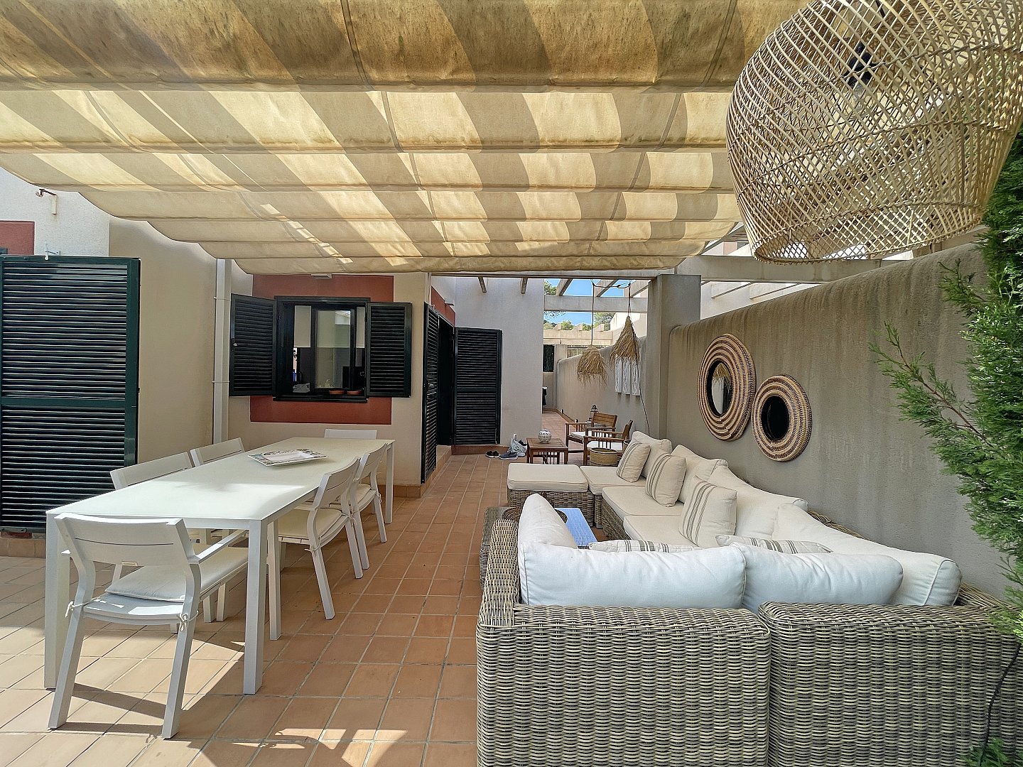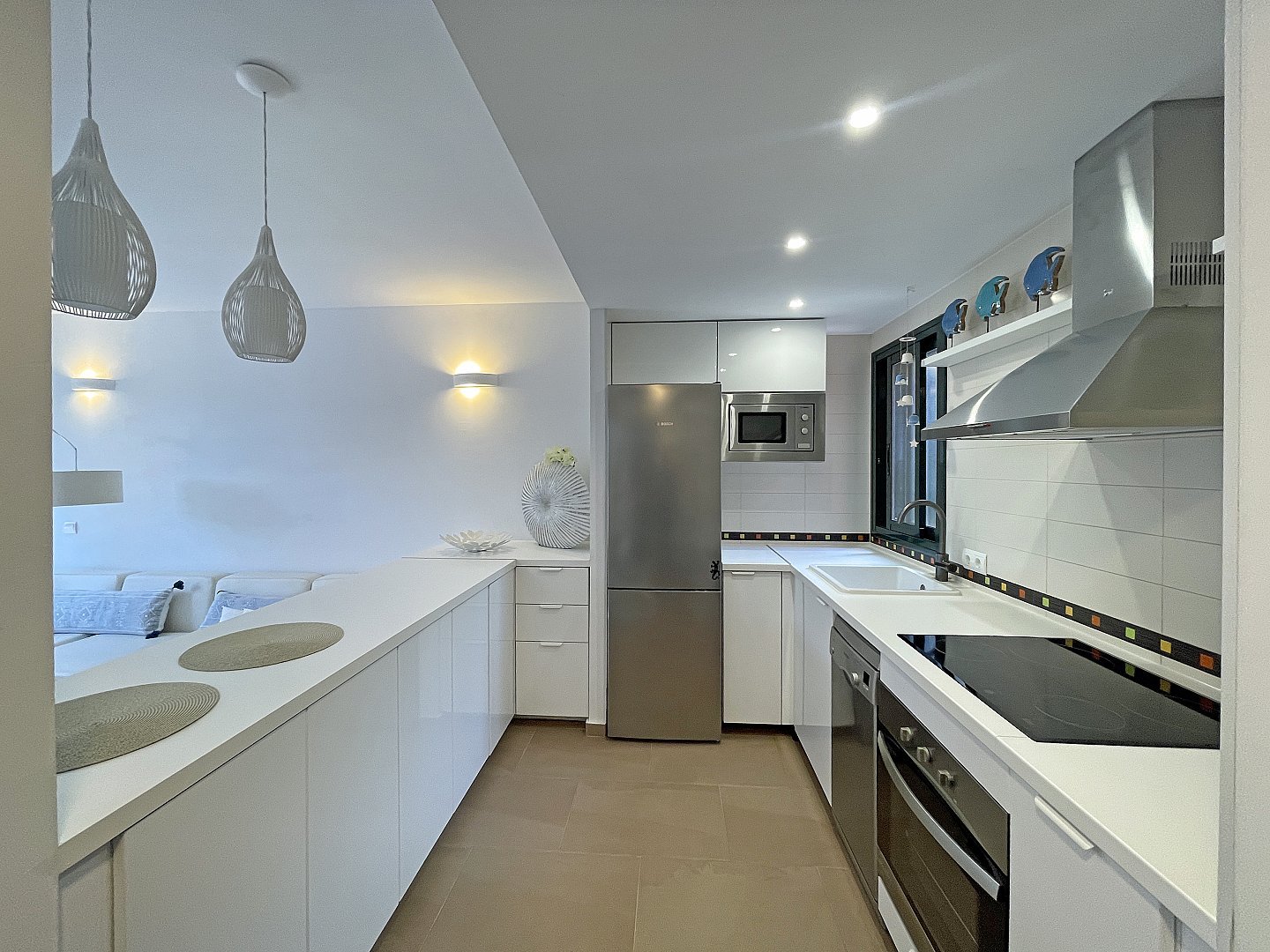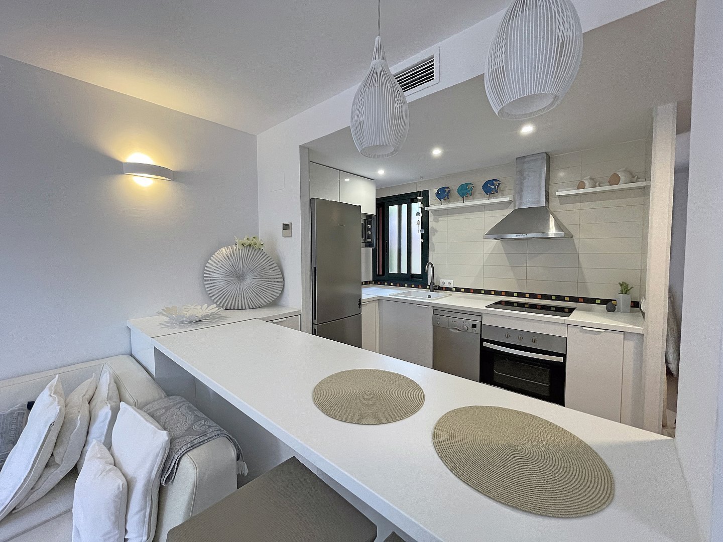 *ANNUAL RENT* This lovely, recently built house, only a few meters from the beach of Cala Tarida, extends over two floors. In the first floor we find a fully equipped kitchen, a living/dining room with access to the private garden, a pantry, a bedroom and a bathroom. The second floor boasts two bedrooms and a bathroom. From the terrace of this floor you can reach the roof terrace, from where you can enjoy magnificent views of the sea and the sunset. The house is located in a residential complex with communal gardens and pool. Each house comes with a private parking spot.