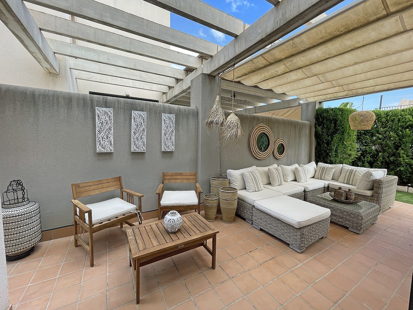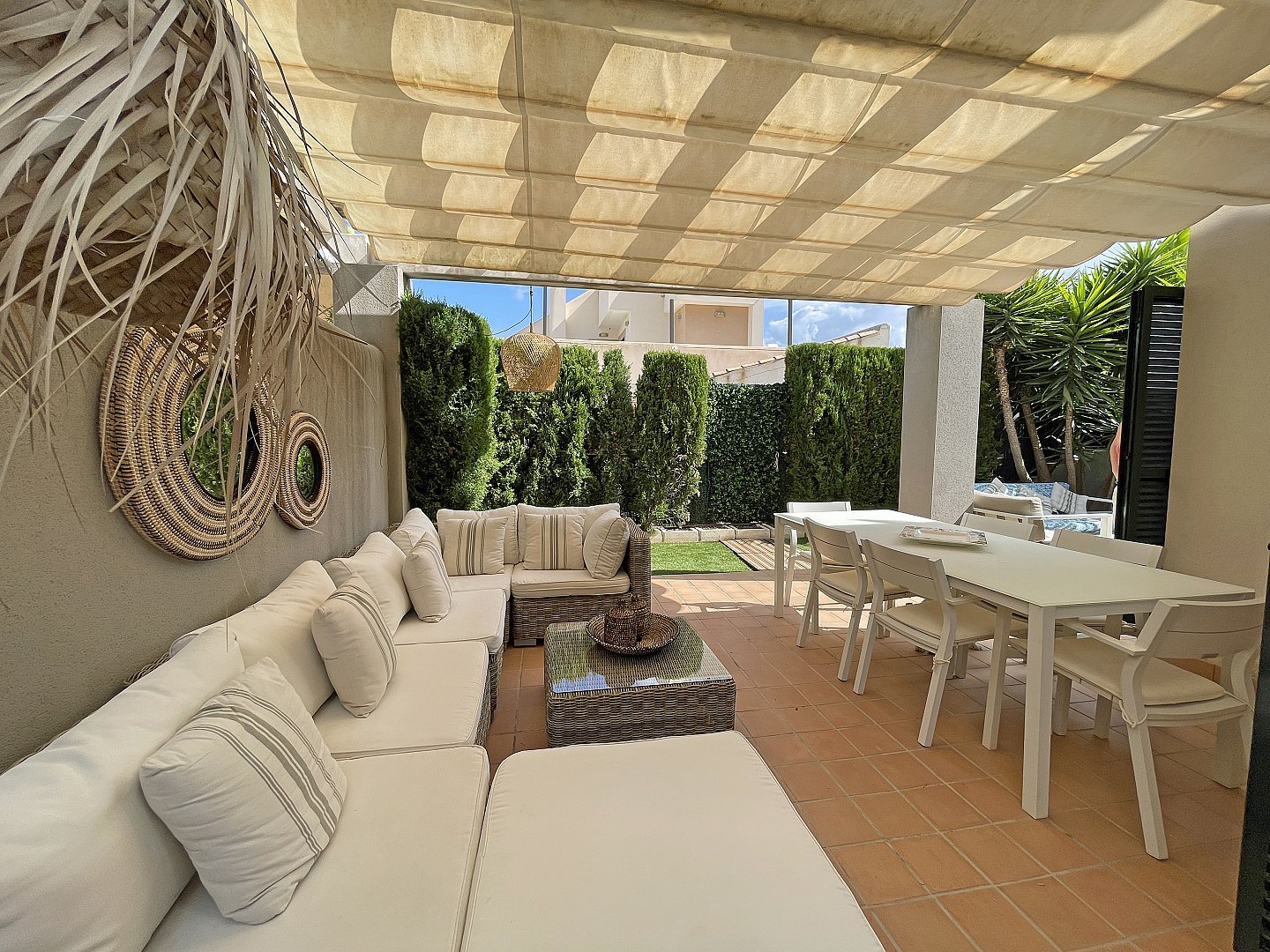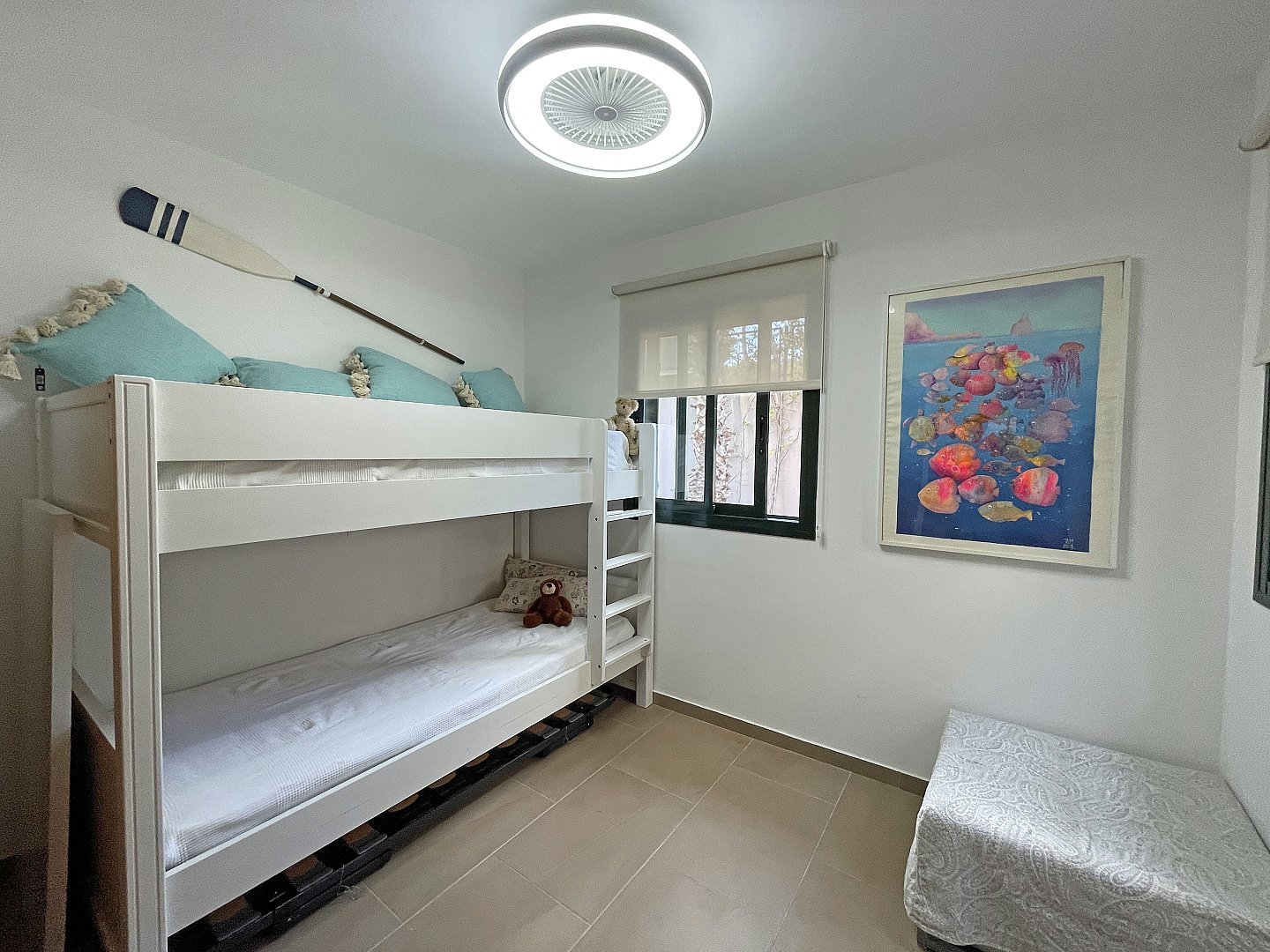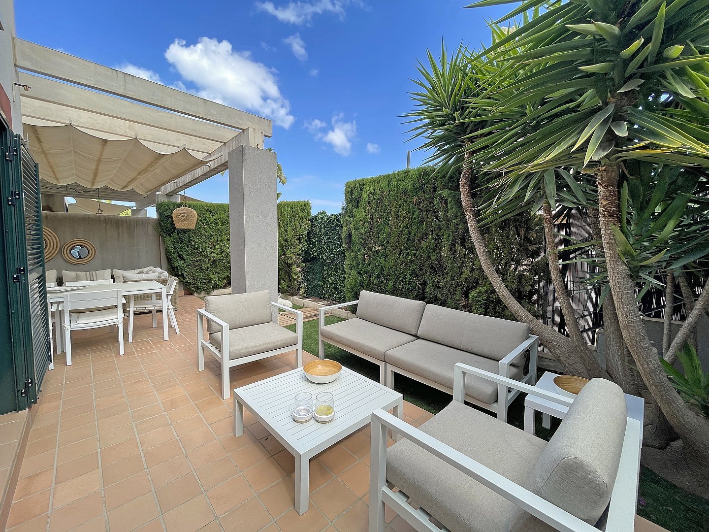 *ANNUAL RENT* This lovely, recently built house, only a few meters from the beach of Cala Tarida, extends over two floors. In the first floor we find a fully equipped kitchen, a living/dining room with access to the private garden, a pantry, a bedroom and a bathroom. The second floor boasts two bedrooms and a bathroom. From the terrace of this floor you can reach the roof terrace, from where you can enjoy magnificent views of the sea and the sunset. The house is located in a residential complex with communal gardens and pool. Each house comes with a private parking spot.