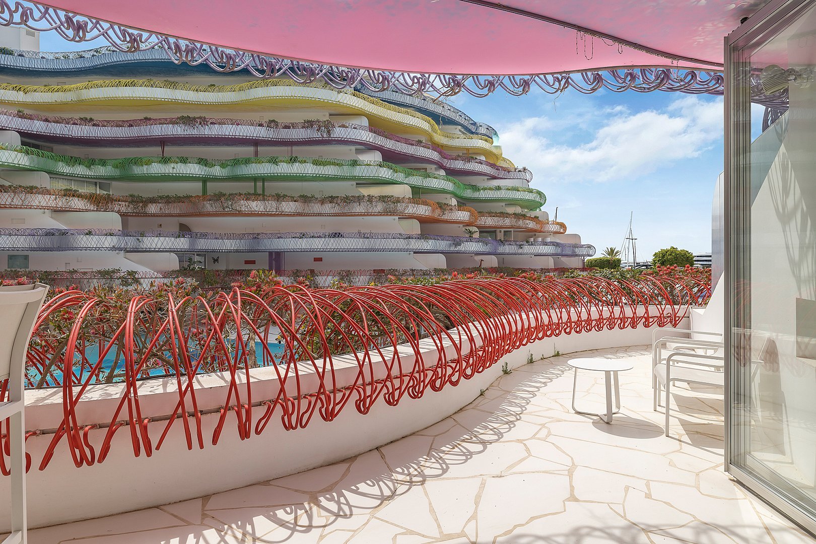 This stylish and modern apartment is located on the first floor of the emblematic Life Marina building, part of the exclusive Las Boas Ibiza complex designed by renowned architect Jean Nouvel. The building’s unique design and flowing lines create a striking, yet harmonious atmosphere. The apartment offers a bright and spacious living room with an open-plan kitchen, opening onto a generous terrace — ideal for relaxing or entertaining. It features two comfortable bedrooms and two bathrooms, one of them en suite. The property is perfect for both holiday use and extended stays, offering a balanced mix of comfort, design, and practicality. Residents enjoy access to premium amenities including a communal pool, gym, sauna, steam room, 24-hour security, and private parking.