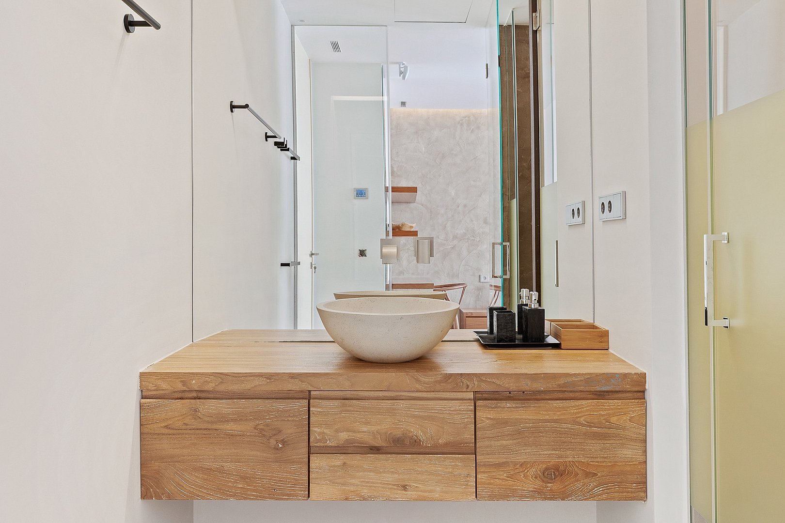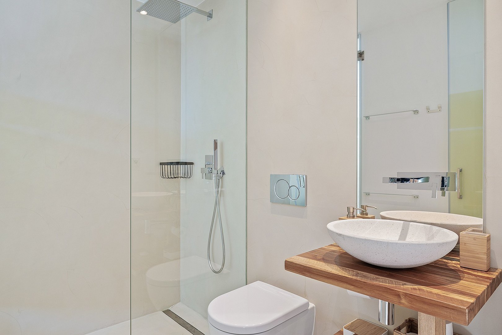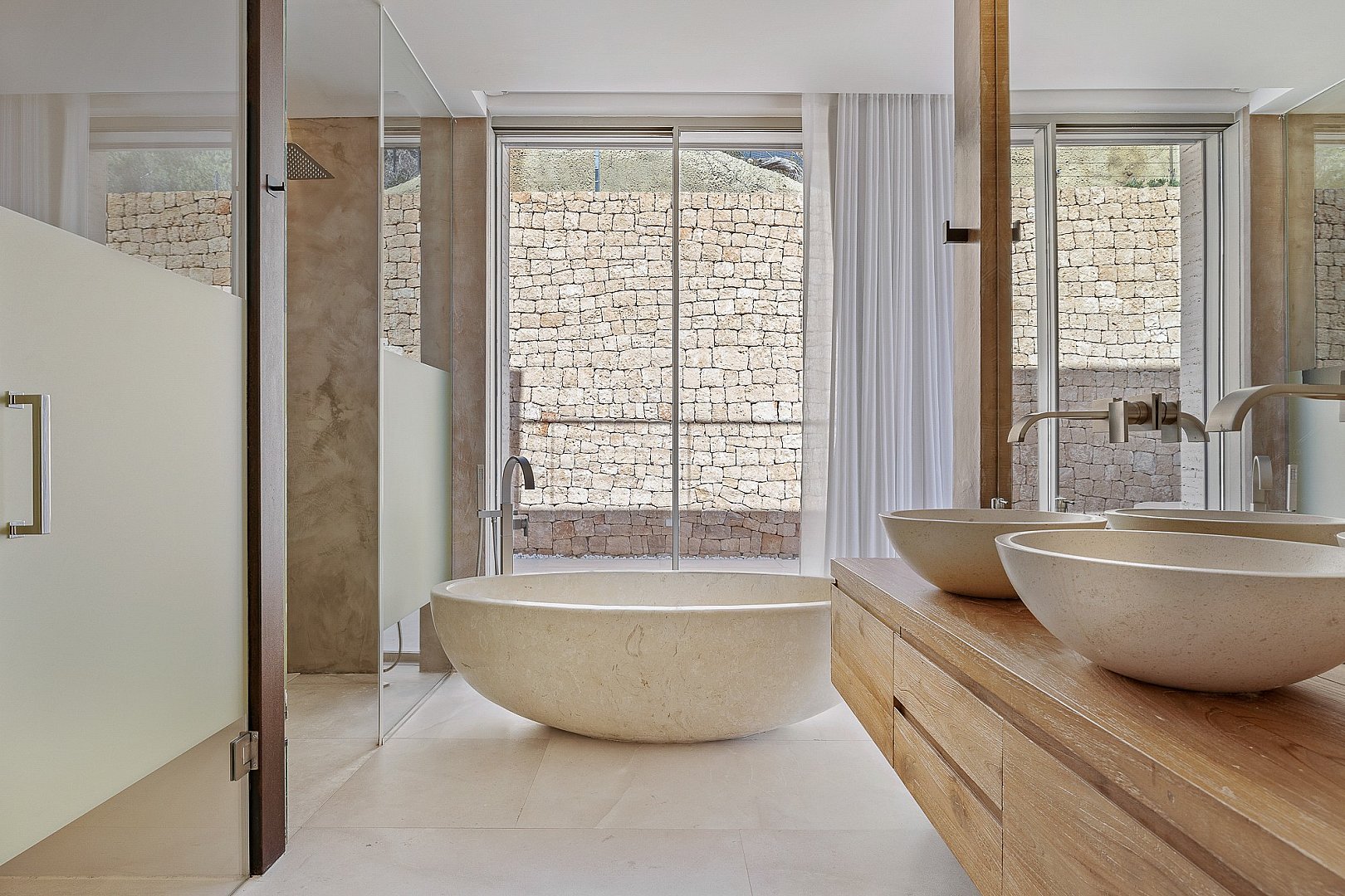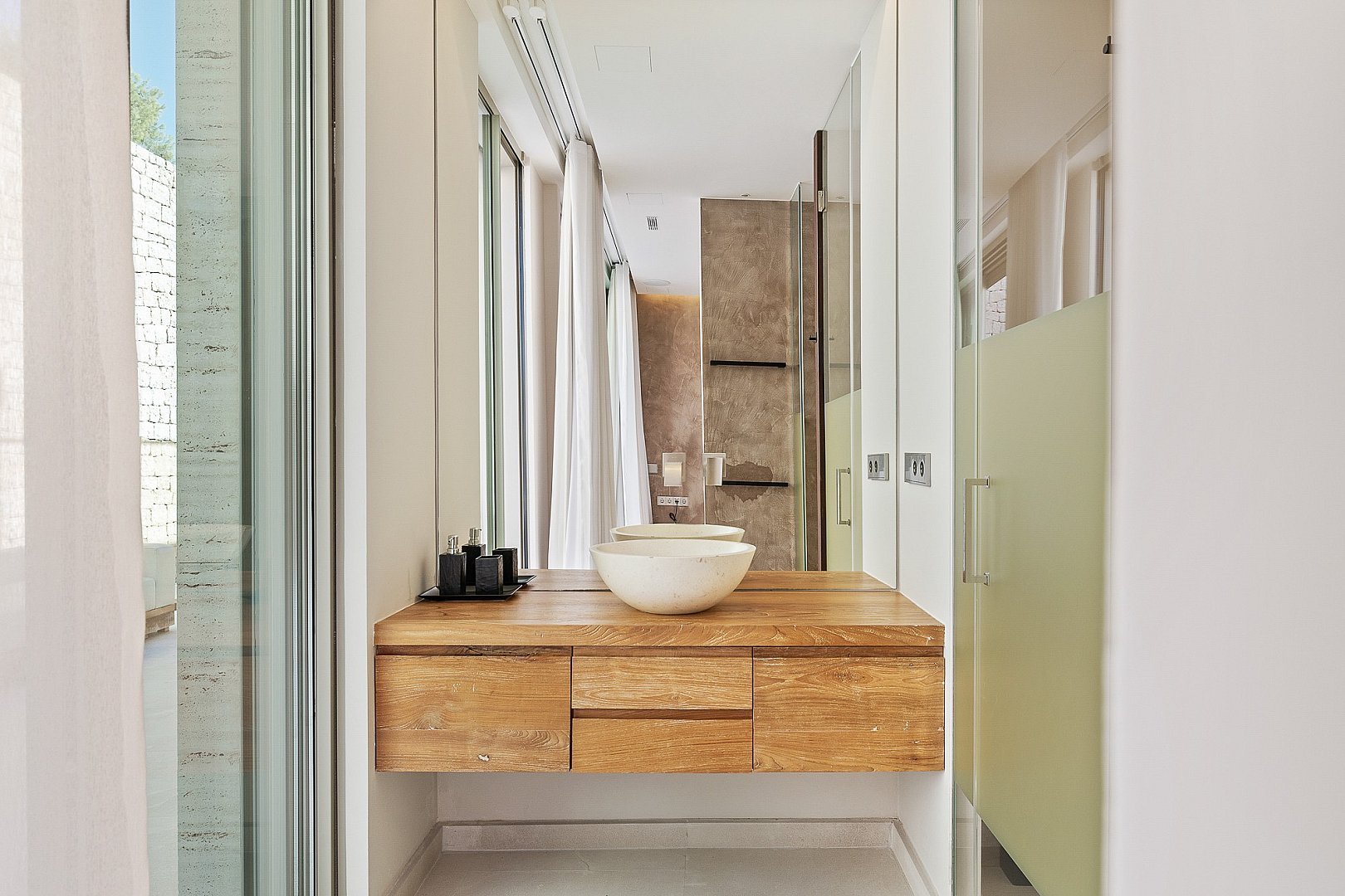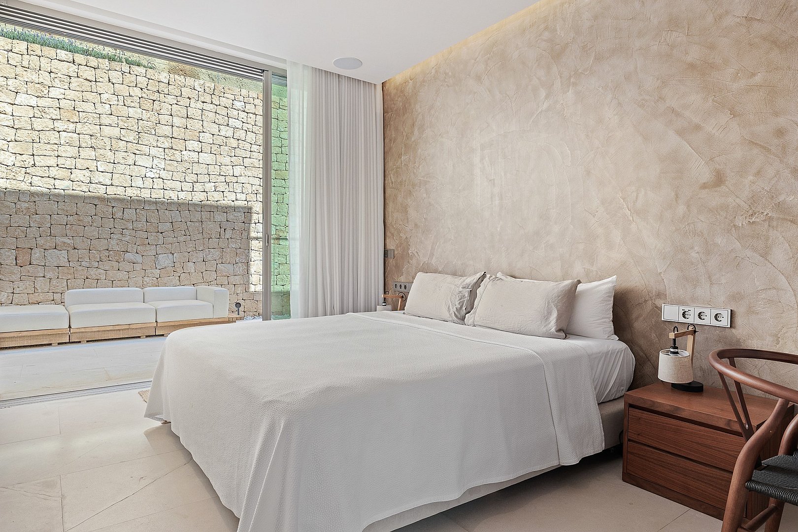 Type: House • Region: Ibiza Town and Surroundings • Total Surface: 460 m2 • Terraces: 1 • Total rooms: 7 • Bedrooms: 6 • Bathrooms: 6 • Plot size: 2.220 m2 • Guest Apartment • Fireplace • Elevator • Swimmingpool • Guest Toilet • Heating: Underfloor heating • Floor type: Stone •