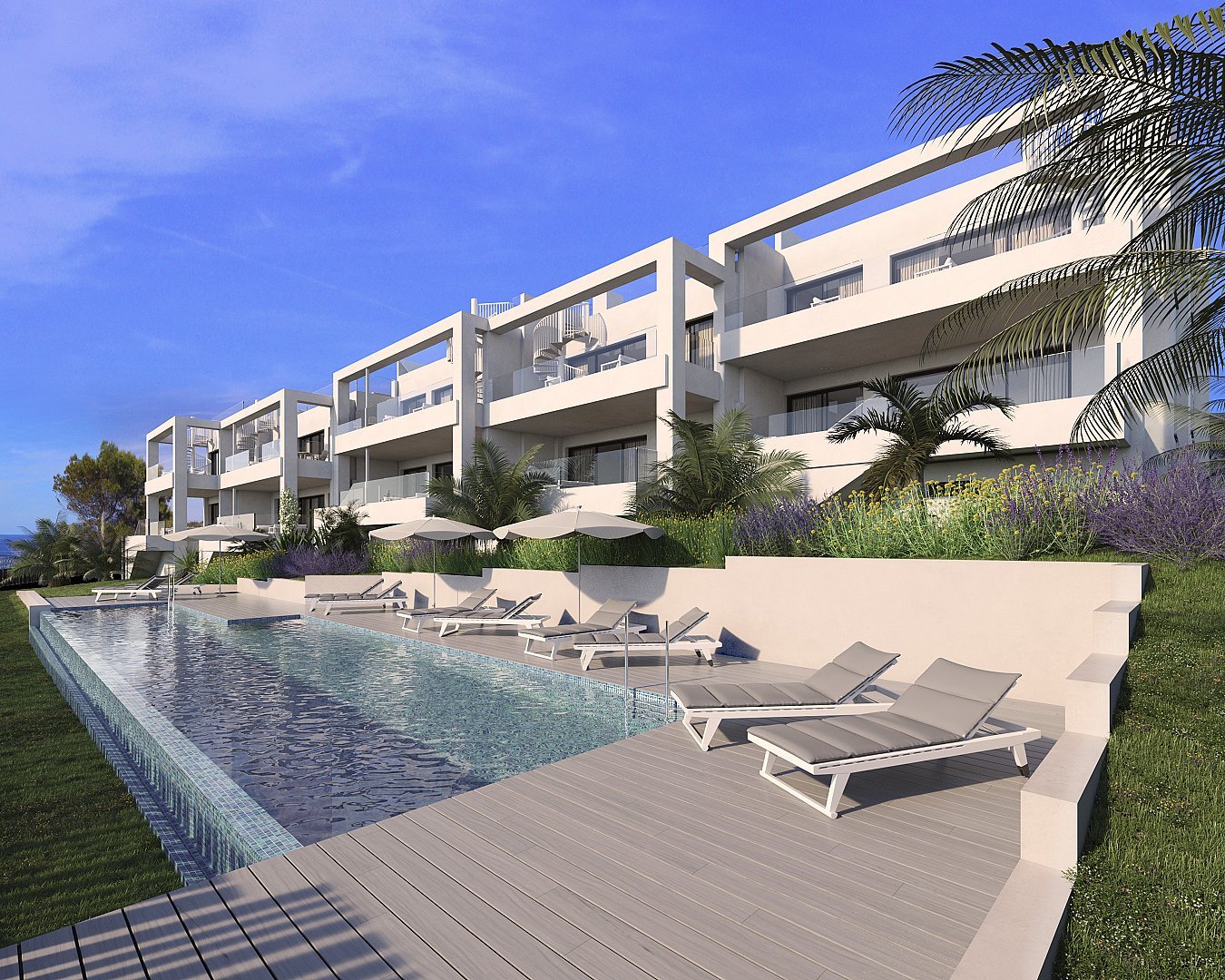10 modern apartments are being built in this new development. The ground floor apartments have terraces with direct access to the large communal swimming pool. The upper floor apartments have a large roof terrace with spectacular sea views in addition to the terrace in front of the living room. Each apartment has a parking space and a storage room in the building's underground garage.