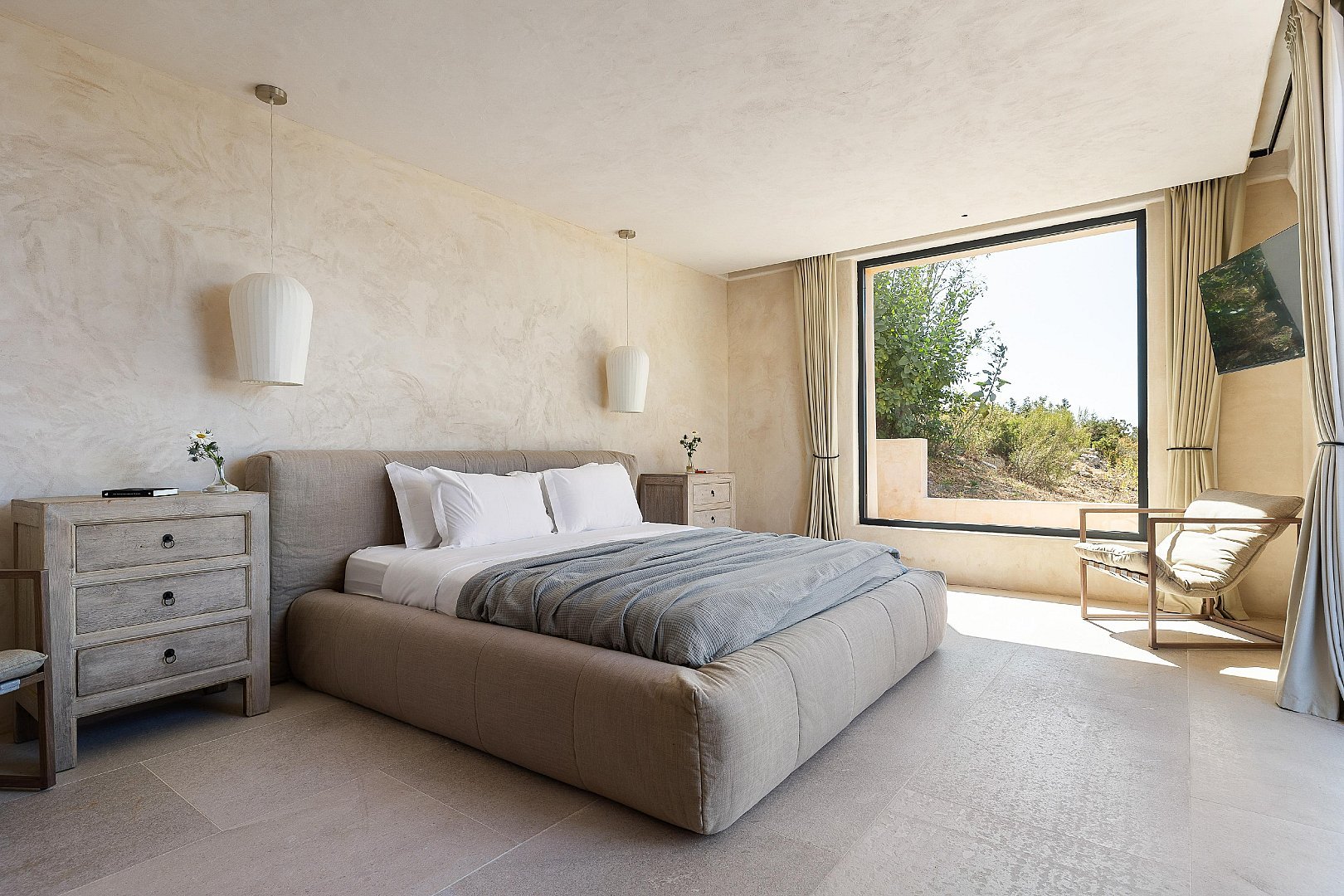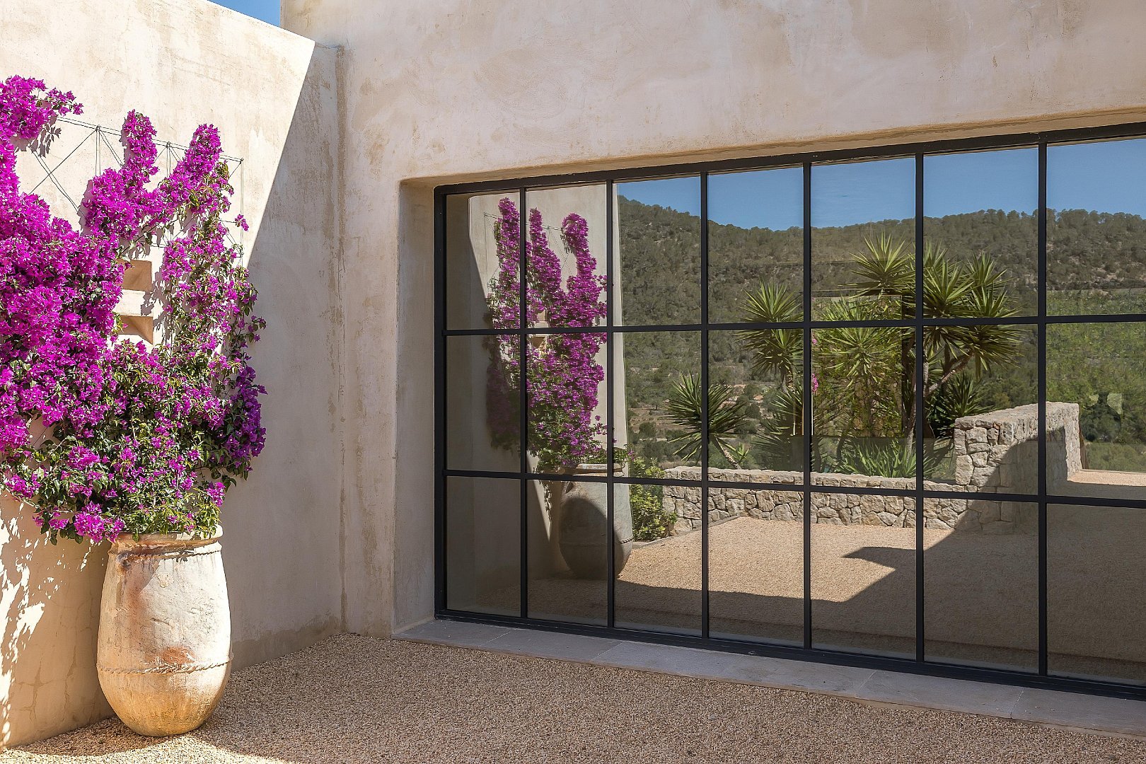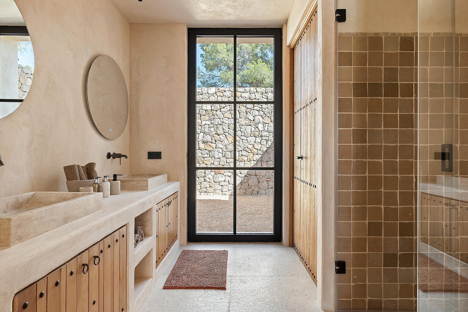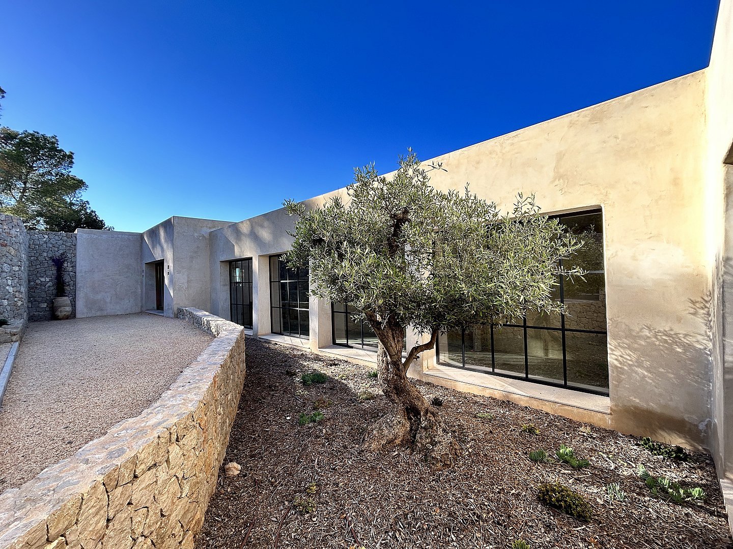 This exclusive property impresses with its unique location, its Mediterranean yet modern style, and its spaciousness, coupled with absolute privacy. The magnificent property, which extends over one floor, is situated on a large plot in one of the areas of Ibiza where you can see the sunset in the sea almost all year round. Through the large entrance you enter the house and a spacious living room with large fireplace, a spacious dining room with a semi-open kitchen with panoramic views of the sea and nature. A large pool framed by a terrace makes this place spectacular. The main living area is complemented by a large master bedroom with en suite bathroom and a dressing room. In addition, there are four further bedrooms, all with en suite bathrooms and stunning views. A further en suite bedroom, ideal for guests, is accessed from the garden. The spacious plot still offers many development possibilities. A large outdoor area invites you to enjoy this magical place on summer evenings. The basement can be developed according to the individual wishes of the new owner. It offers enough space for a gym, spa and or cinema room.