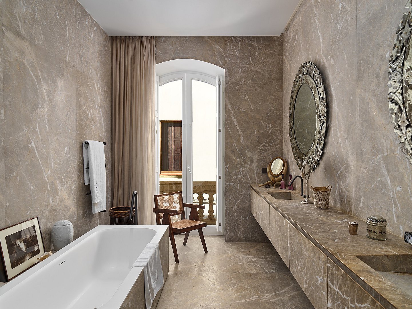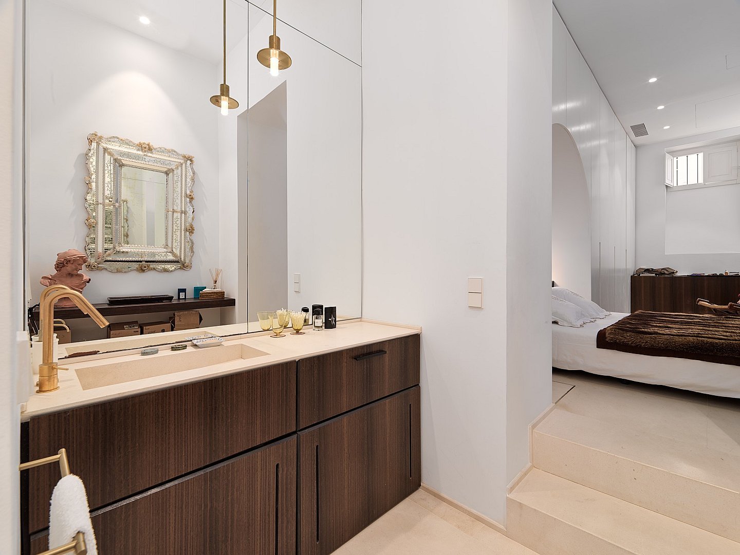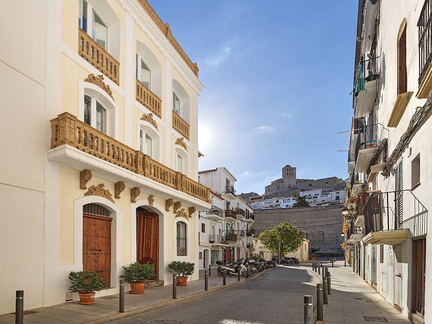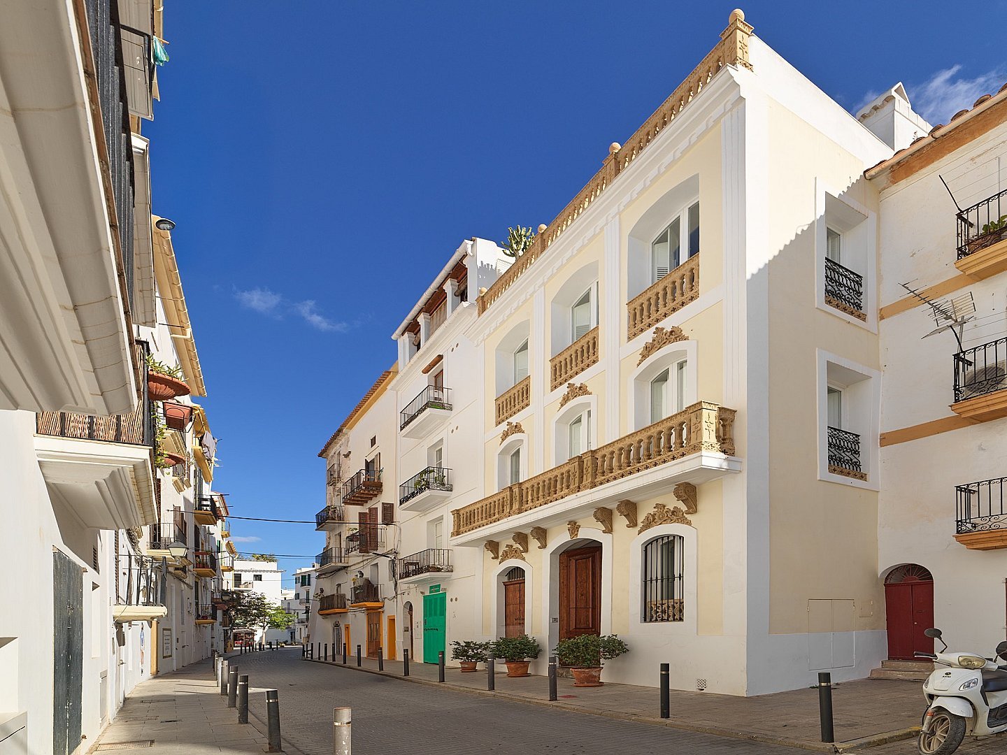 Step into the captivating world of Palacio Orfeo, a unique property in the heart of Ibiza's historic port. This imposing building, constructed at the end of the 19th century, has been meticulously restored by its current owner in collaboration with the renowned architect Pascal Djavadi. Originally built in 1896 by Ripoli Gómez, a celebrated architect also responsible for other iconic projects on the island from that era, this architectural gem underwent a three-year rehabilitation starting in 2017. During this time, a perfect fusion of local history and modern luxury was achieved, incorporating all the amenities expected of a property of this caliber. Every corner of this magnificent property reflects a balance of timeless elegance and sophistication, from the imposing entrance to the spectacular rooftop terrace offering privileged views of Ibiza's World Heritage site, the Dalt Vila Cathedral. The interior of Orfeo Palace mirrors the grandeur of its architectural design, blending historical spaces with luxurious contemporary details. The layout of Orfeo Palace reflects its majestic architectural splendor. Upon entering the house, you are greeted by a historical entrance hall that rises to a height of 4.8 meters, its materials as noble as the palace itself. To the left is the laundry room, fully equipped and impeccably designed. The hallway leads to an elegant entrance hall, from which a staircase and an elevator lead to the upper floor. Just before the staircase to the upper floor is the first bedroom with its own bathroom. On the first floor, accessible by stairs or elevator, there is an impressive library with an office. This room's character reflects the elegance that characterizes the palace. On this level, there is also a bathroom near the library and the master suite, a private sanctuary including both the bedroom and a luxurious bathroom where the highest quality marble takes center stage. The first floor, arranged as a duplex, is characterized by its spacious and bright living areas, perfectly integrated. A stunning modern kitchen, fully equipped and able to be harmoniously concealed, is located on this level, adding a touch of sophistication. A staircase leads to the last bedroom, located on the same level as the upper terrace, from where you can enjoy privileged views of the Dalt Vila Cathedral.