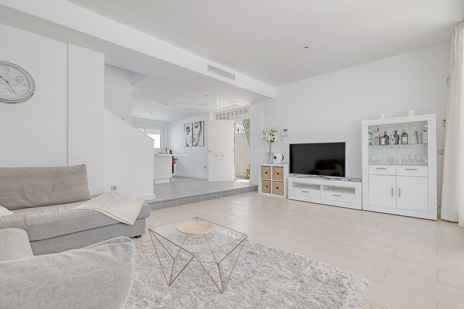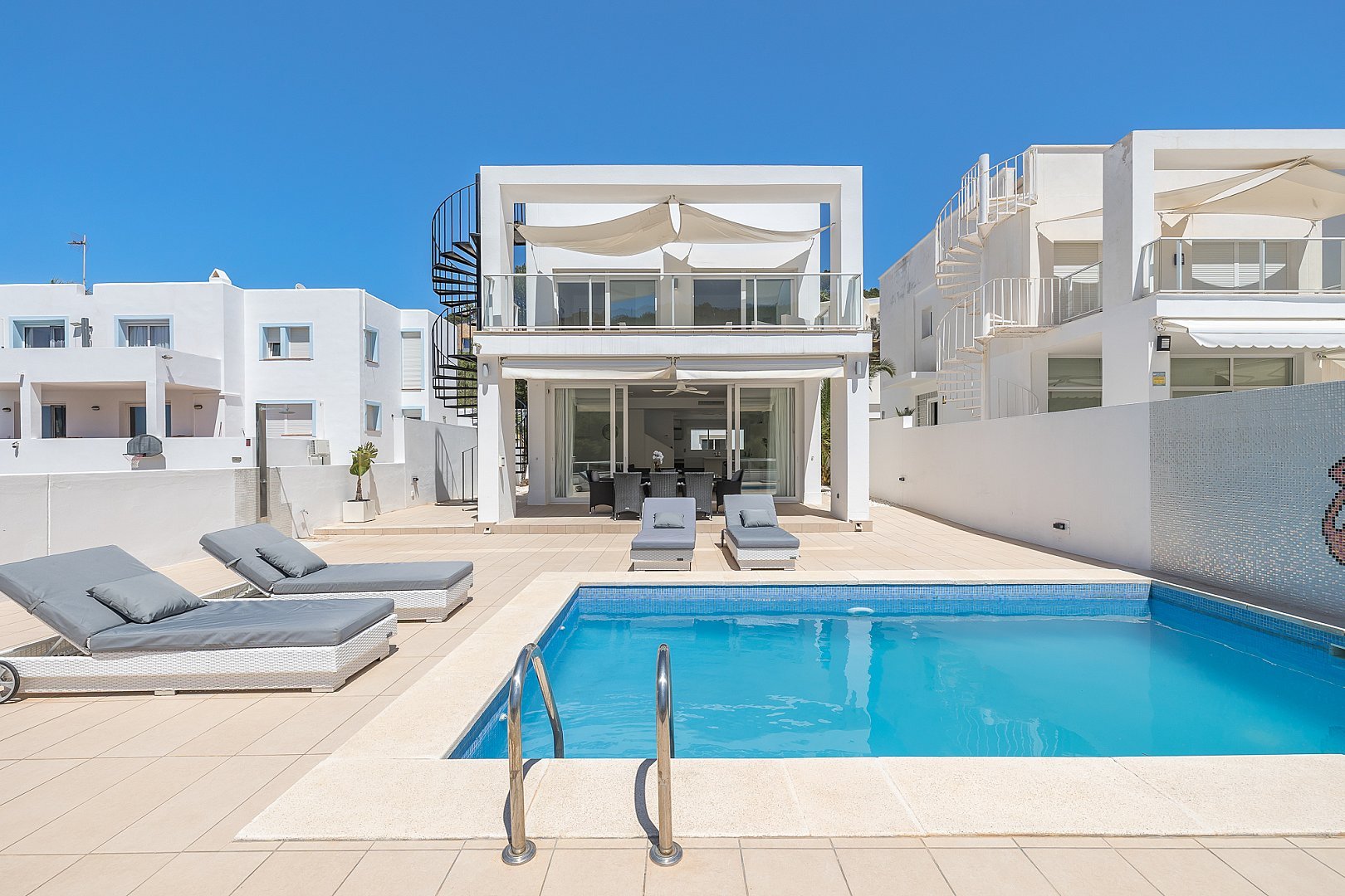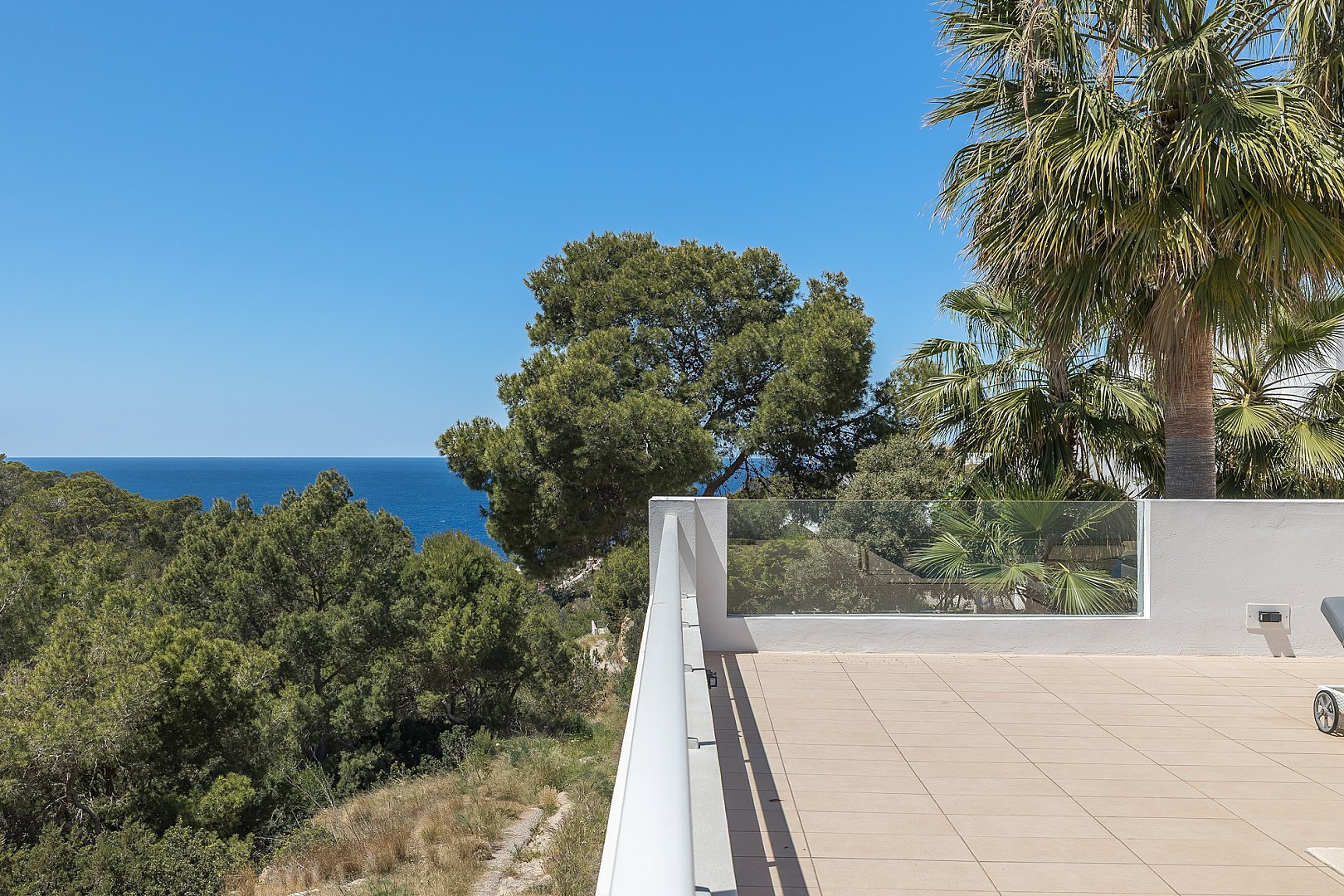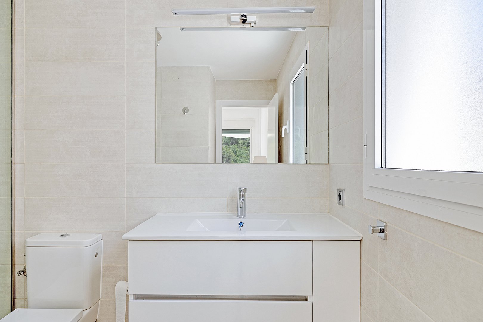 This recently renovated two-storey detached villa is quietly nestled near the beautiful Cala Vadella, offering peace, privacy, and convenience. Designed with space and light, the home features a generous living-dining area and a fully equipped kitchen on the ground floor, flowing out to a sun-soaked terrace and a private pool—perfect for relaxing or entertaining. From the terrace you have a wonderful unobstructed views to the green and as well to the sea. A few months in summer you can see the sunset in the sea. Upstairs, you’ll find three spacious bedrooms, two of which open onto a second terrace boasting stunning views of the lush surrounding landscape and the sea beyond. A separate storage room adds more inside space and two garage spaces are also belonging to the property.