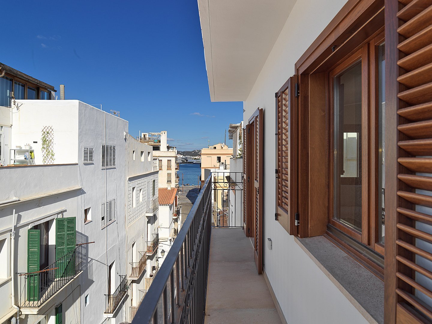 Located in one of the most emblematic and privileged areas of Ibiza Port, this exclusive four-storey building has been completely renovated with high-quality materials and is now being presented in a completely new light. The building has a lift, an exceptional feature that is very rare in the old town area and adds value in terms of both comfort and exclusivity. On the third floor is this elegant flat, designed to offer maximum comfort in a modern and light-filled space. The high-quality finishes add sophistication to each room, while the open-plan main area integrates the living room, dining room and a fully equipped designer kitchen. The flat has two bedrooms with fitted wardrobes and a modern bathroom that has been carefully designed to offer comfort and style. A private balcony allows you to enjoy the fresh air and lively atmosphere of the harbour. Highly efficient windows guarantee excellent thermal and sound insulation, ensuring year-round comfort. This property is ideal both for those who wish to live exclusively in a prestigious location and for investors looking for a premium product with great potential for appreciation in one of the most sought-after areas of Ibiza.
