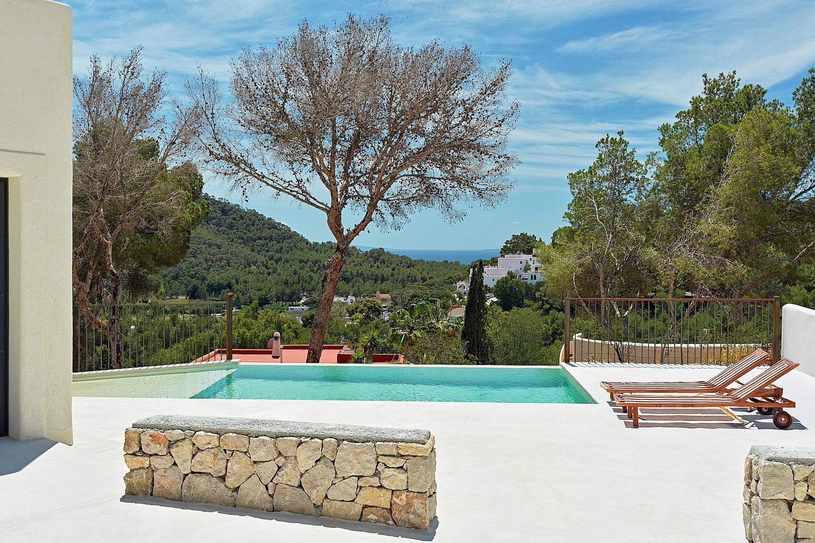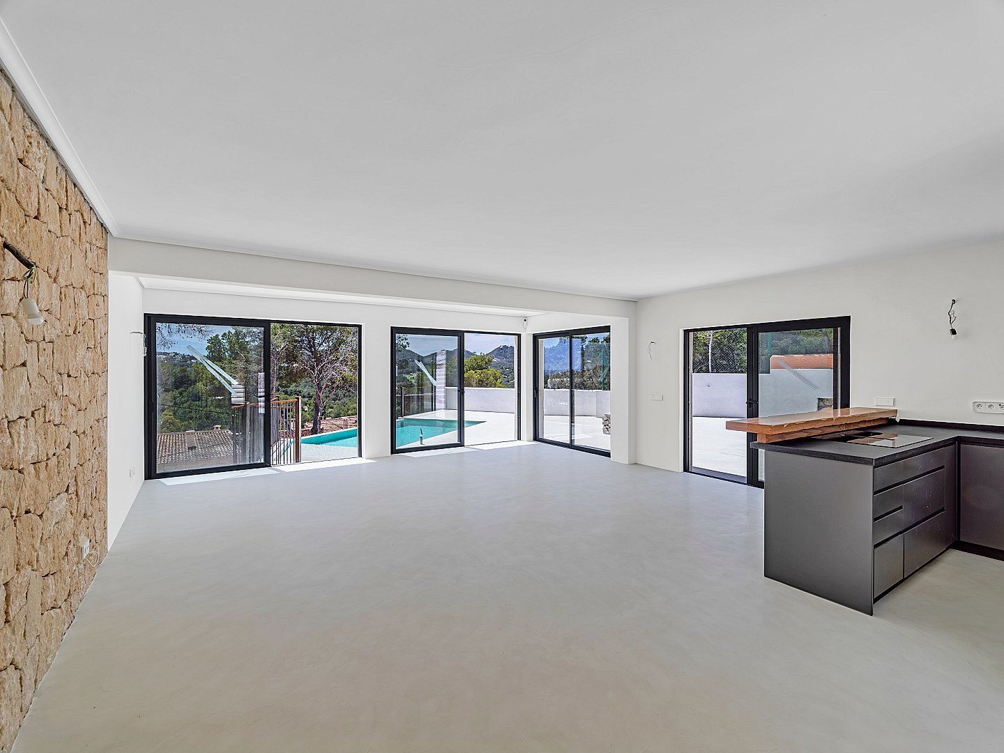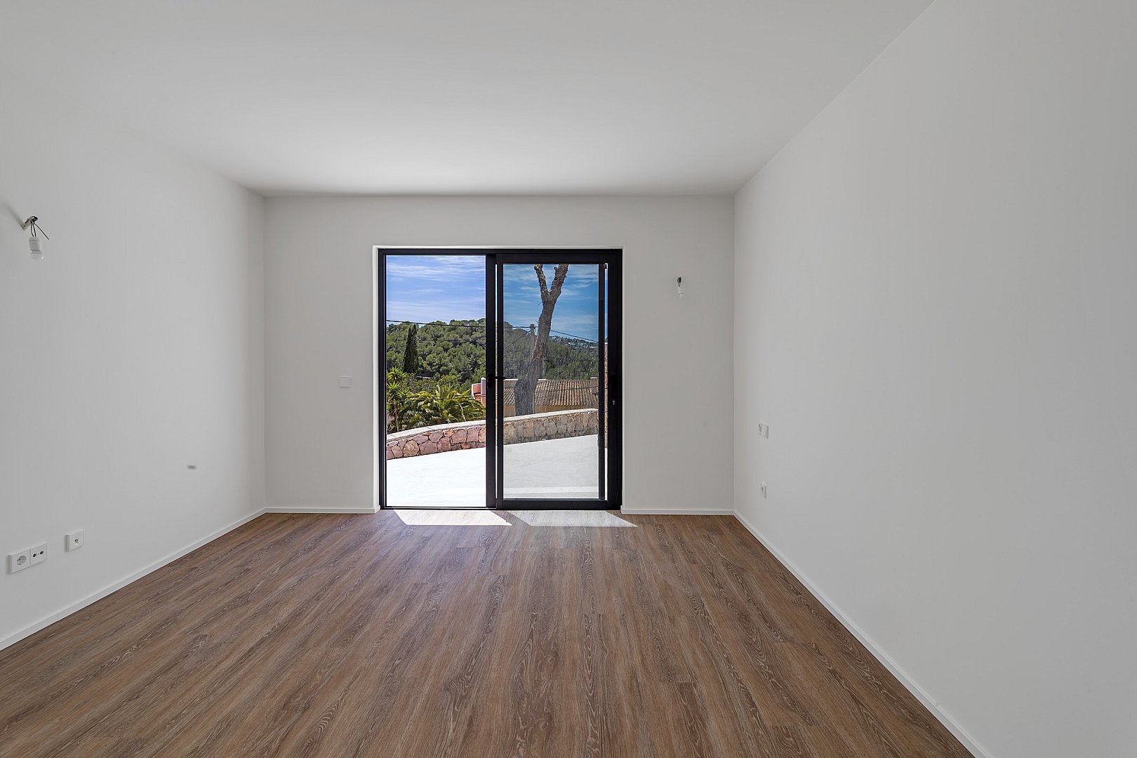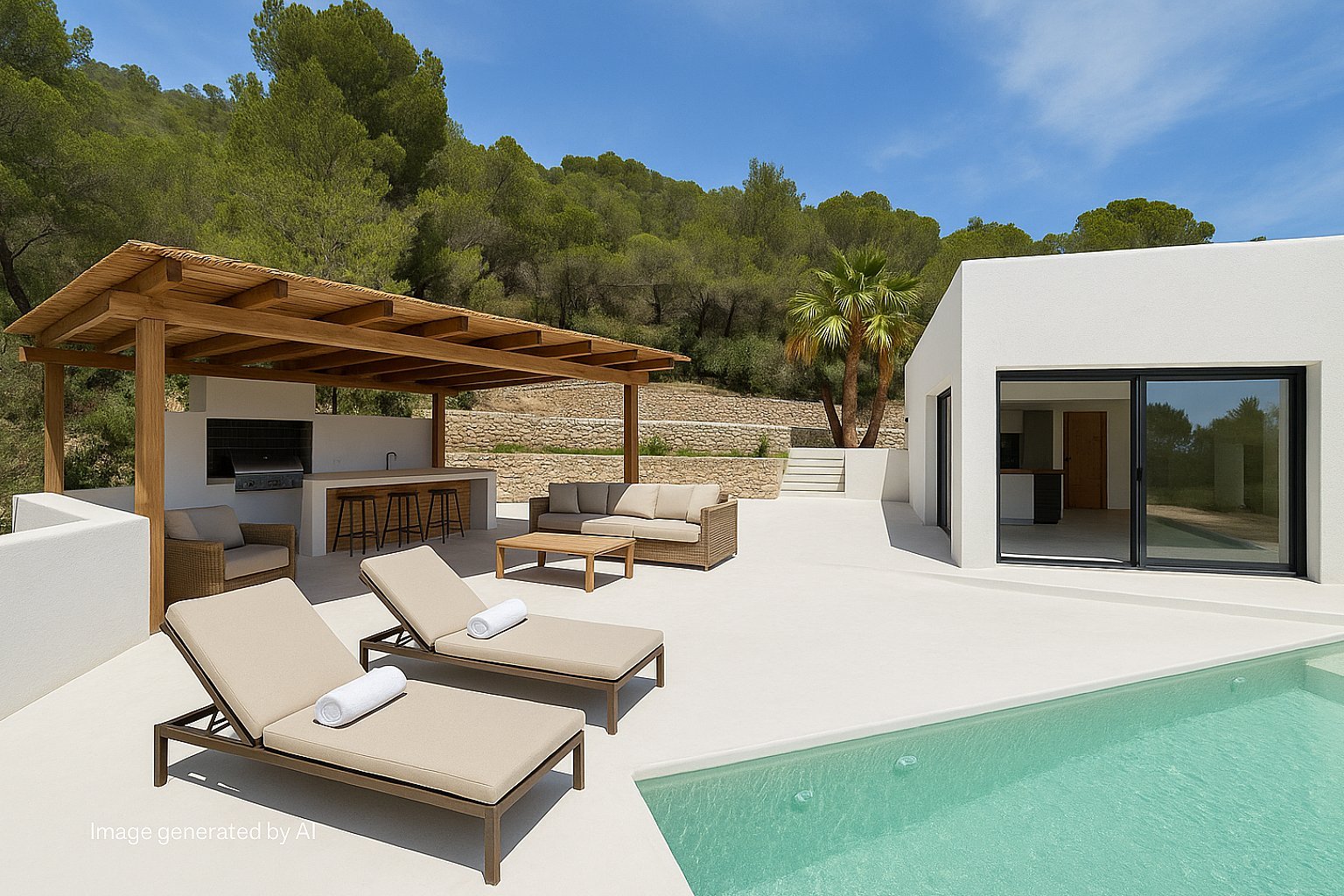 This exclusive villa has been extensively renovated with great attention to detail and high-quality materials, seamlessly combining modern living comfort with the relaxed atmosphere of the island. Situated in an elevated position, just a few minutes from the beach of Cala Llonga and the renowned Ibiza golf course, the property offers peace, privacy, and close proximity to a wide range of restaurants, shops, and leisure activities. Located in one of the most sought-after residential areas on the island, it is ideal for those looking to experience authentic Ibiza in an upscale setting. The property extends over two levels and features three spacious bedrooms, including a master suite with en-suite bathroom and sea views. Three stylish bathrooms – all with underfloor heating – as well as a guest toilet and several versatile living areas complete the layout. The heart of the house is the expansive living and dining room with an open designer kitchen – a light-flooded space that impresses with its clean architecture and seamless transition to the outdoor areas. The well-maintained exterior includes an inviting pool, a spacious terrace, and an outdoor kitchen – perfect for relaxing under the Ibiza sun or enjoying sociable evenings with family and friends. Whether as an elegant main residence, a luxurious holiday retreat, or an investment opportunity – this villa convinces with its location, features, and substance alike. An extension option of an additional 80 m² of living space rounds off this exceptional offer.
