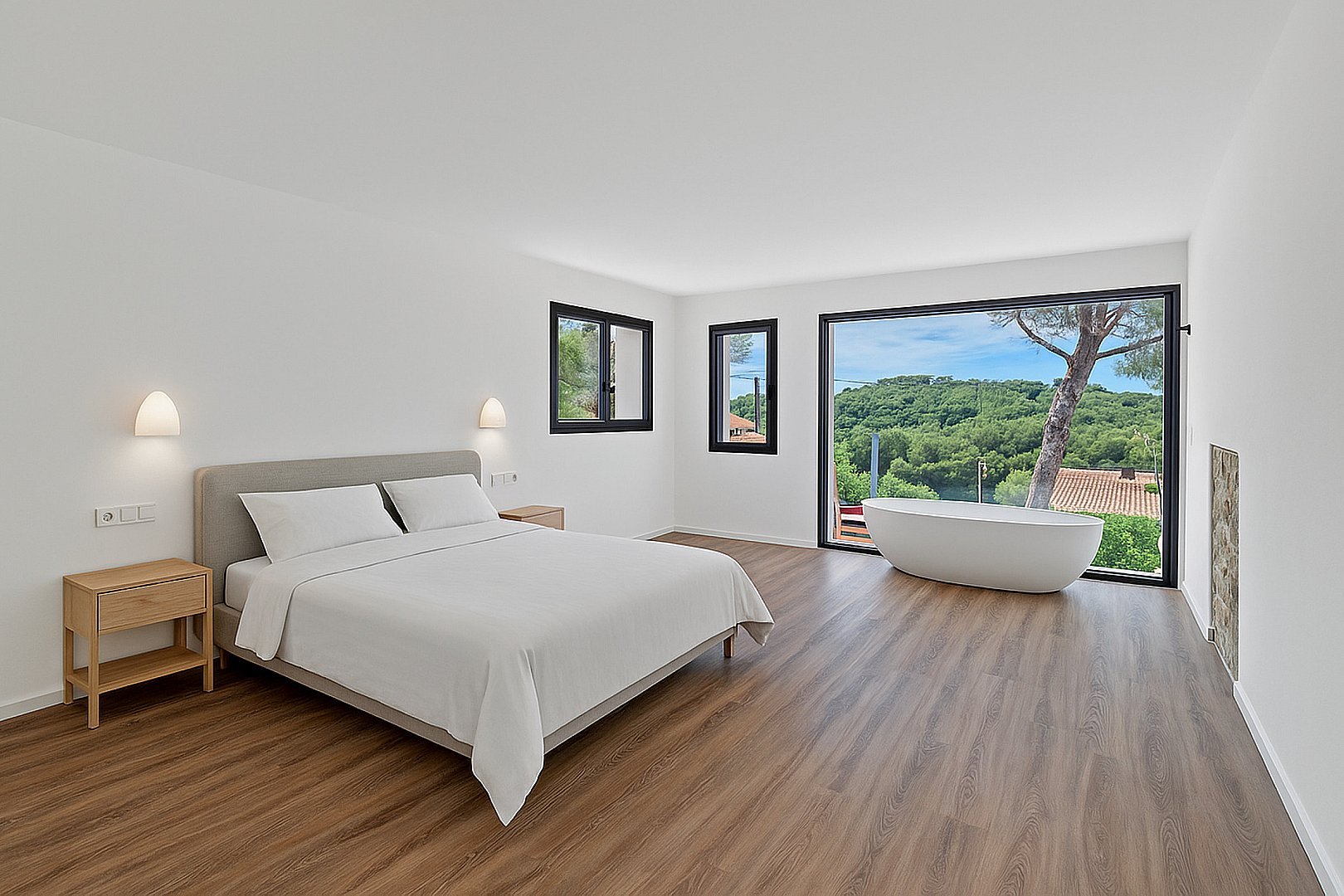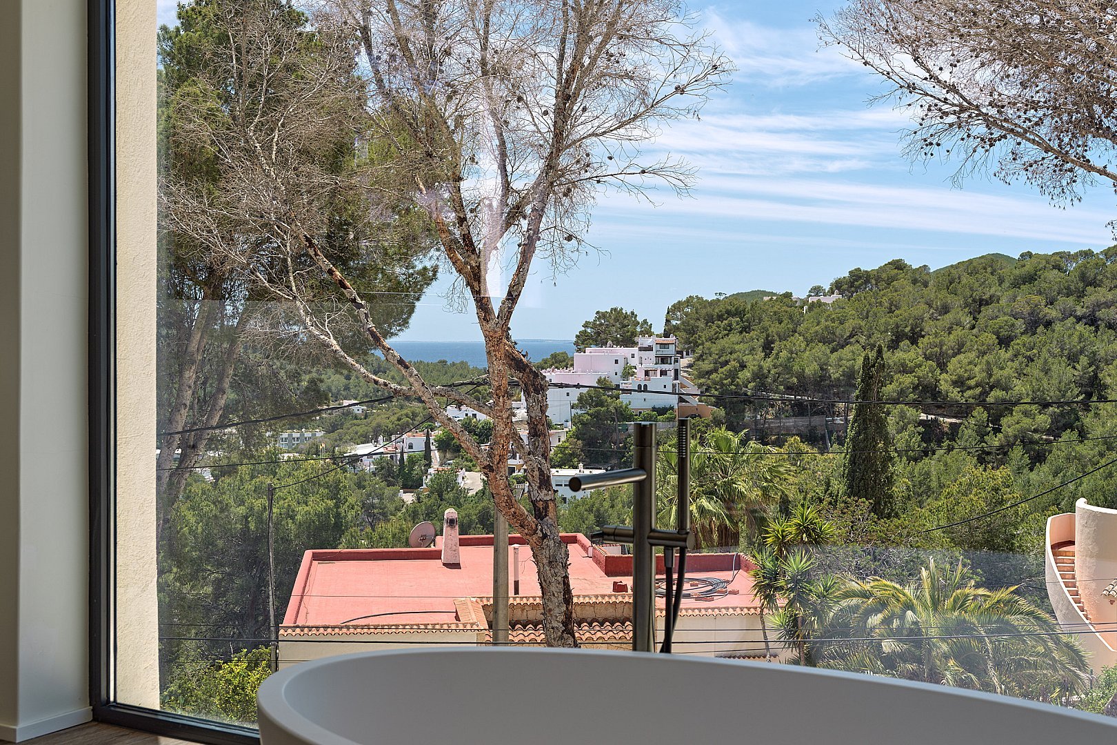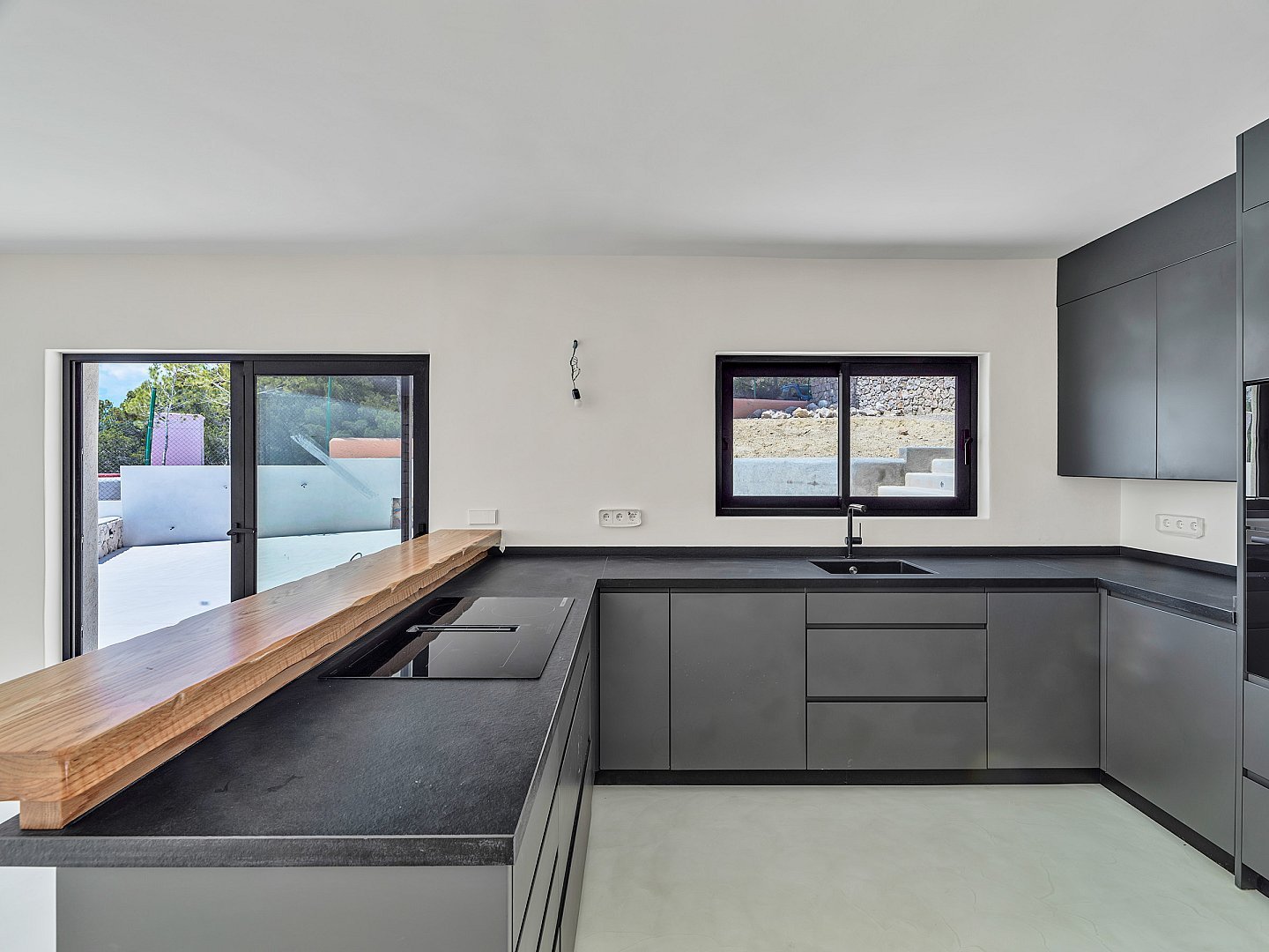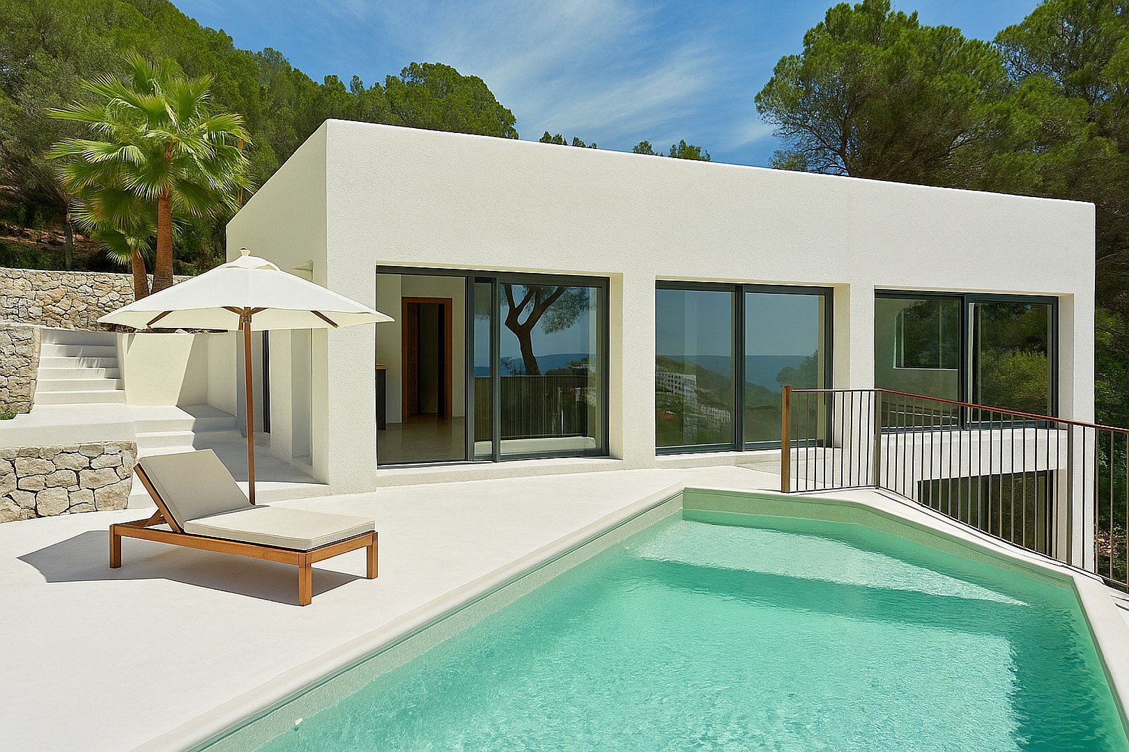 This exclusive villa has been extensively renovated with great attention to detail and high-quality materials, seamlessly combining modern living comfort with the relaxed atmosphere of the island. Situated in an elevated position, just a few minutes from the beach of Cala Llonga and the renowned Ibiza golf course, the property offers peace, privacy, and close proximity to a wide range of restaurants, shops, and leisure activities. Located in one of the most sought-after residential areas on the island, it is ideal for those looking to experience authentic Ibiza in an upscale setting. The property extends over two levels and features three spacious bedrooms, including a master suite with en-suite bathroom and sea views. Three stylish bathrooms – all with underfloor heating – as well as a guest toilet and several versatile living areas complete the layout. The heart of the house is the expansive living and dining room with an open designer kitchen – a light-flooded space that impresses with its clean architecture and seamless transition to the outdoor areas. The well-maintained exterior includes an inviting pool, a spacious terrace, and an outdoor kitchen – perfect for relaxing under the Ibiza sun or enjoying sociable evenings with family and friends. Whether as an elegant main residence, a luxurious holiday retreat, or an investment opportunity – this villa convinces with its location, features, and substance alike. An extension option of an additional 80 m² of living space rounds off this exceptional offer.