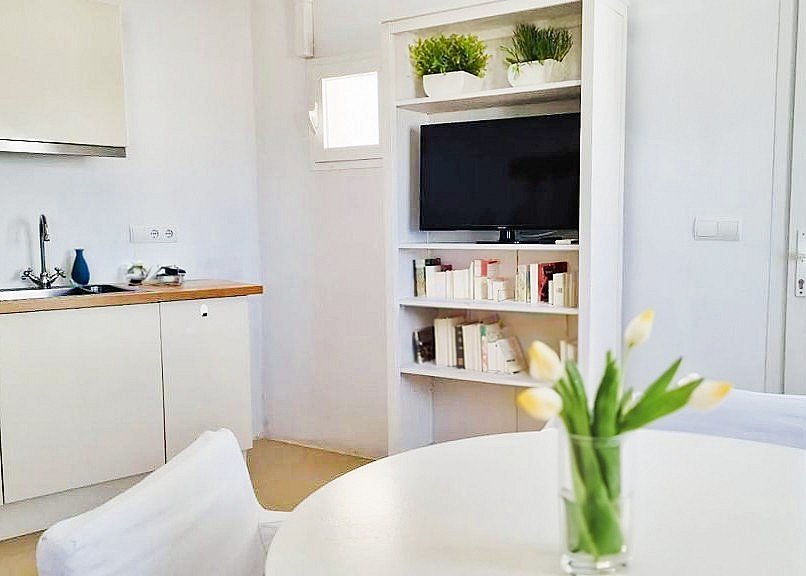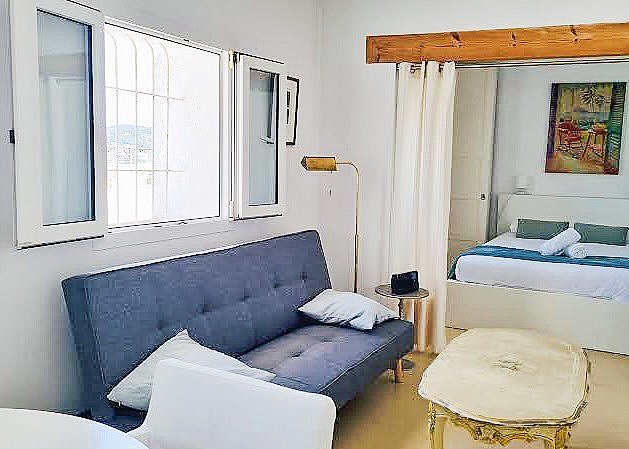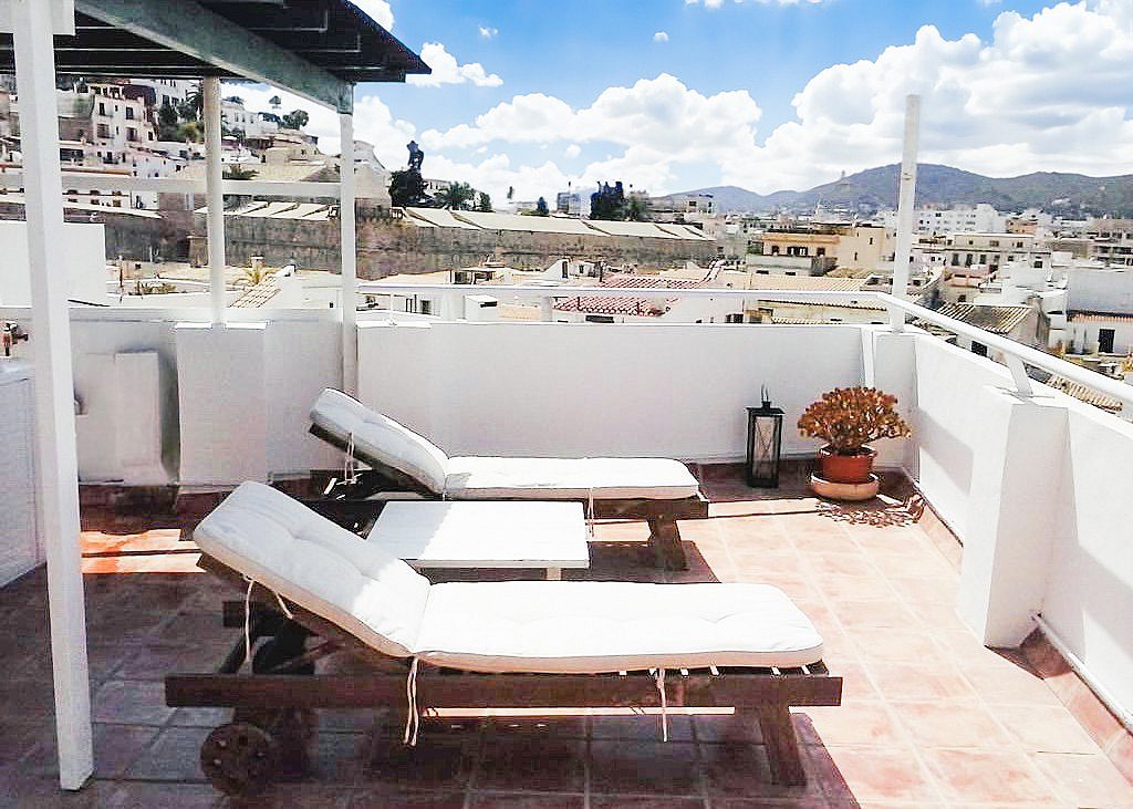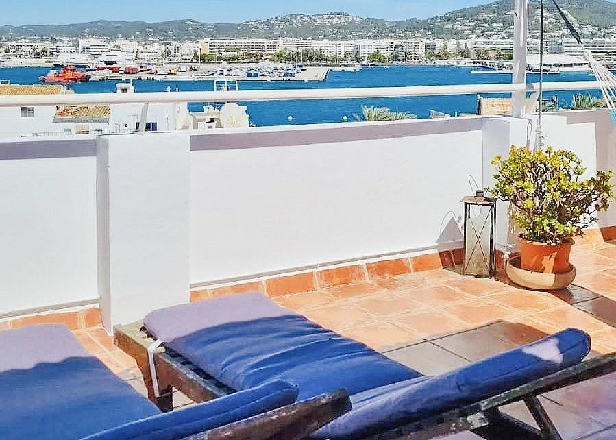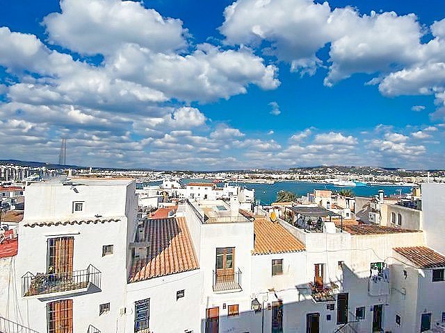 This unique offer in Ibiza consits of three apartments sold together in the heart of the old town, only a couple of minutes walk from the Old Market and the harbour. One of the apartments has independent acces, spacious living area, open plan kitchen, bedroom and bathroom. Totally renovated and ready to move in. The apartment has private acces to a sunny terrace with beautiful views of the old town and the Ibiza port, ideal spot to relax in the evenings. The other two apartments share a private staircase, one of the apartments boasts a double bedroom with balcony overlooking the nice traditional Plaza Drassaneta, bathroom and open kitchen. The upper floor is a spacious bright studio with bathroom and open plan kitchen. The whole property is in very good condition, nicely furnished and decorated flowing with the Ibiza old town style. This is a unique oportunity to acquire a part of the history of the iconic La Marina area as well as a very interesting rental investment.