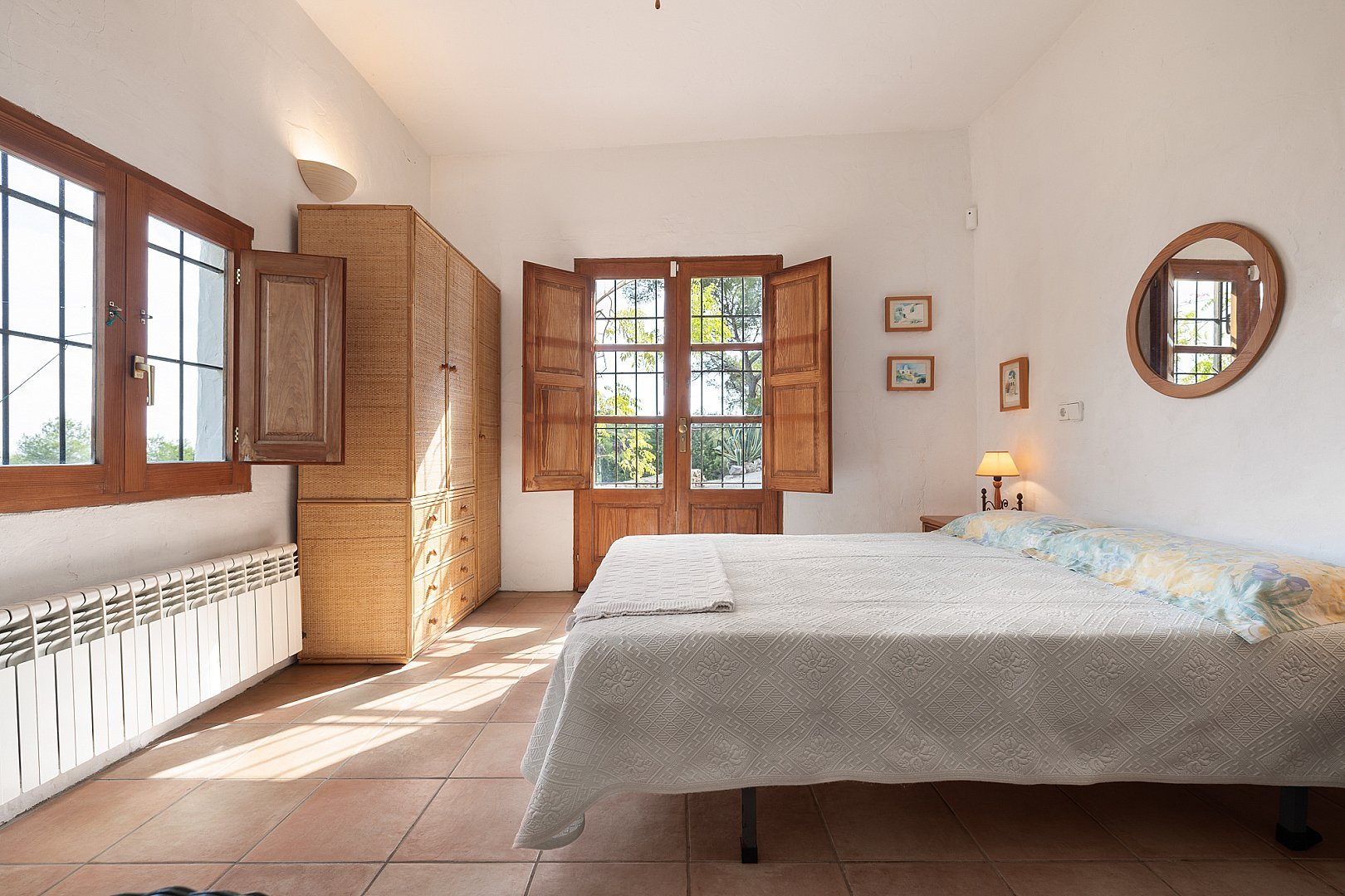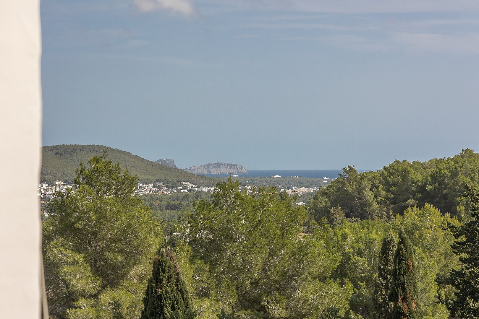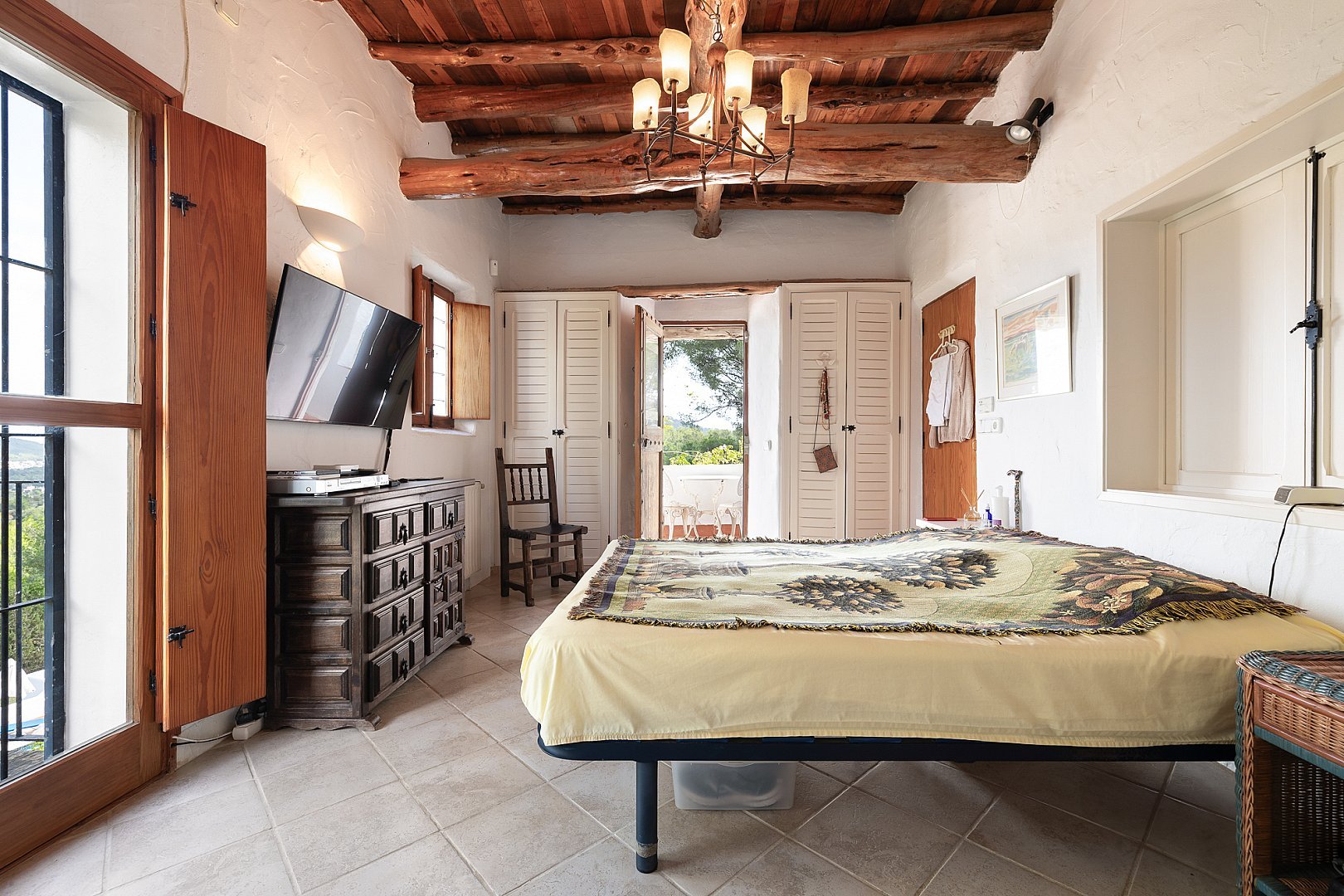 Perched between Cala Llonga and Santa Eulalia, this charming finca sits atop a peaceful hill, offering breathtaking views stretching all the way to the Tagomago Island. Surrounded by lush nature and set on a spacious plot, the property exudes traditional Ibicencan charme and offers both privacy and tremendous potential. The house features four spacious bedrooms and three bathrooms, including a generous master suite. The heart of the home is a large kitchen with fireplace, perfect for social gatherings, while the bright living room, also with a cozy fireplace, invites you to unwind and enjoy the surrounding landscape. Expansive terraces wrap around the house, seamlessly connecting indoor and outdoor living. The pool area boasts a large swimming pool with a separate Jacuzzi, ideal for hot summer days. Additional highlights include a private sauna, a small fitness room, and a beautifully maintained garden with a quaint garden shed – ideal for hobbyists or as extra storage. Whether as a year-round residence or holiday retreat, this finca is a rare find in one of Ibiza’s most sought-after locations – just minutes from the beaches and vibrant life of Santa Eulalia, yet tucked away in tranquil seclusion.