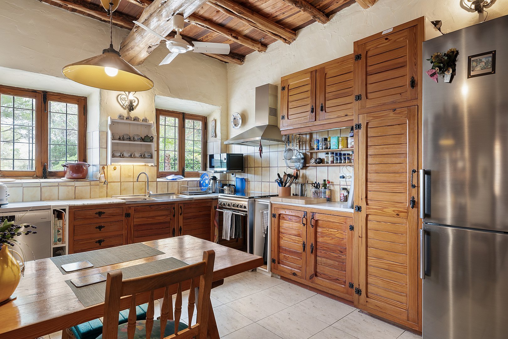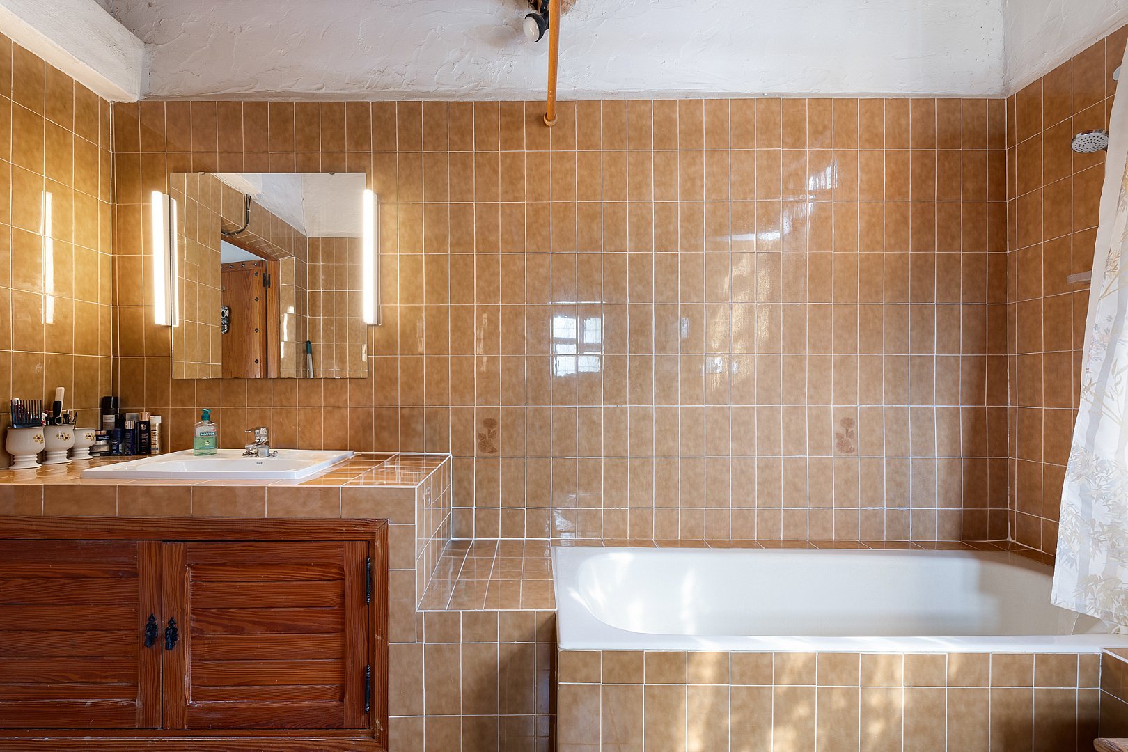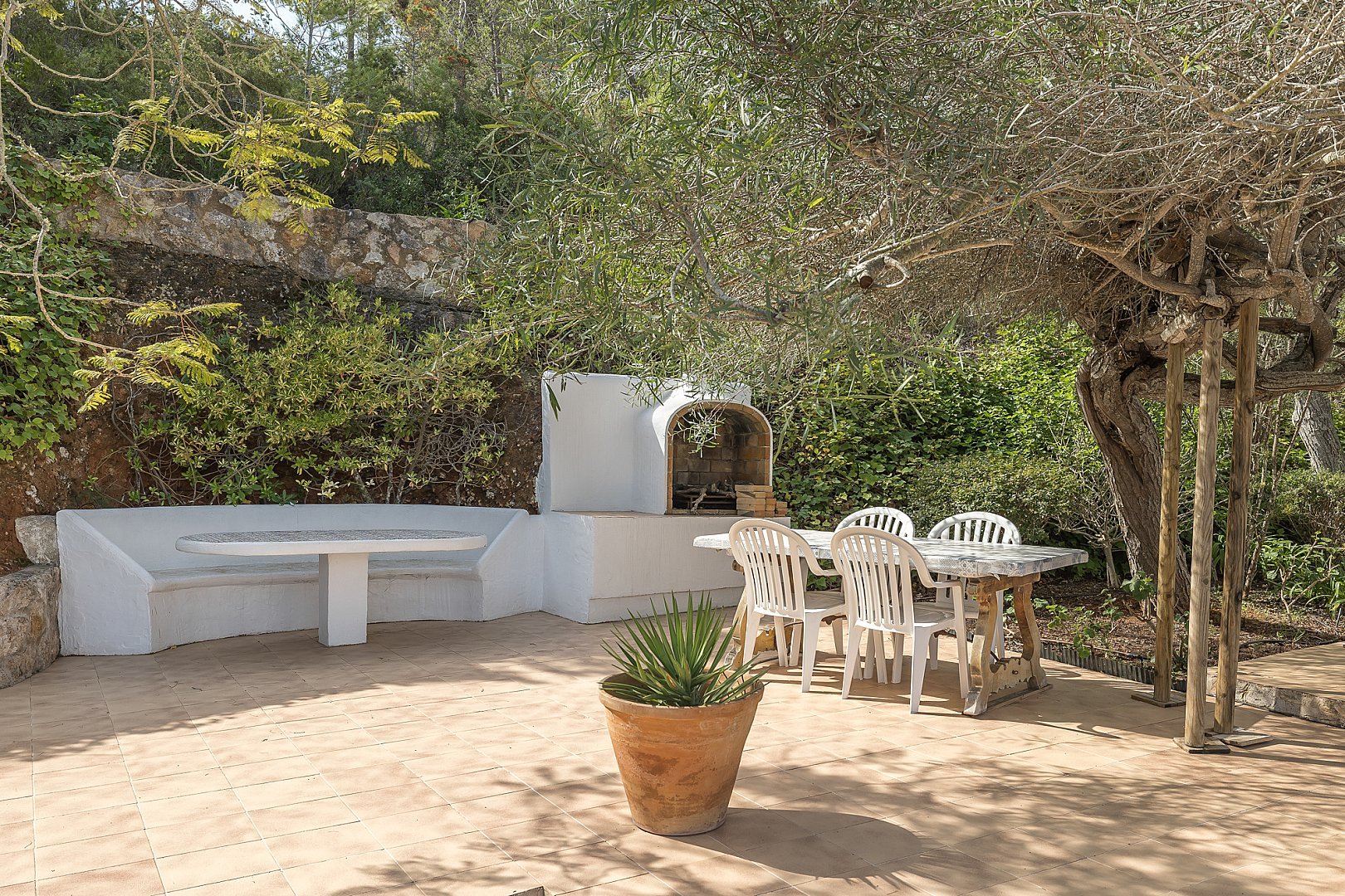 Perched between Cala Llonga and Santa Eulalia, this charming finca sits atop a peaceful hill, offering breathtaking views stretching all the way to the Tagomago Island. Surrounded by lush nature and set on a spacious plot, the property exudes traditional Ibicencan charme and offers both privacy and tremendous potential. The house features four spacious bedrooms and three bathrooms, including a generous master suite. The heart of the home is a large kitchen with fireplace, perfect for social gatherings, while the bright living room, also with a cozy fireplace, invites you to unwind and enjoy the surrounding landscape. Expansive terraces wrap around the house, seamlessly connecting indoor and outdoor living. The pool area boasts a large swimming pool with a separate Jacuzzi, ideal for hot summer days. Additional highlights include a private sauna, a small fitness room, and a beautifully maintained garden with a quaint garden shed – ideal for hobbyists or as extra storage. Whether as a year-round residence or holiday retreat, this finca is a rare find in one of Ibiza’s most sought-after locations – just minutes from the beaches and vibrant life of Santa Eulalia, yet tucked away in tranquil seclusion.