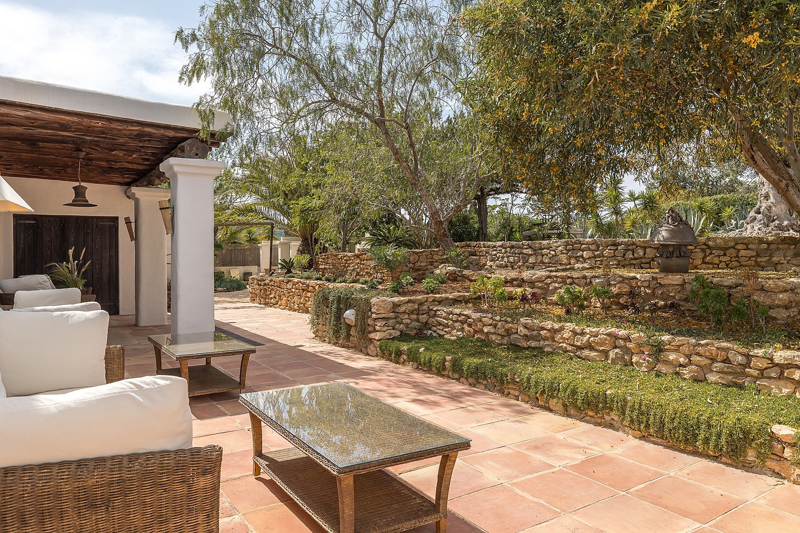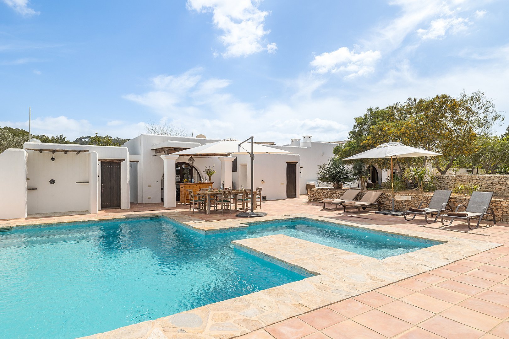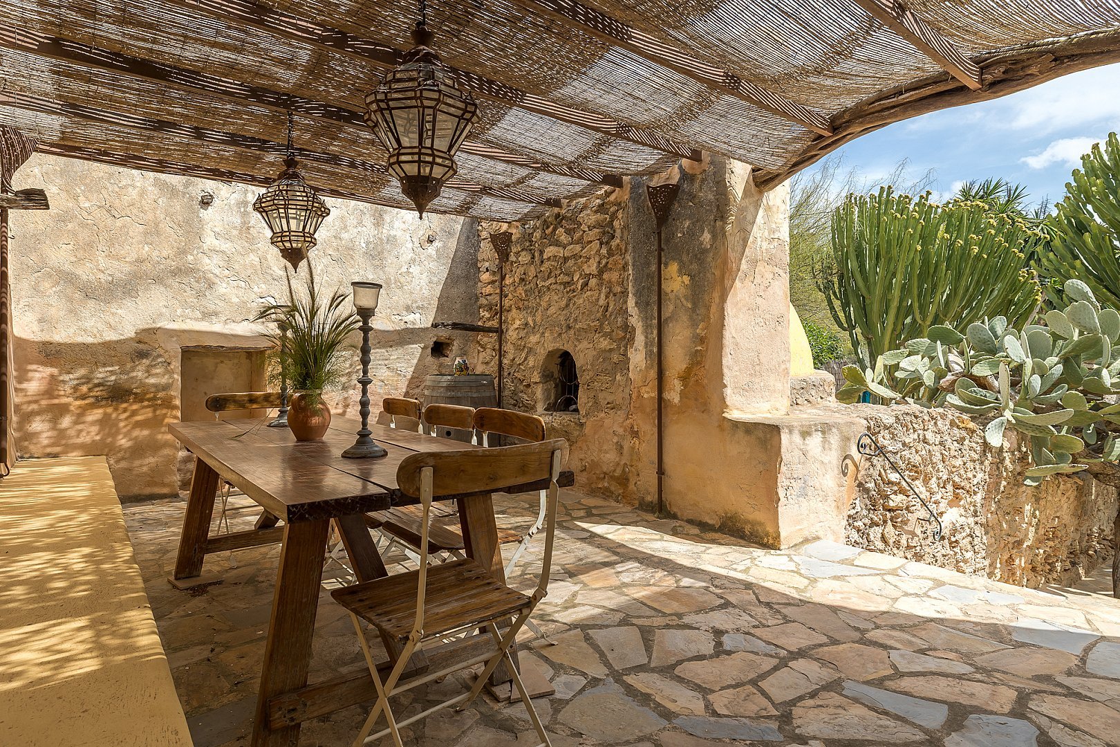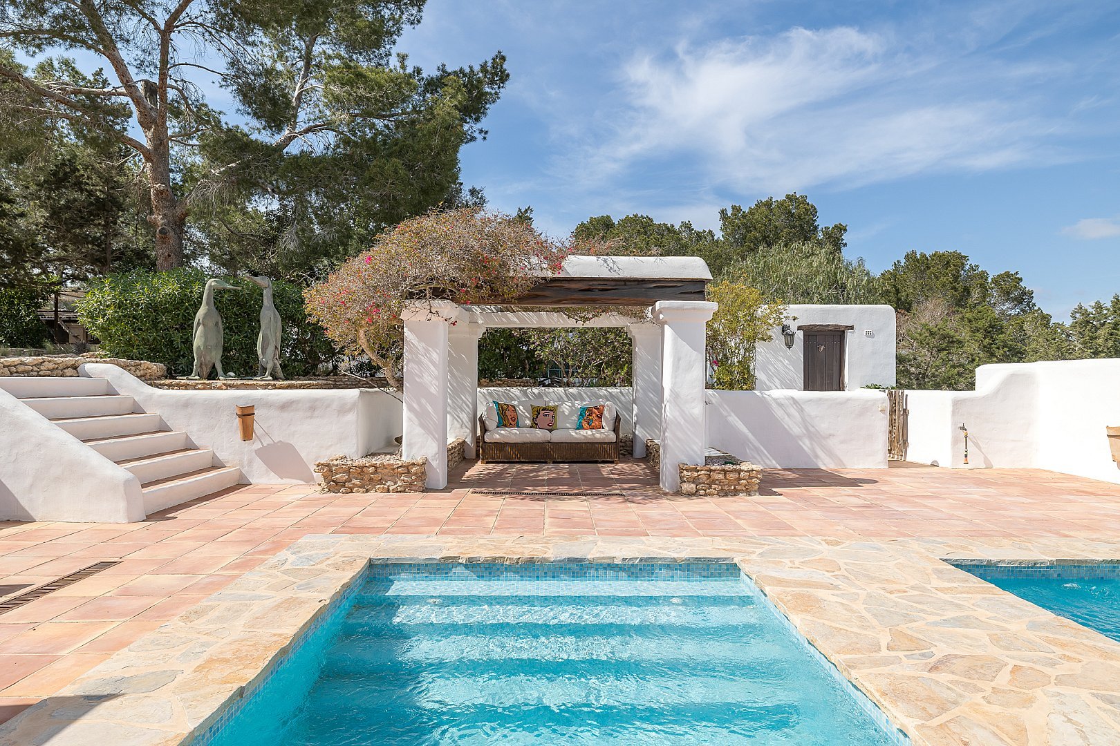 This unique property has been conceived as a haven of peace in one of the most exclusive areas of Ibiza. It is an authentic, carefully restored estate, situated in a privileged natural setting, blending the island's traditional charm with the highest standards of comfort and privacy. The property is divided into two independent residences, designed with intimacy and well-being in mind. The main house welcomes visitors with a traditional porch leading to an elegant living-dining room with a fireplace, two en-suite bedrooms with walk-in closets, a reading room, a third en-suite bedroom, and a spacious, bright, and functional kitchen. Both the kitchen and living room open to the main pool, enhancing the calm and balance that define the property. The second residence offers three bedrooms, two additional bathrooms, an exterior en-suite bedroom, and a second pool, ideal for more intimate relaxation. In total, the estate features eight bedrooms and nine bathrooms, all designed with meticulous attention to detail. Two fully equipped kitchens and auxiliary spaces such as an independent studio and rooms for art, meditation, or remote work complete the experience. The outdoor areas extend the lifestyle this property offers: Tuscan-inspired terraces, outdoor kitchens, barbecue areas, a serene fish pond, and a birdcage surrounded by gardens that reveal private corners and pathways to reconnect with nature. Its strategic location, close to Sant Josep de Sa Talaia and beaches like Cala Comte, Cala Bassa, or Cala Tarida, allows for a perfect balance between tranquility and access to the southwest's main attractions. Heritage elements such as sabina beams, natural stone floors, and a handcrafted sundial give character to every space, creating an atmosphere where tradition and elegance coexist in perfect harmony. This finca is more than just a residence; it is a lifestyle that captures the true essence of Ibiza.