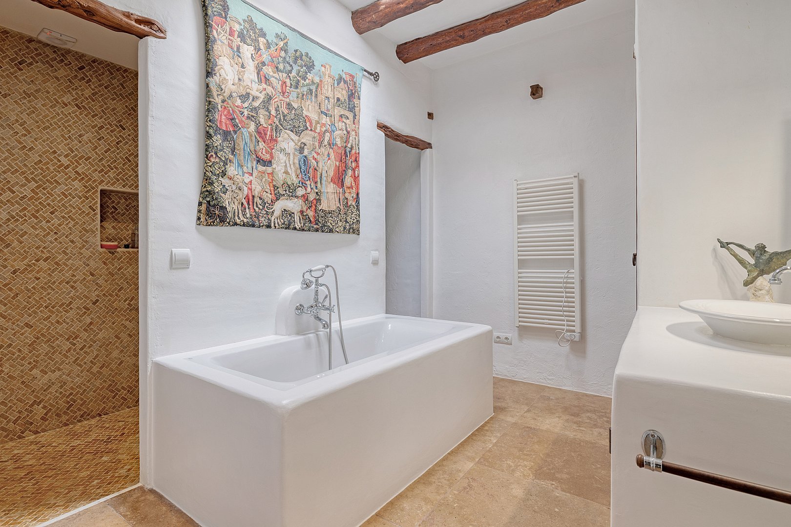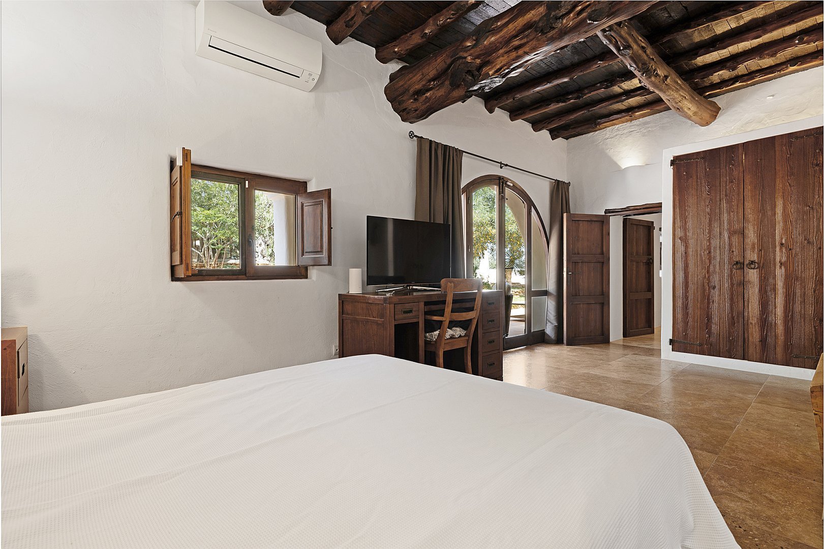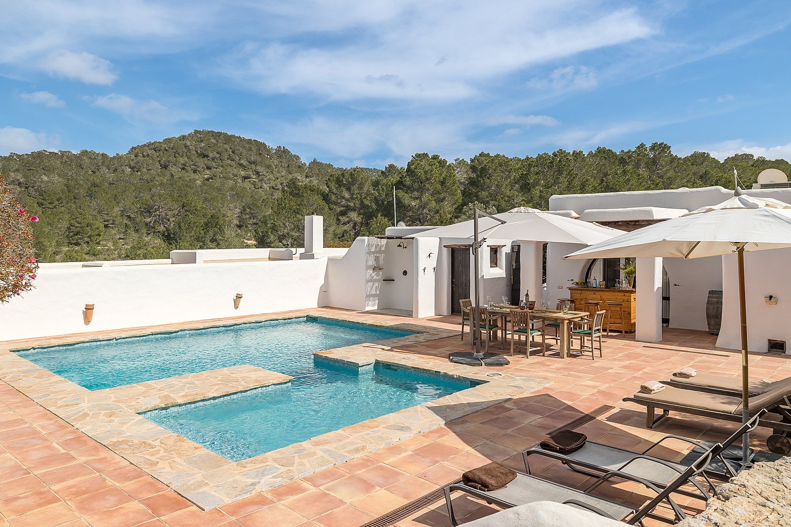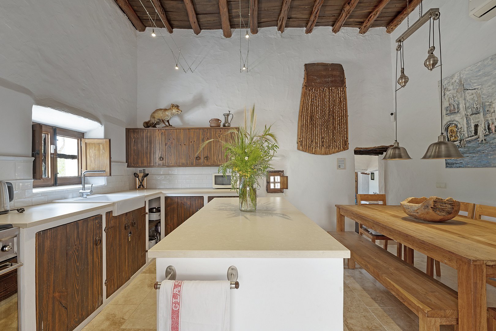 This unique property has been conceived as a haven of peace in one of the most exclusive areas of Ibiza. It is an authentic, carefully restored estate, situated in a privileged natural setting, blending the island's traditional charm with the highest standards of comfort and privacy. The property is divided into two independent residences, designed with intimacy and well-being in mind. The main house welcomes visitors with a traditional porch leading to an elegant living-dining room with a fireplace, two en-suite bedrooms with walk-in closets, a reading room, a third en-suite bedroom, and a spacious, bright, and functional kitchen. Both the kitchen and living room open to the main pool, enhancing the calm and balance that define the property. The second residence offers three bedrooms, two additional bathrooms, an exterior en-suite bedroom, and a second pool, ideal for more intimate relaxation. In total, the estate features eight bedrooms and nine bathrooms, all designed with meticulous attention to detail. Two fully equipped kitchens and auxiliary spaces such as an independent studio and rooms for art, meditation, or remote work complete the experience. The outdoor areas extend the lifestyle this property offers: Tuscan-inspired terraces, outdoor kitchens, barbecue areas, a serene fish pond, and a birdcage surrounded by gardens that reveal private corners and pathways to reconnect with nature. Its strategic location, close to Sant Josep de Sa Talaia and beaches like Cala Comte, Cala Bassa, or Cala Tarida, allows for a perfect balance between tranquility and access to the southwest's main attractions. Heritage elements such as sabina beams, natural stone floors, and a handcrafted sundial give character to every space, creating an atmosphere where tradition and elegance coexist in perfect harmony. This finca is more than just a residence; it is a lifestyle that captures the true essence of Ibiza.