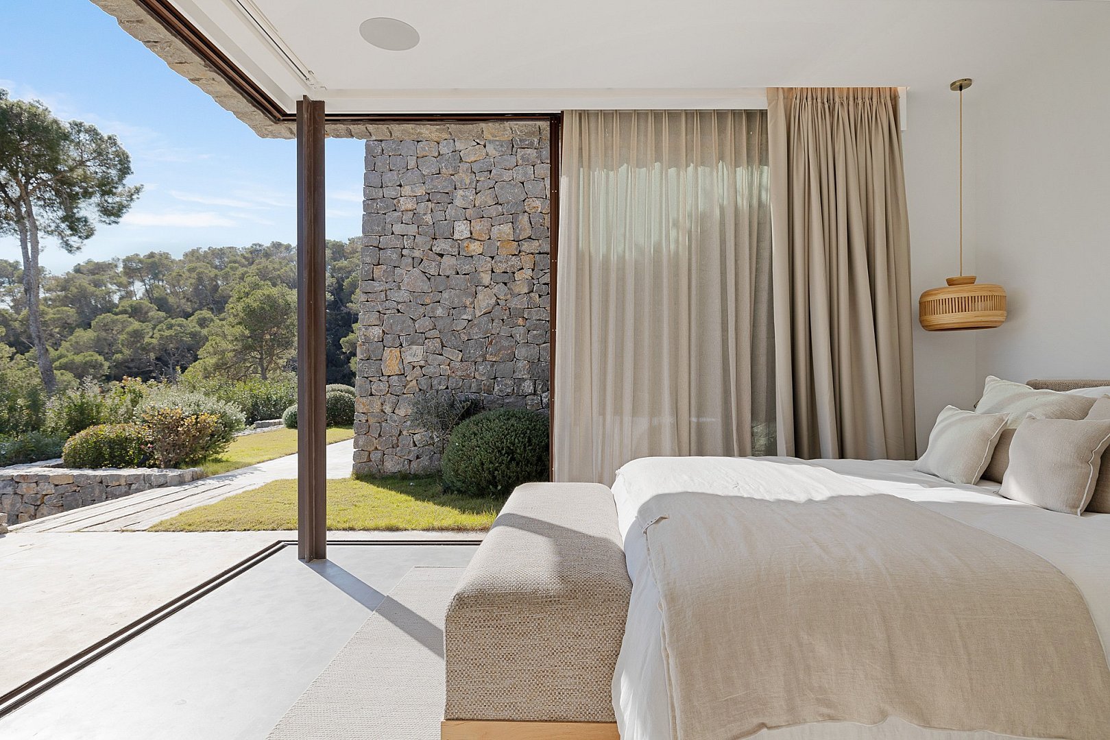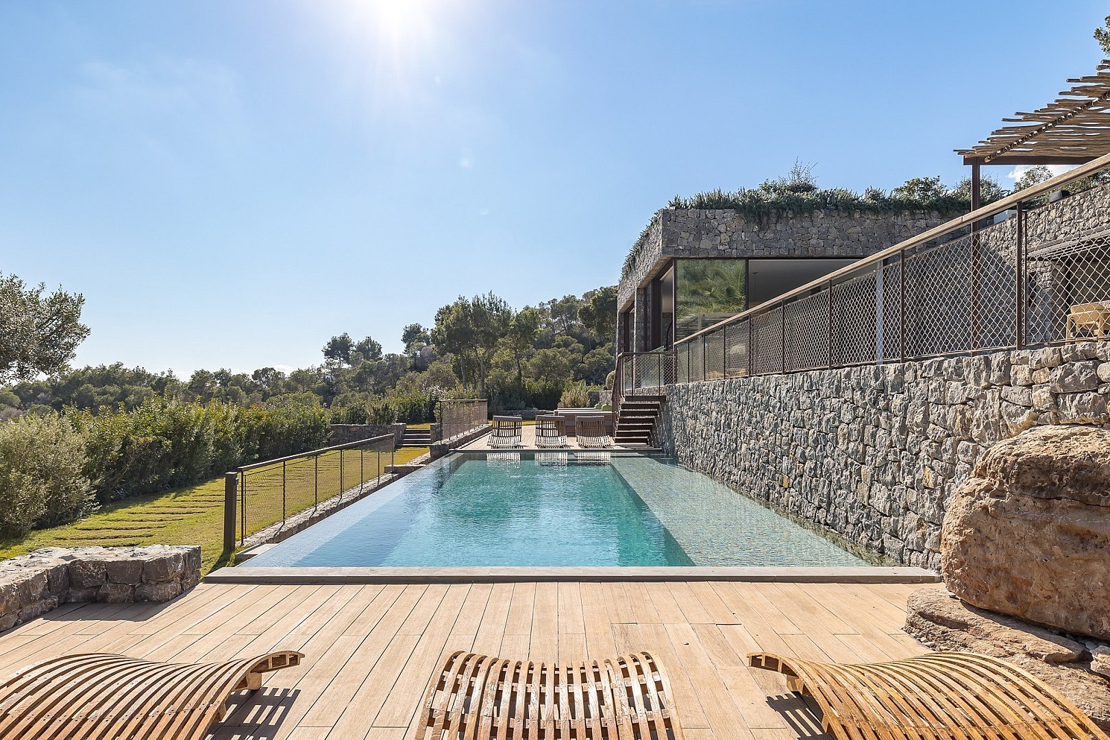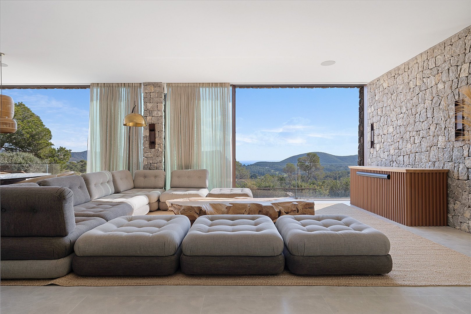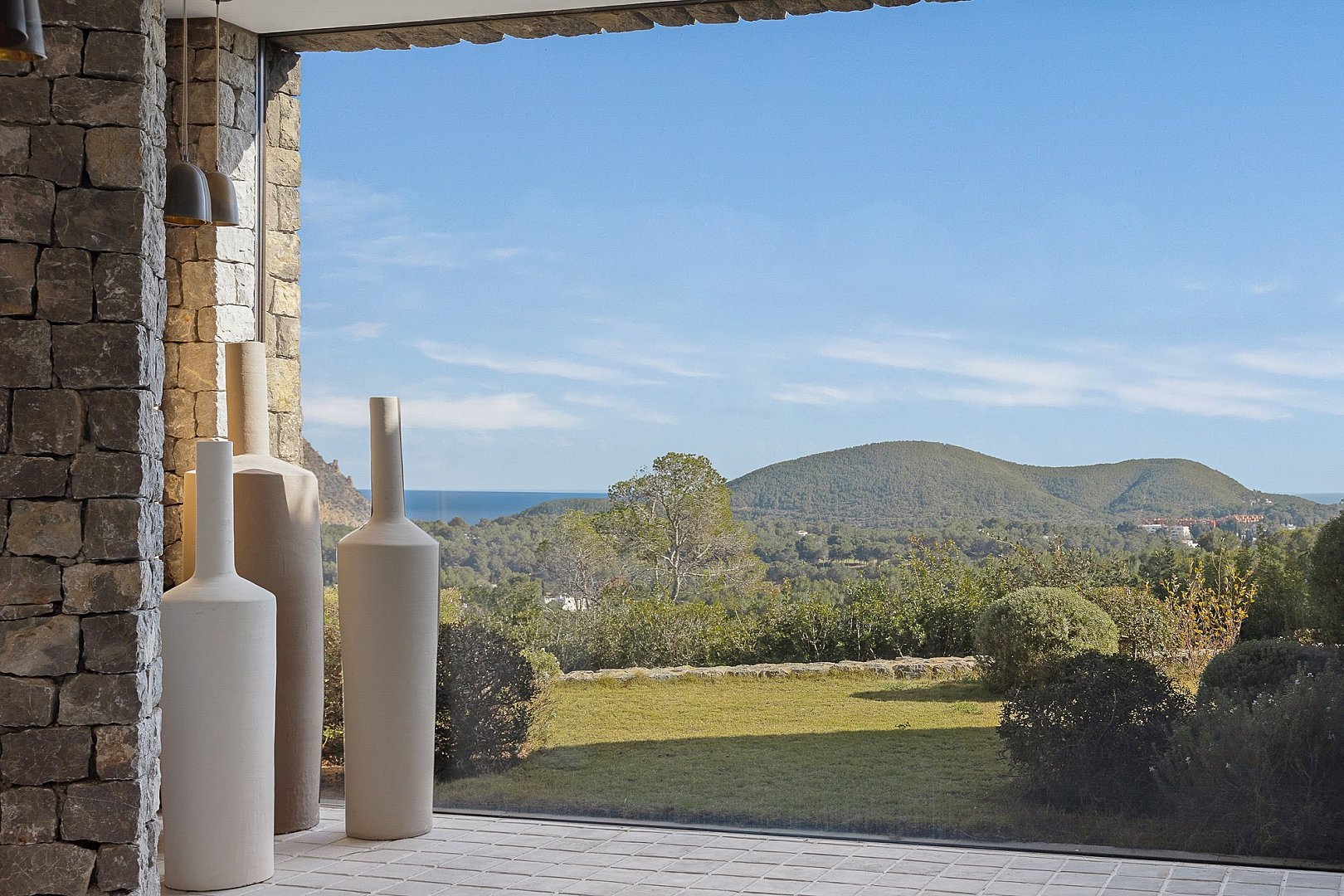 This exceptional newly built property perfectly combines comfort and luxury. Located in a privileged setting, high in the mountains, it offers breathtaking panoramic views all the way to the sea. Its unbeatable location, close to the exclusive golf course, offers the perfect balance between privacy and proximity to the best services of the island. Designed with natural materials of the highest quality, every detail has been carefully selected to integrate harmoniously with the landscape. The house features spacious and bright bedrooms, each with en-suite bathroom and an elegant walk-in closet. The open concept kitchen, equipped with high-end appliances, offers spectacular views of the mountains and gives access to an air-conditioned wine cellar, a paradise for wine lovers. It opens to the living-dining room, a space designed to enjoy the beauty of the surroundings, with unparalleled views of the valley, the mountains and the sea. Outside, a fully equipped kitchen, a laundry room and a bathroom complement the spectacular swimming pool, ideal for relaxing and enjoying the Mediterranean climate. A unique property that invites you to live an incomparable experience on the island.