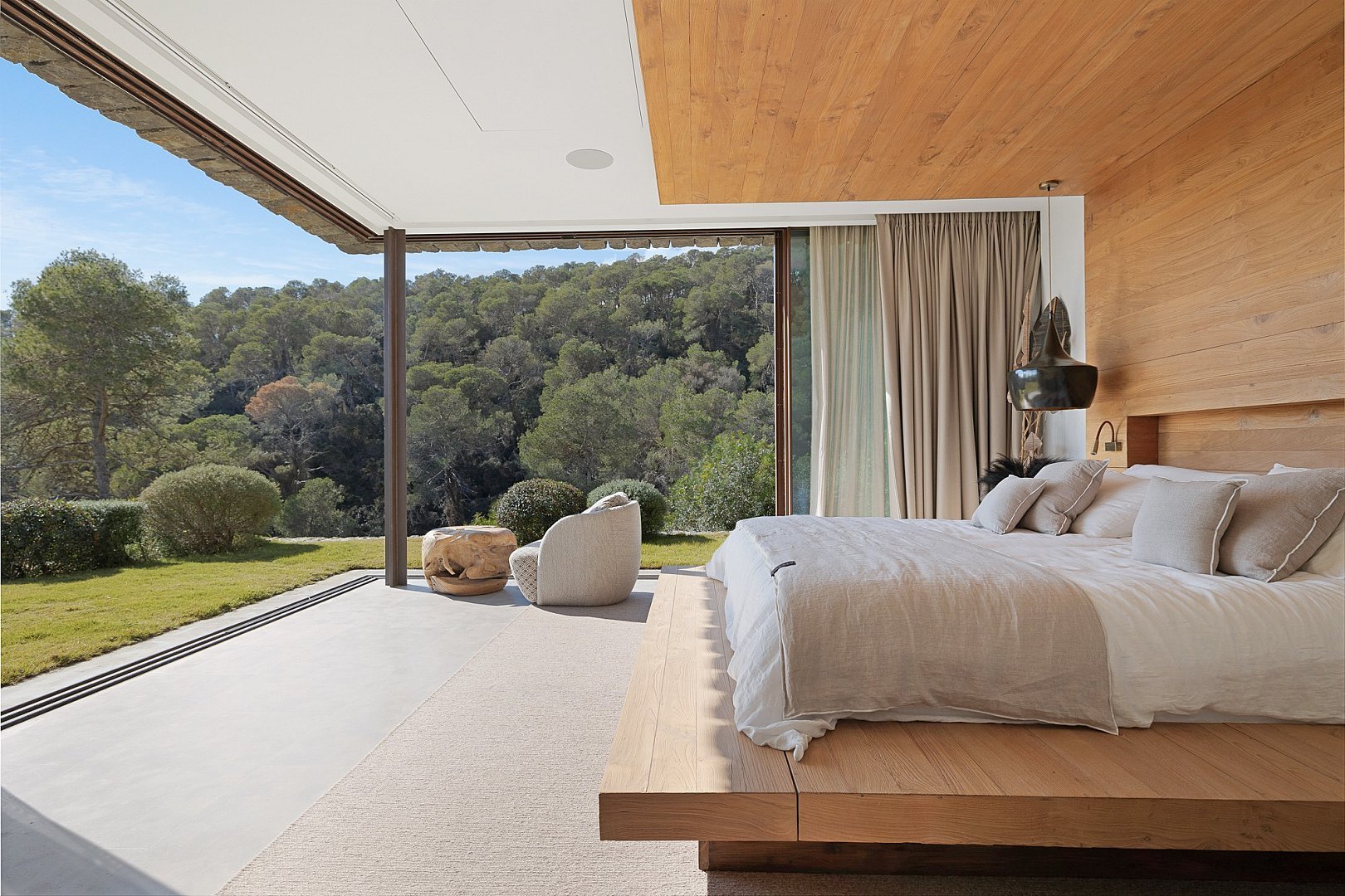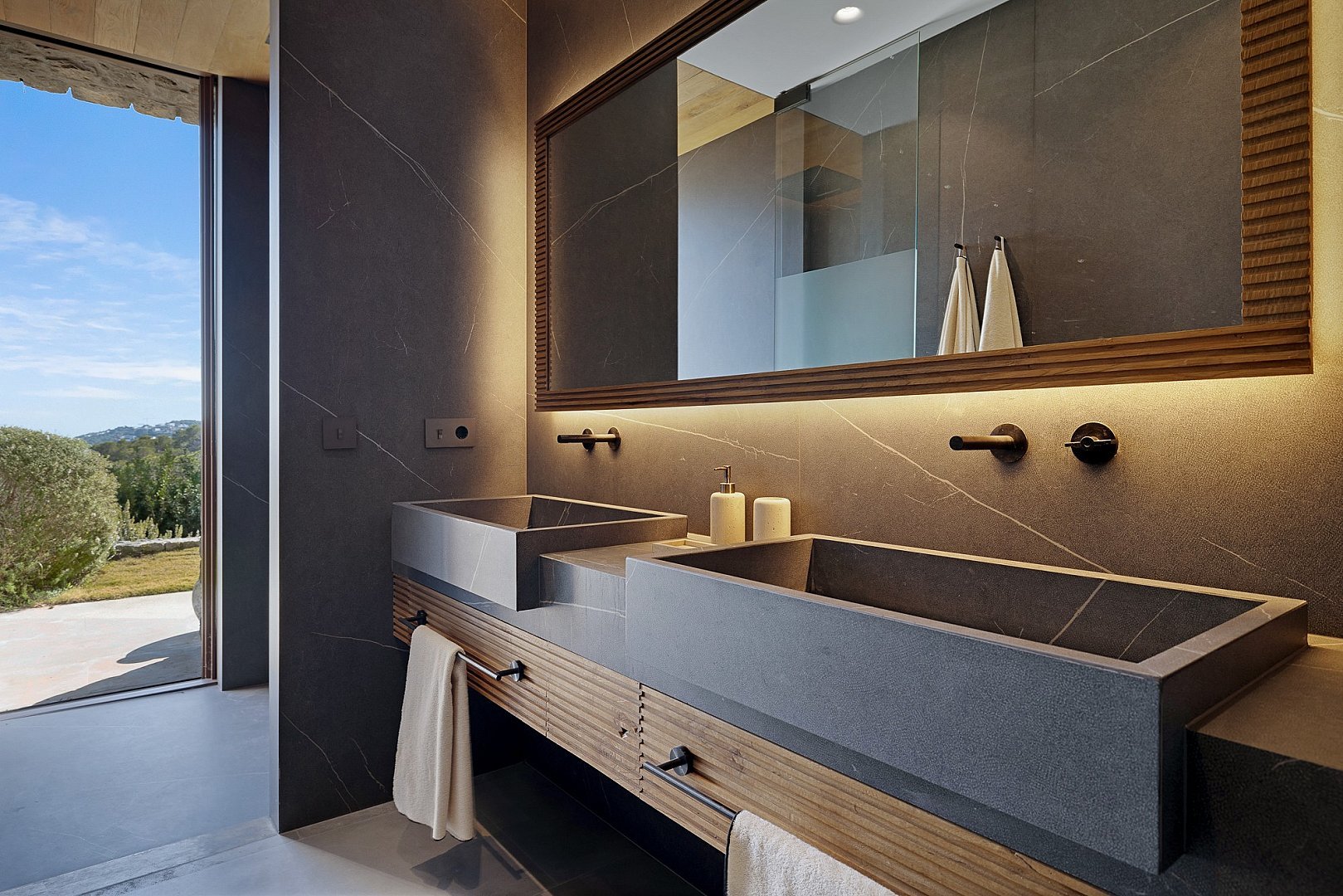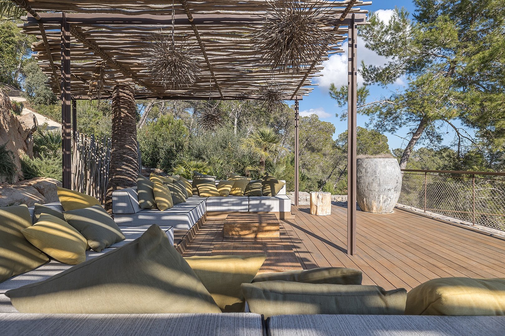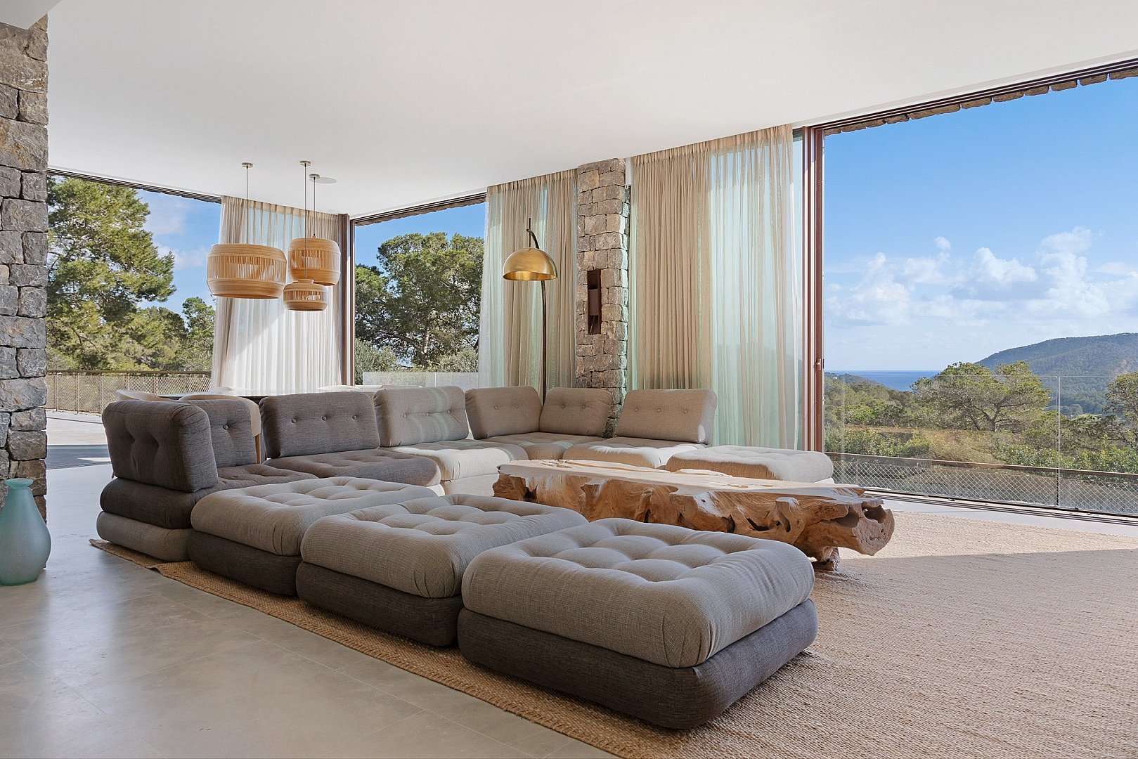 This exceptional newly built property perfectly combines comfort and luxury. Located in a privileged setting, high in the mountains, it offers breathtaking panoramic views all the way to the sea. Its unbeatable location, close to the exclusive golf course, offers the perfect balance between privacy and proximity to the best services of the island. Designed with natural materials of the highest quality, every detail has been carefully selected to integrate harmoniously with the landscape. The house features spacious and bright bedrooms, each with en-suite bathroom and an elegant walk-in closet. The open concept kitchen, equipped with high-end appliances, offers spectacular views of the mountains and gives access to an air-conditioned wine cellar, a paradise for wine lovers. It opens to the living-dining room, a space designed to enjoy the beauty of the surroundings, with unparalleled views of the valley, the mountains and the sea. Outside, a fully equipped kitchen, a laundry room and a bathroom complement the spectacular swimming pool, ideal for relaxing and enjoying the Mediterranean climate. A unique property that invites you to live an incomparable experience on the island.