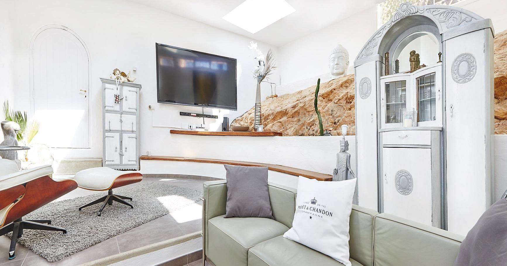 Esta hermosa villa de 4 dormitorios, enclavada en la impresionante Cala d'Hort, ofrece un refugio excepcional con impresionantes vistas de la costa de San José y la emblemática roca de Es Vedra. La ubicación privilegiada de la villa garantiza algunas de las puestas de sol más espectaculares de Ibiza, lo que la convierte en el escenario perfecto para una escapada relajante. Recientemente reformada, la villa combina a la perfección muebles ibicencos, marroquíes y balineses, creando un carácter único y un ambiente acogedor en todas partes.