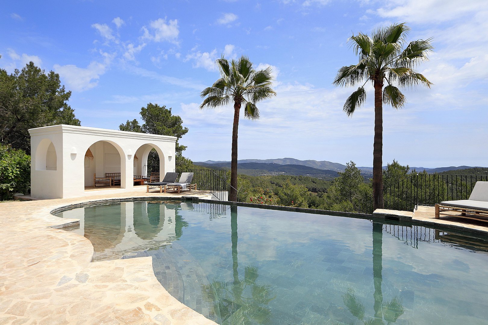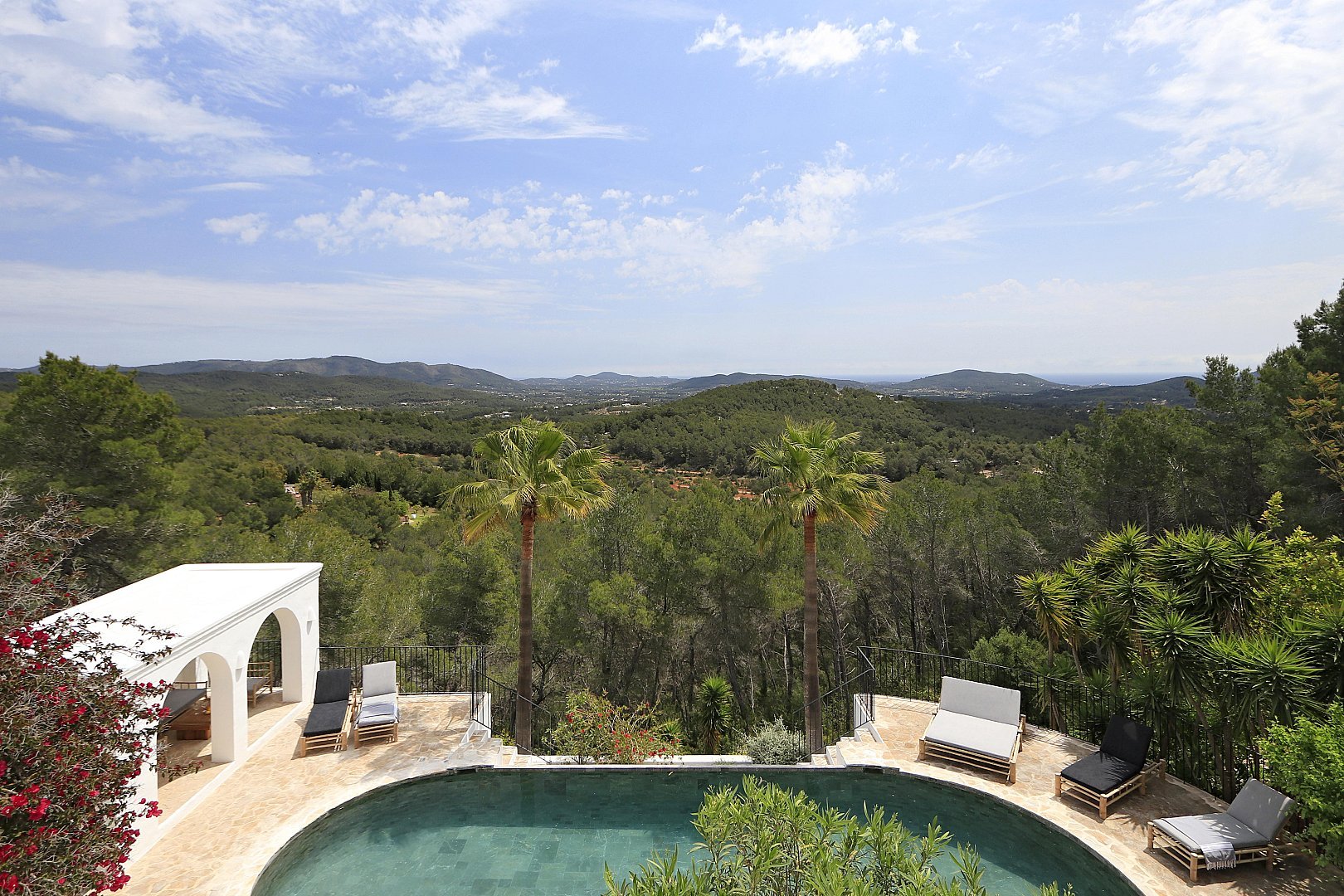 Situada en la cima de una pintoresca colina en el corazón de Ibiza, esta impresionante villa ofrece unas vistas inigualables de los bosques de pinos, las tierras de cultivo y el mar a lo lejos. Ubicada cerca de Santa Gertrudis, uno de los pueblos ibicencos mejor conservados y con más encanto, esta moderna pero auténtica casa ibicenca es el refugio ideal para familias y amigos que buscan privacidad, naturaleza y acceso a las mejores atracciones de Ibiza.