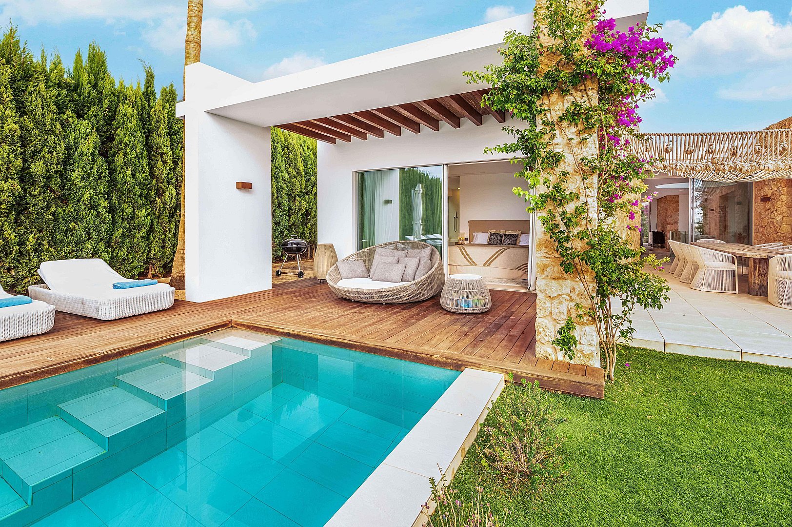 Esta impresionante villa es un refugio ideal para aquellos que buscan lujo moderno, impresionantes vistas al mar y proximidad a las playas más famosas de Ibiza.