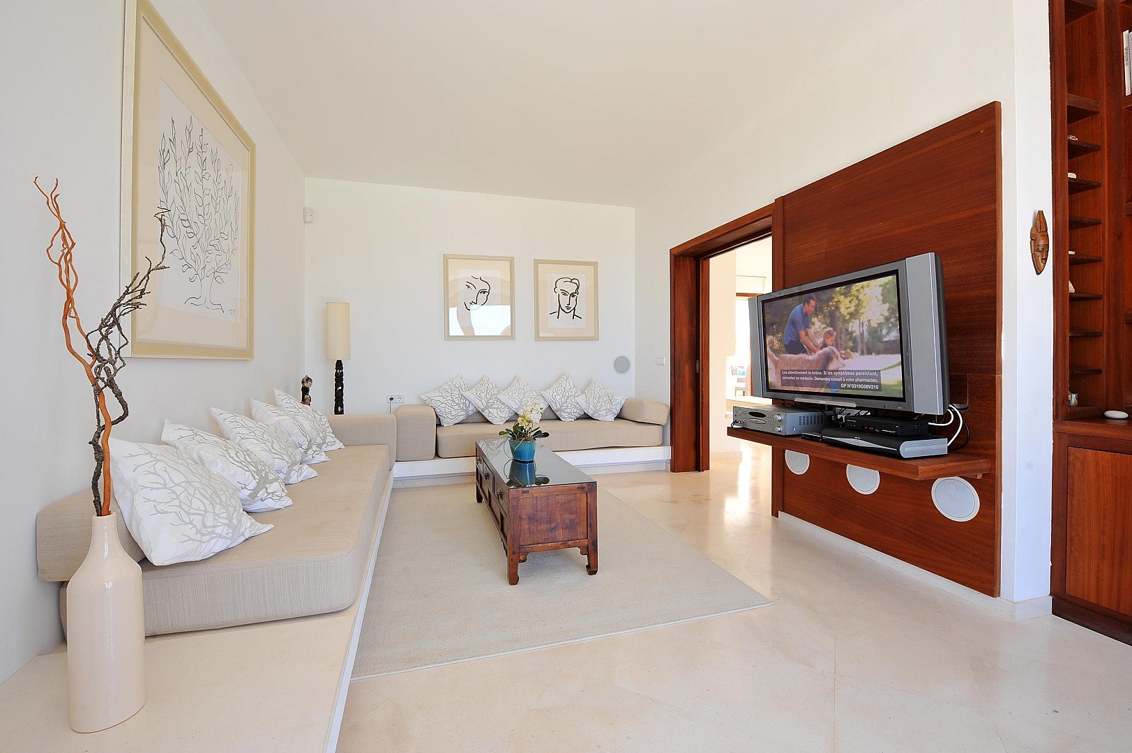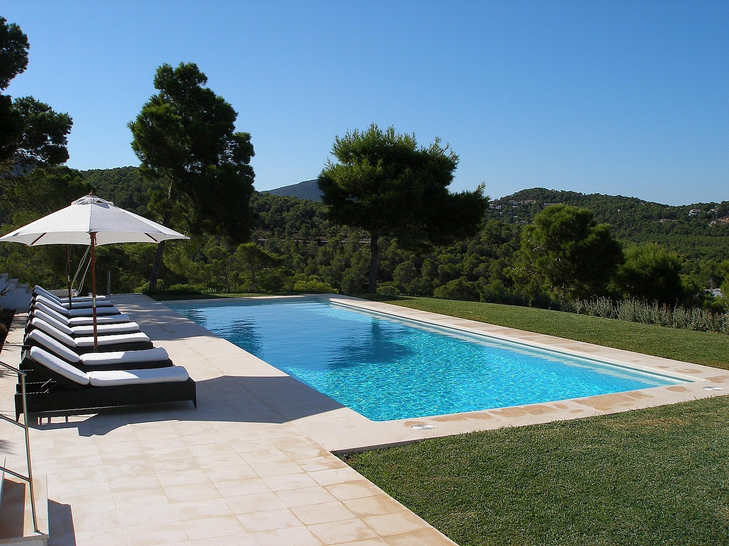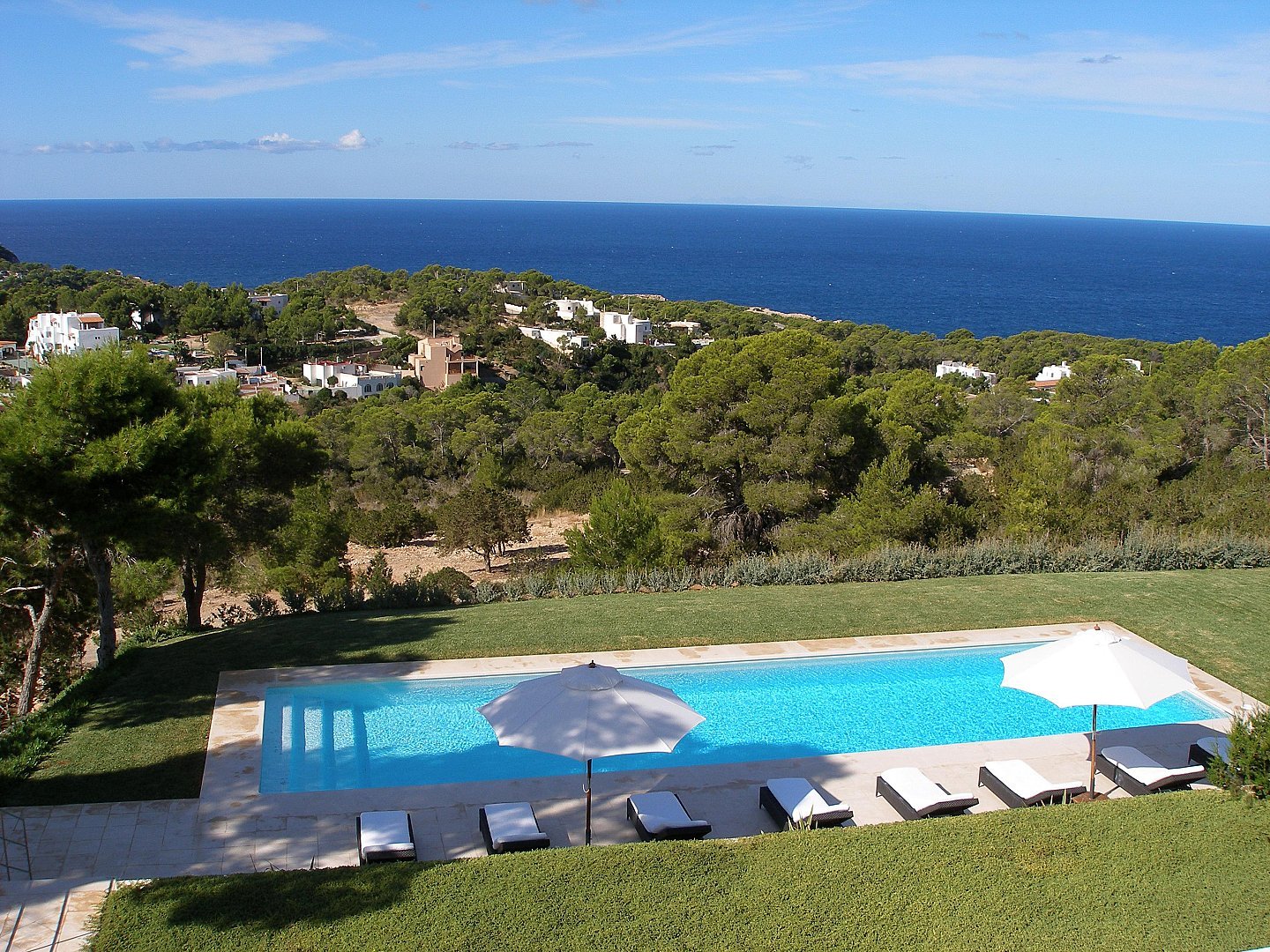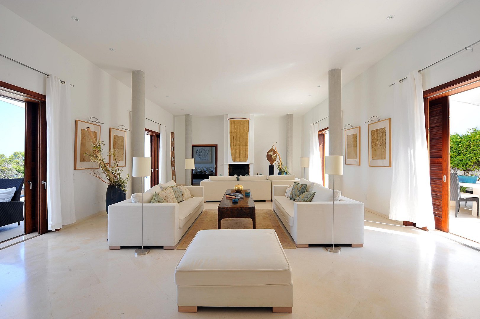 Esta impresionante propiedad está situada en las montañas cercanas a Cala Vadella. El pintoresco pueblo de San José con sus tiendas y restaurantes se encuentra a 10min en coche. La ciudad de Ibiza está a 25min conduciendo. La playa de Cala Vadella es ideal para familias y se encuentra a tán sólo 5min en coche.