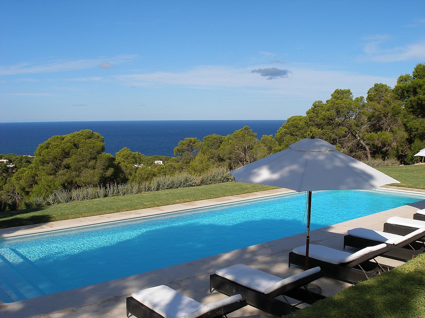 Piscina 12 x 5mts con 12 tumbonas y sombrillas