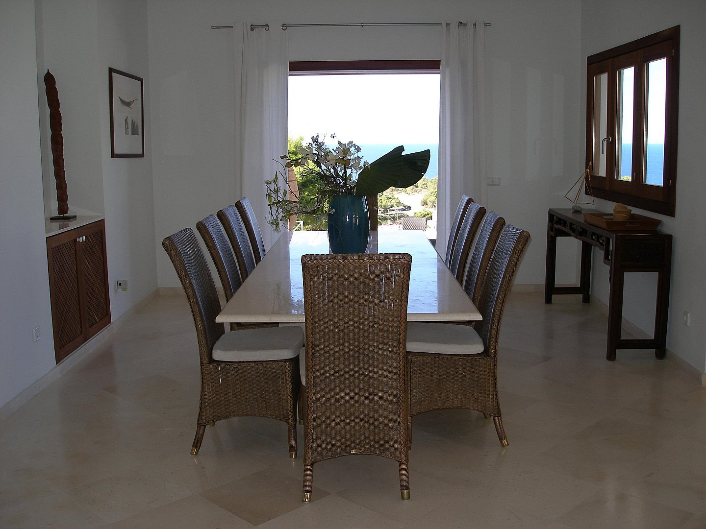 Amplio salón-comedor, cocina totalmente equipada. Bonitas puertas correderas se abren desde el salón y dan acceso a la terraza y a la piscina.