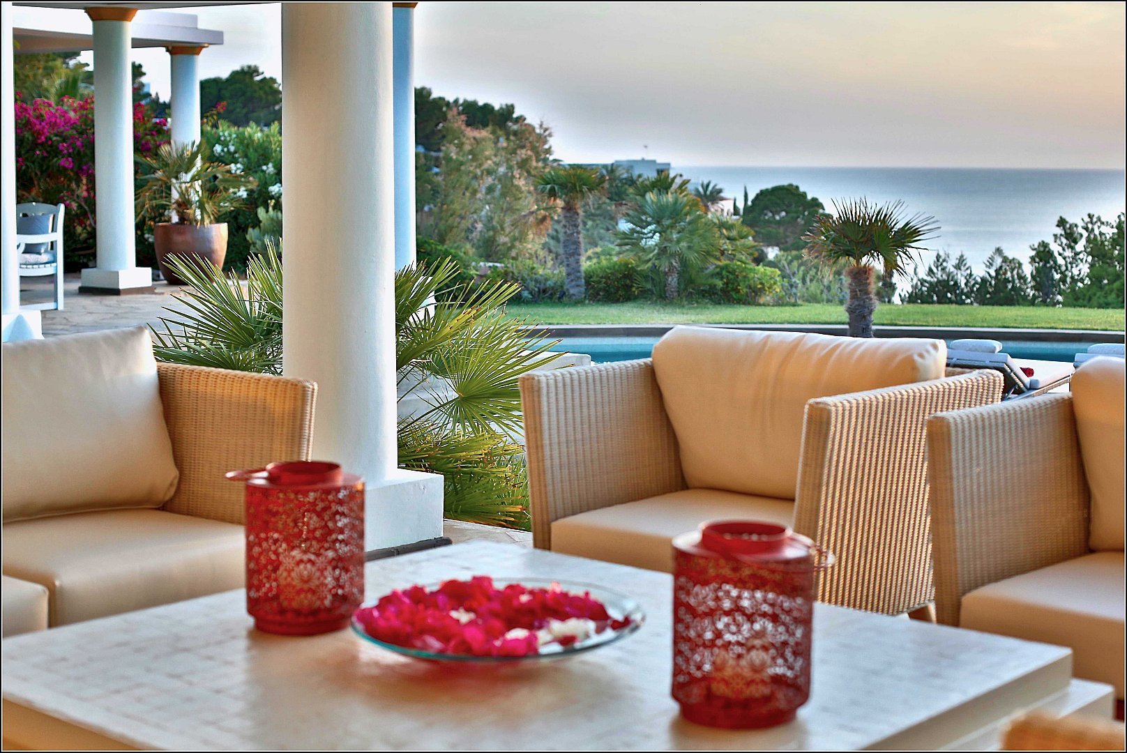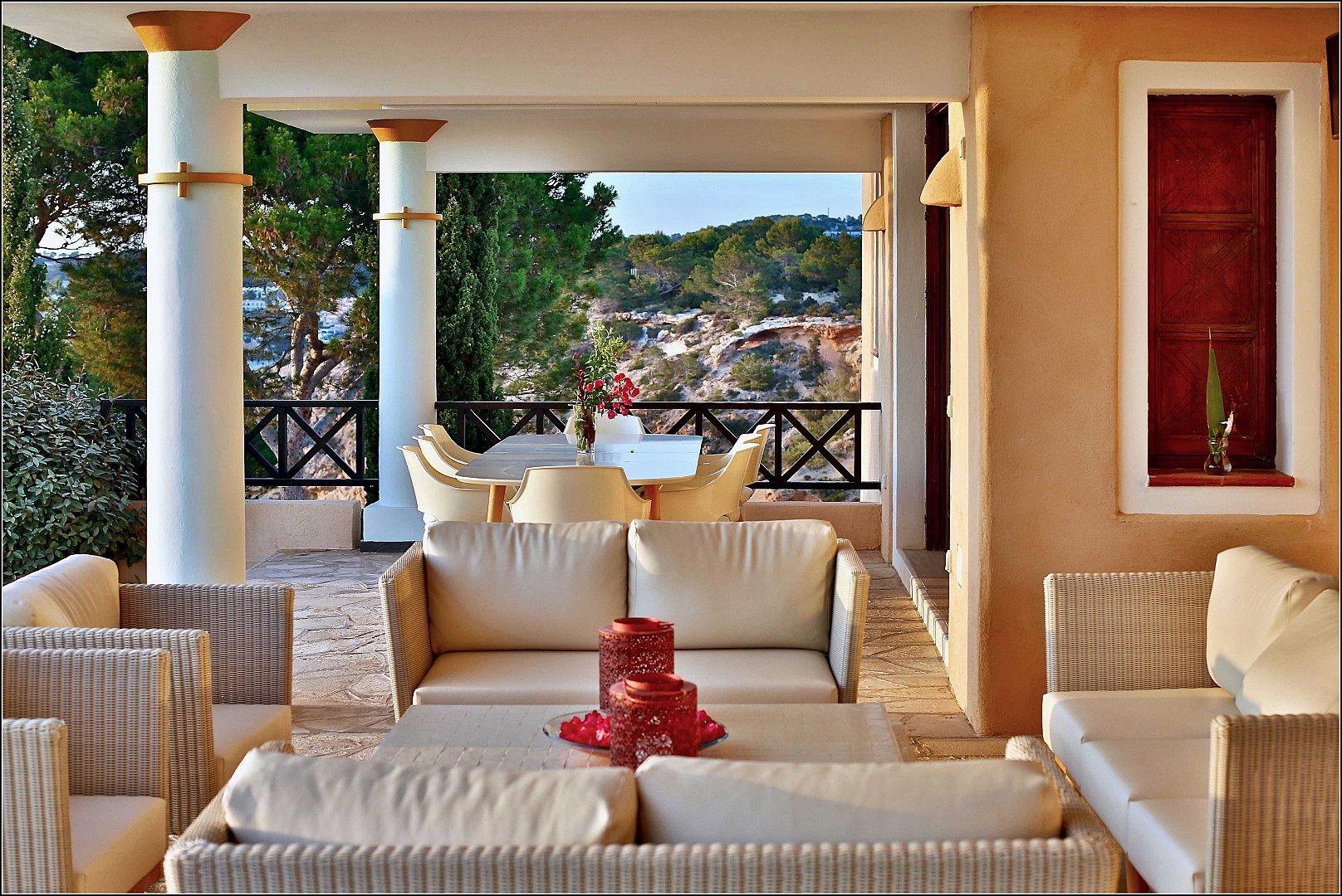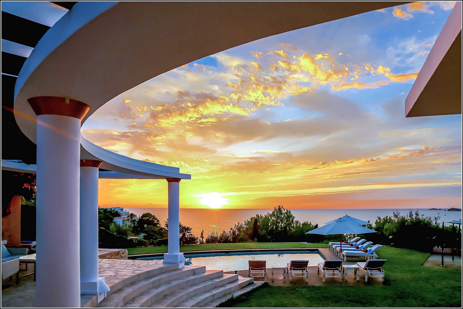 Encaramada sobre las aguas cristalinas de Cala Molí, esta lujosa villa junto al acantilado ofrece unas vistas panorámicas inigualables de la puesta de sol ibicenca y los Illots de Ponent (islotes del poniente). Esta finca, una verdadera joya mediterránea, se ha mantenido y modernizado cuidadosamente a lo largo de los años, lo que la convierte en un refugio perfecto para familias y grupos que buscan privacidad, comodidad y elegancia.