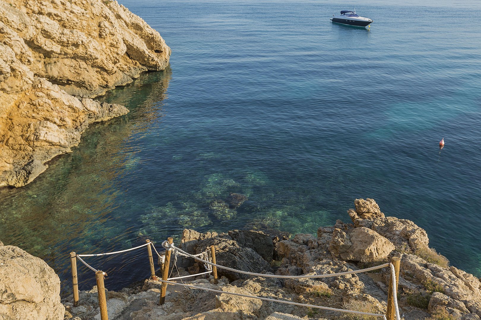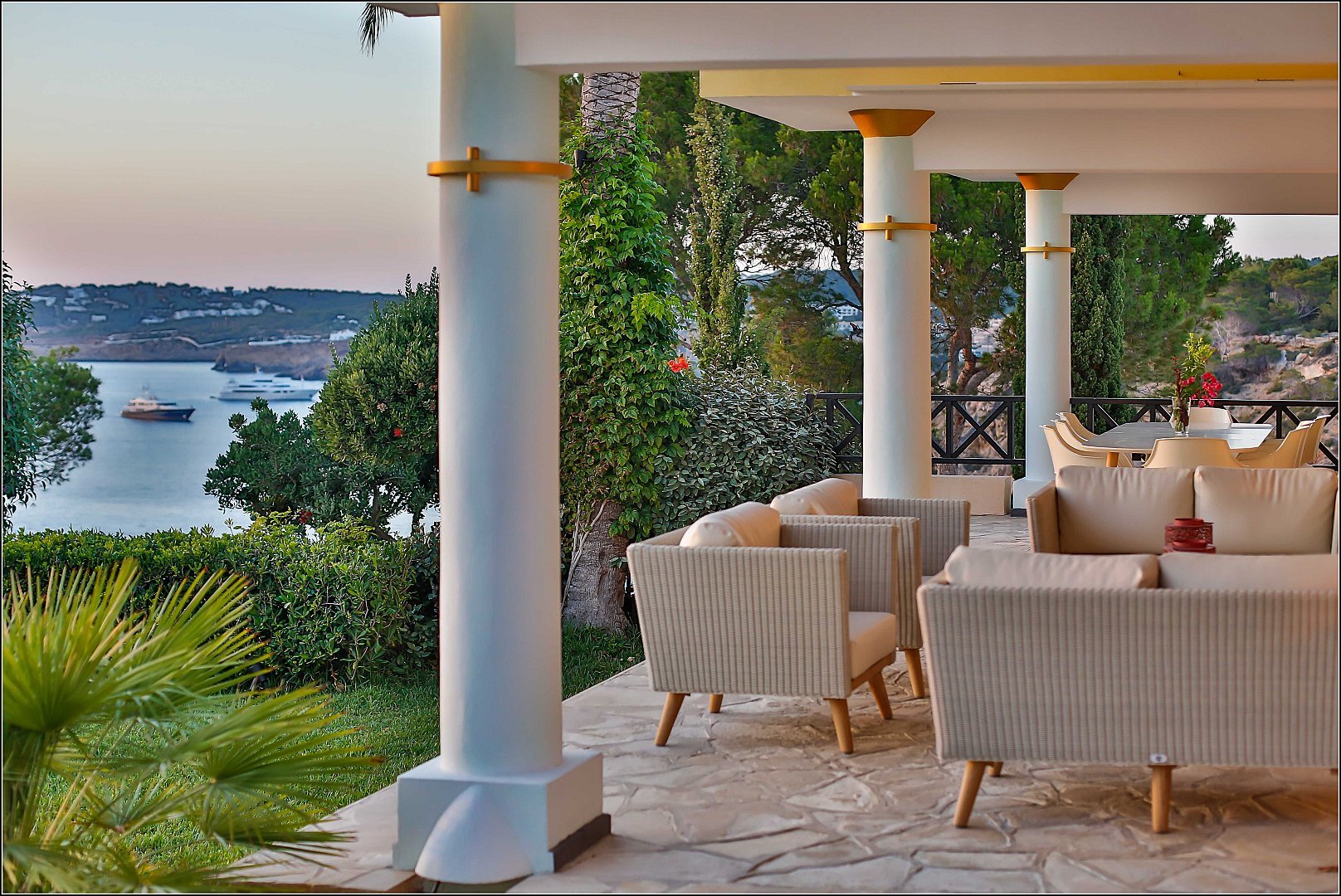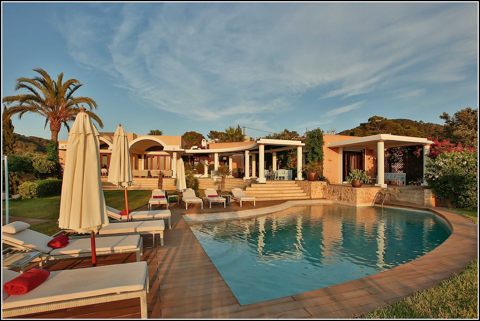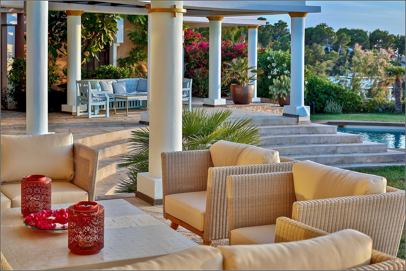 Encaramada sobre las aguas cristalinas de Cala Molí, esta lujosa villa junto al acantilado ofrece unas vistas panorámicas inigualables de la puesta de sol ibicenca y los Illots de Ponent (islotes del poniente). Esta finca, una verdadera joya mediterránea, se ha mantenido y modernizado cuidadosamente a lo largo de los años, lo que la convierte en un refugio perfecto para familias y grupos que buscan privacidad, comodidad y elegancia.
