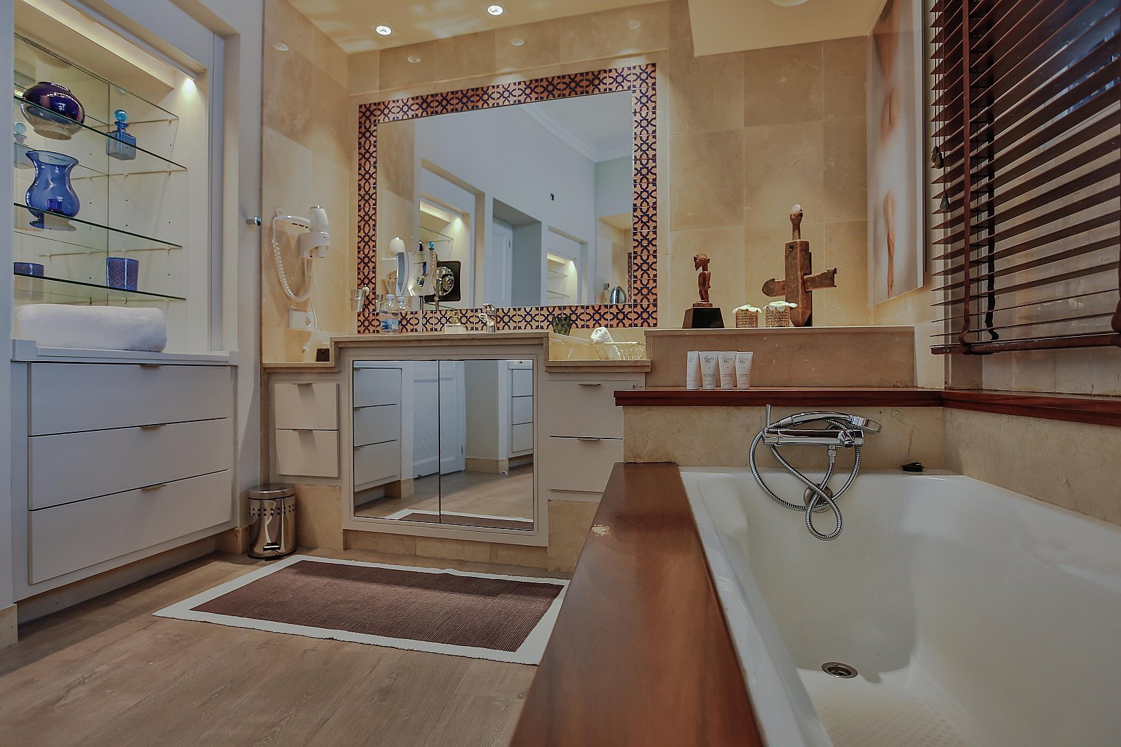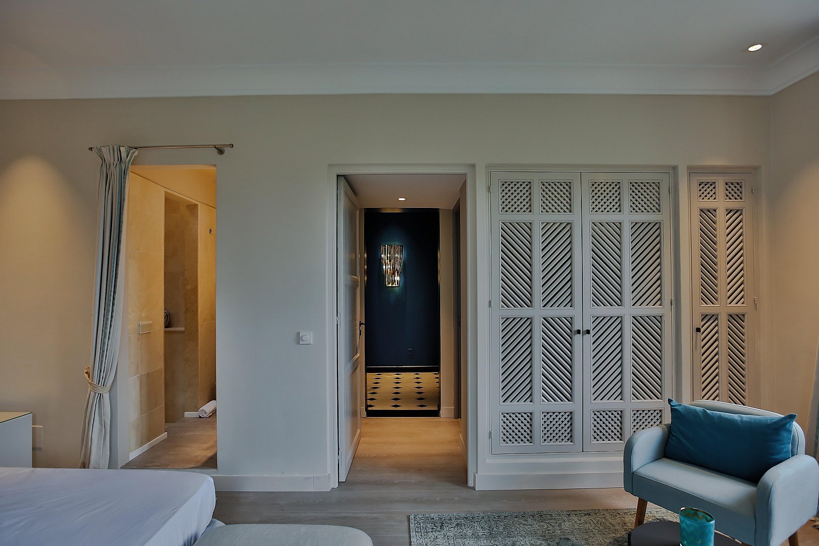 • Estudio privado del propietario: sala de estar, dormitorio doble, escritorio, terraza privada con tumbonas y chill-out al atardecer, vestidor y baño.