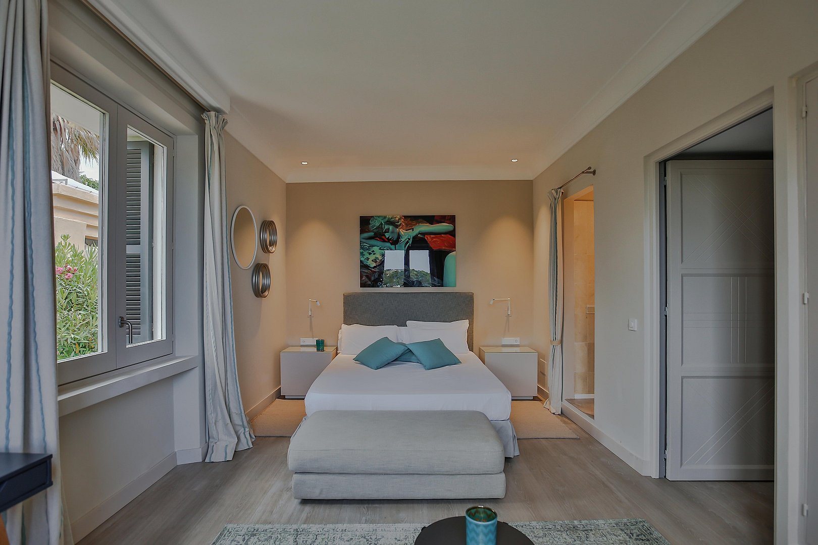 • Dormitorio 5: cama doble, baño privado (ducha), entrada privada, acceso a la terraza y vistas a Cala Molí.