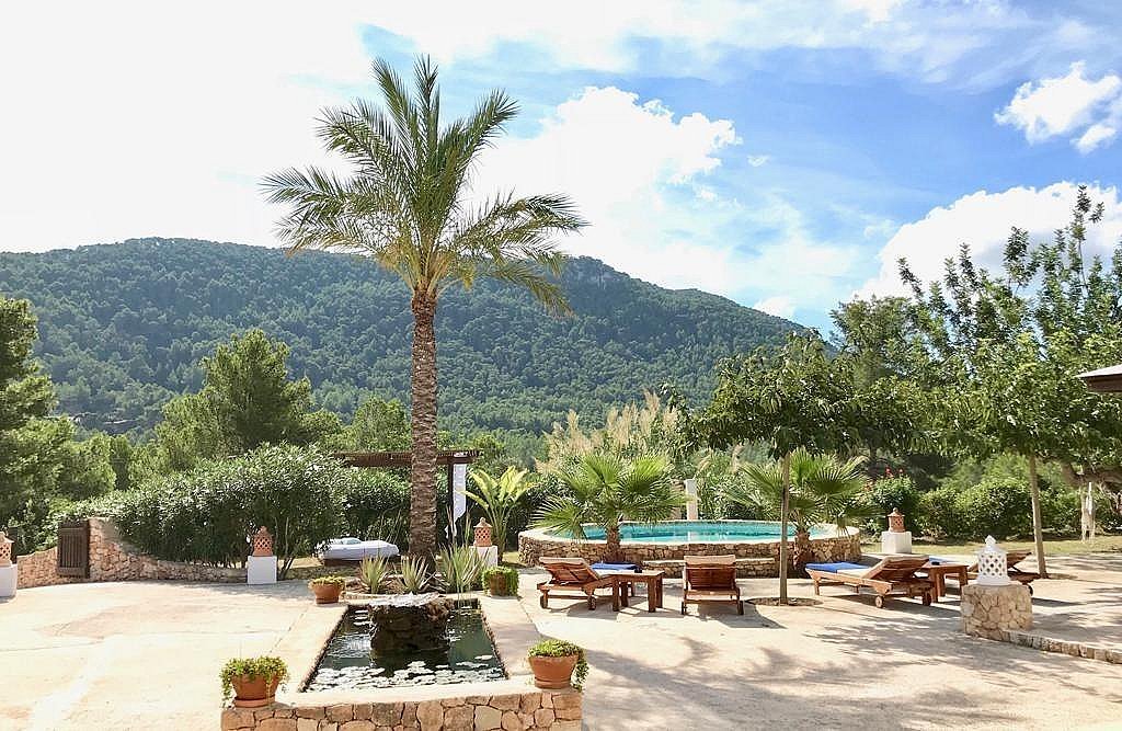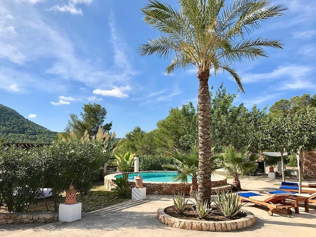 Ubicada en 80 000 m² de terreno natural protegido, esta encantadora villa de 300 años de antigüedad ha sido restaurada con mimo, conservando su carácter ibicenco original e incorporando las comodidades modernas. Con vistas a un pintoresco valle, este tranquilo refugio ofrece una verdadera escapada a la naturaleza.