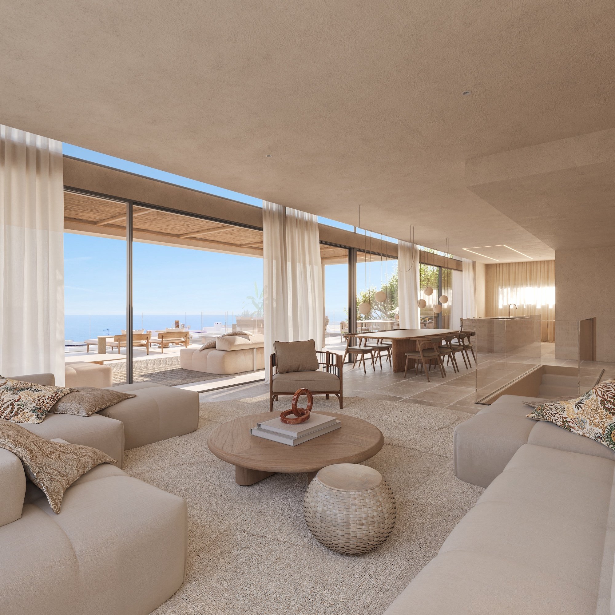 Las villas han sido concebidas para disfrutar de Ibiza durante todo el año, combinando arquitectura contemporánea de inspiración mediterránea con amplios espacios interiores y exteriores, grandes terrazas, jardines privados y piscinas perfectamente integradas en el paisaje. Viviendas luminosas, privadas y versátiles, ideales tanto como residencia habitual como segunda vivienda.