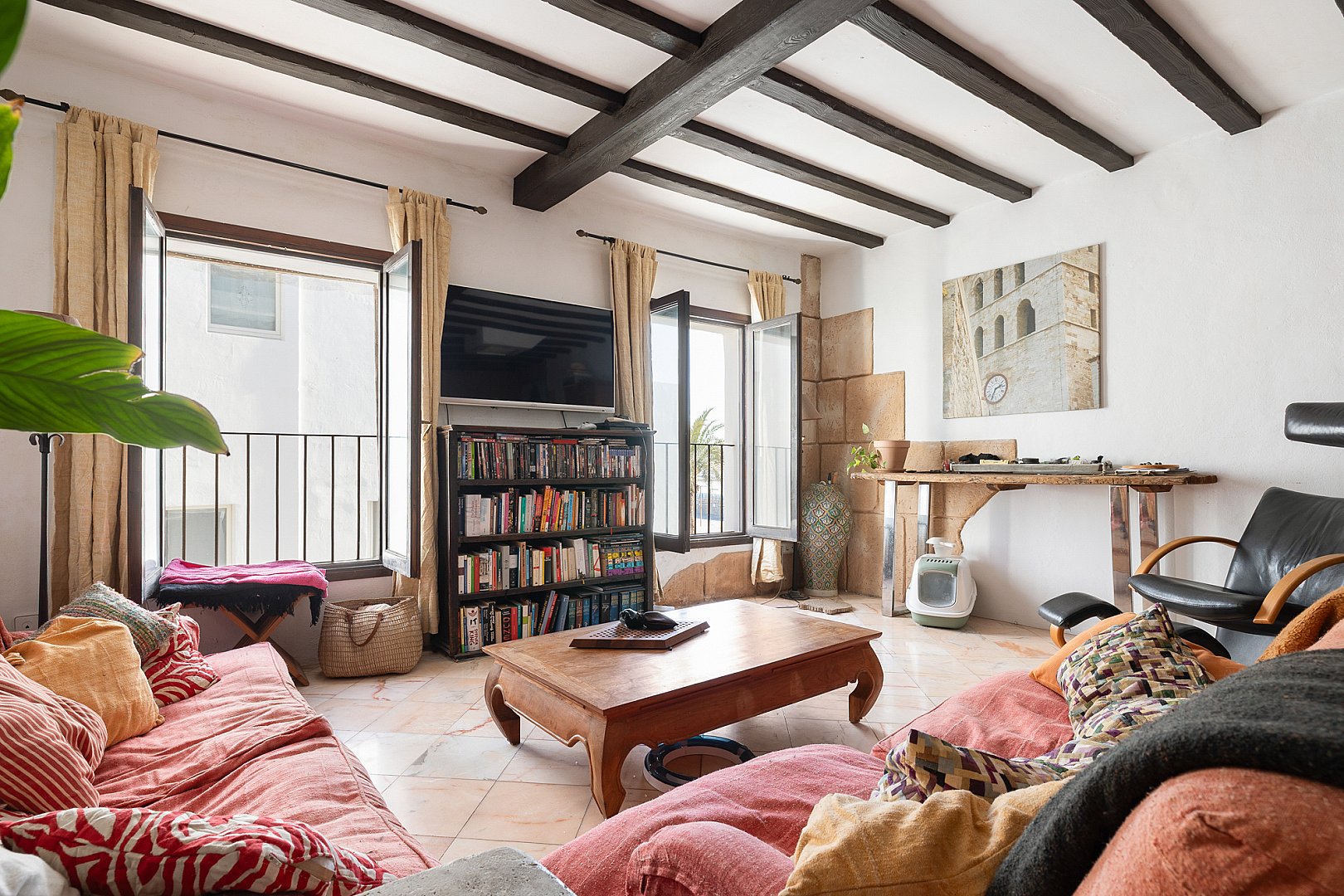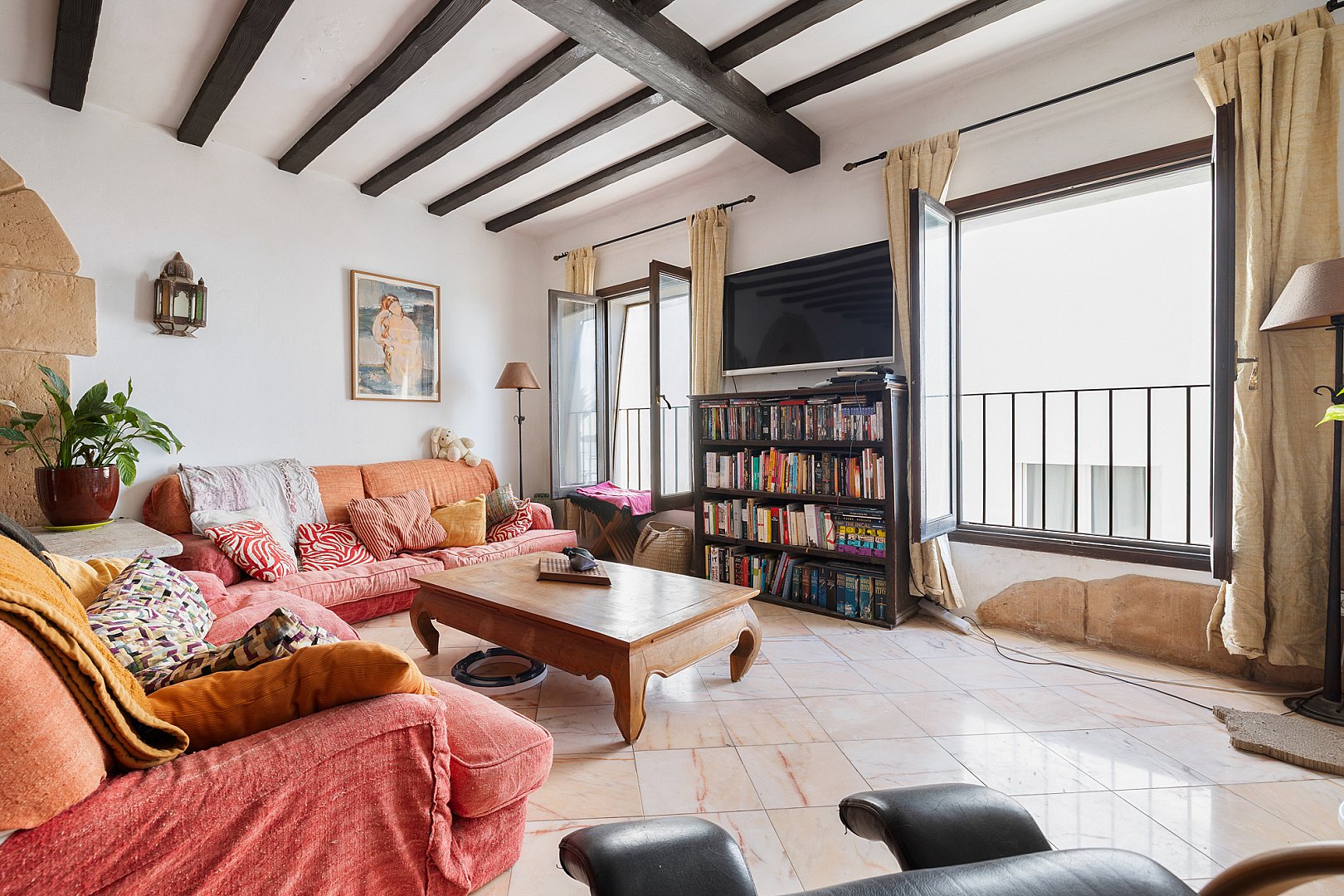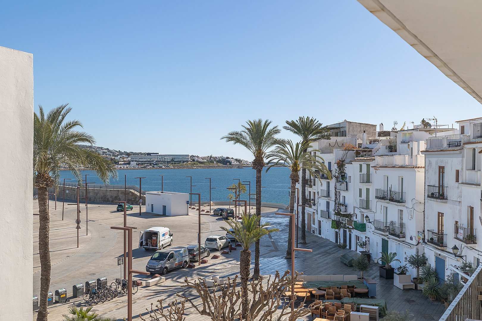 En el corazón de La Marina de Ibiza, este apartamento, bellamente presentado, ofrece tres estancias bien proporcionadas, incluidas dos habitaciones y dos baños, en un edificio con mucho carácter que data de 1920. Un refinado sentido del espacio y la luz define los interiores, donde el encanto atemporal se fusiona sin esfuerzo con una cómoda vida moderna. El apartamento está lleno de luz natural, lo que realza la sensación de amplitud en toda la vivienda. En su núcleo, una elegante cocina de planta abierta se integra perfectamente con la zona de estar, creando un espacio fluido y acogedor, perfecto tanto para la vida diaria como para recibir invitados. El salón es notablemente amplio y excepcionalmente cómodo, concebido como un lugar acogedor para relajarse, manteniendo a la vez una sofisticación discreta. Sobre él, los techos acabados en hermosa madera de sabina aportan calidez, textura y un distintivo carácter ibicenco que realza todo el espacio. La distribución está cuidadosamente pensada para una vida cotidiana sin esfuerzo, lo que lo convierte en un refugio ideal en la isla. La vivienda ofrece maravillosas vistas al puerto y al mar: un entorno idílico para disfrutar del estilo de vida mediterráneo, desde mañanas tranquilas hasta atardeceres. Con su procedencia clásica y su estado impecable, la vivienda ofrece un lujo discreto en un enclave muy codiciado. Una oportunidad excepcional de adquirir una residencia en Ibiza donde patrimonio, confort y estilo se unen en perfecto equilibrio, lista para disfrutar desde el momento en que llegas.