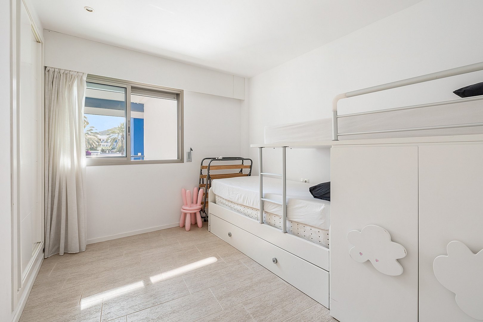 Situado en un hermoso edificio cerca del mar y a poca distancia de supermercados, restaurantes y tiendas de Santa Eulalia, encontramos esta oportunidad para ser propietario de un acogedor apartamento de tres dormitorios. Consta de un dormitorio principal con baño ensuite, más dos dormitorios dobles con un baño más. El luminoso salón invita a las reuniones con familiares y amigos, al igual que la terraza con vistas parciales al mar. En las zonas comunes hay una gran piscina, bonitos jardines e incluso un parque infantil. Con el apartamento también se incluye una plaza de aparcamiento en el garaje subterráneo.