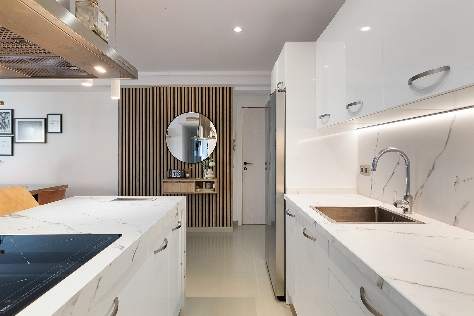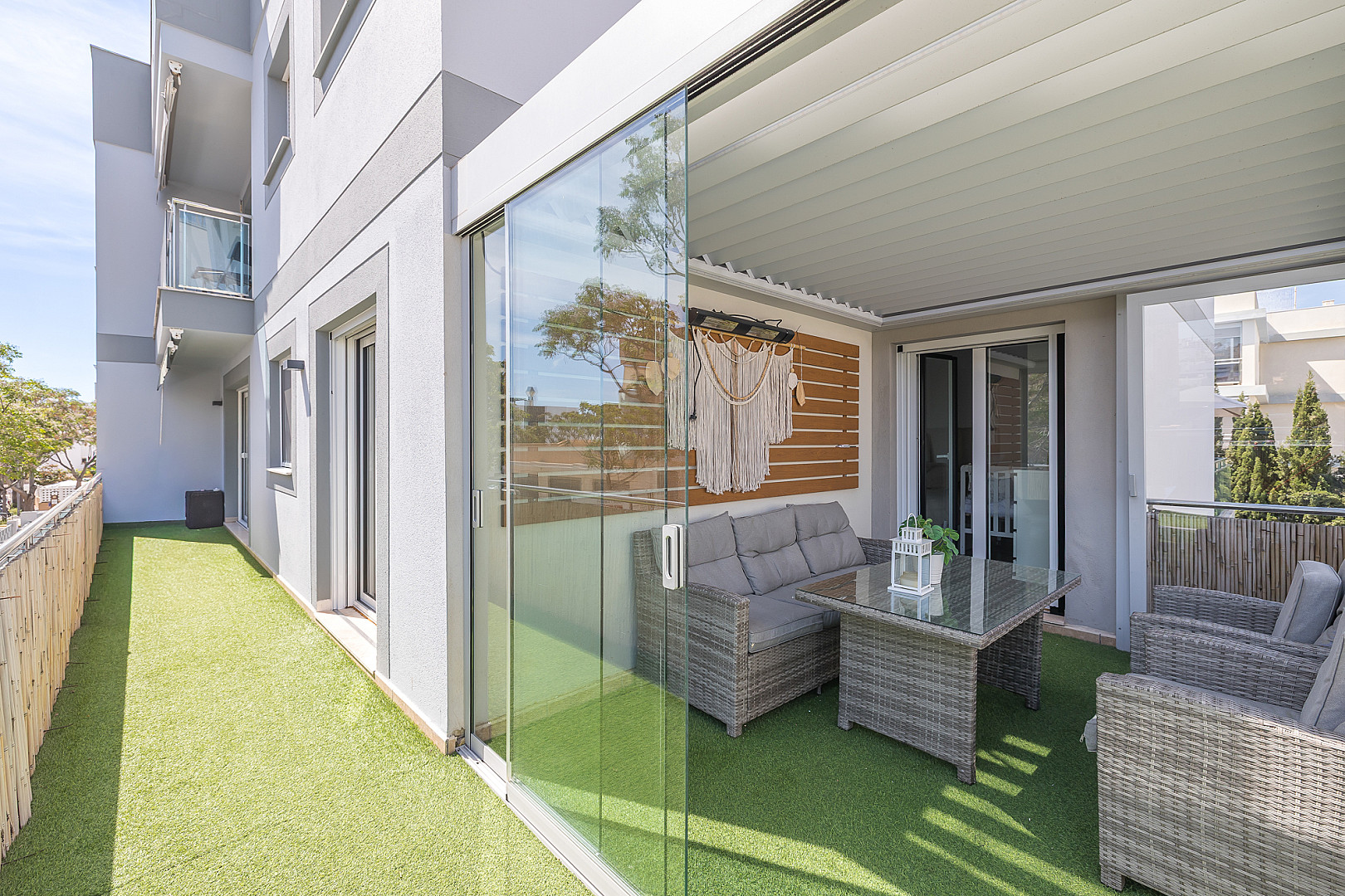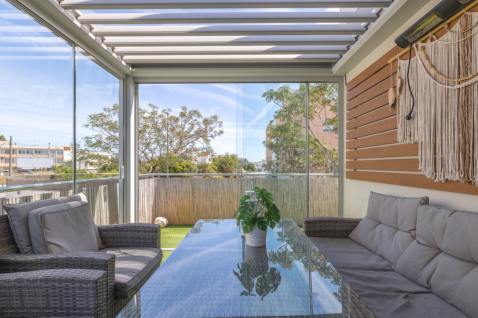 Questa propiedad representa un equilibrio perfecto entre diseño contemporáneo, confort y materiales de alta calidad, ofreciendo espacios luminosos, elegantes y funcionales. El inmueble dispone de tres dormitorios, todos caracterizados por una excelente exposición a la luz natural. El dormitorio principal cuenta con baño en suite, mientras que los otros dos comparten un segundo baño, cuidadosamente acabado. Dos de los dormitorios dan a una amplia terraza, realzada por una pérgola con cubierta eléctrica abatible, que permite disfrutar del espacio exterior en cualquier estación. Este ambiente se convierte en una extensión natural de la zona de día, ideal para almuerzos, cenas o momentos de relax al aire libre, garantizando al mismo tiempo privacidad y confort. El corazón de la vivienda es un amplio salón con cocina abierta, diseñado para potenciar la luminosidad y la continuidad de los espacios. La cocina, de diseño moderno y realizada con materiales de primera calidad, combina estética y funcionalidad, ofreciendo amplias superficies de trabajo y soluciones prácticas para la organización diaria. Completan la propiedad una zona de lavandería independiente y dos plazas de aparcamiento (una para coche y otra para moto), elementos que aumentan aún más la comodidad y la practicidad, haciendo de esta vivienda una opción ideal tanto para la vida familiar como para el entretenimiento.