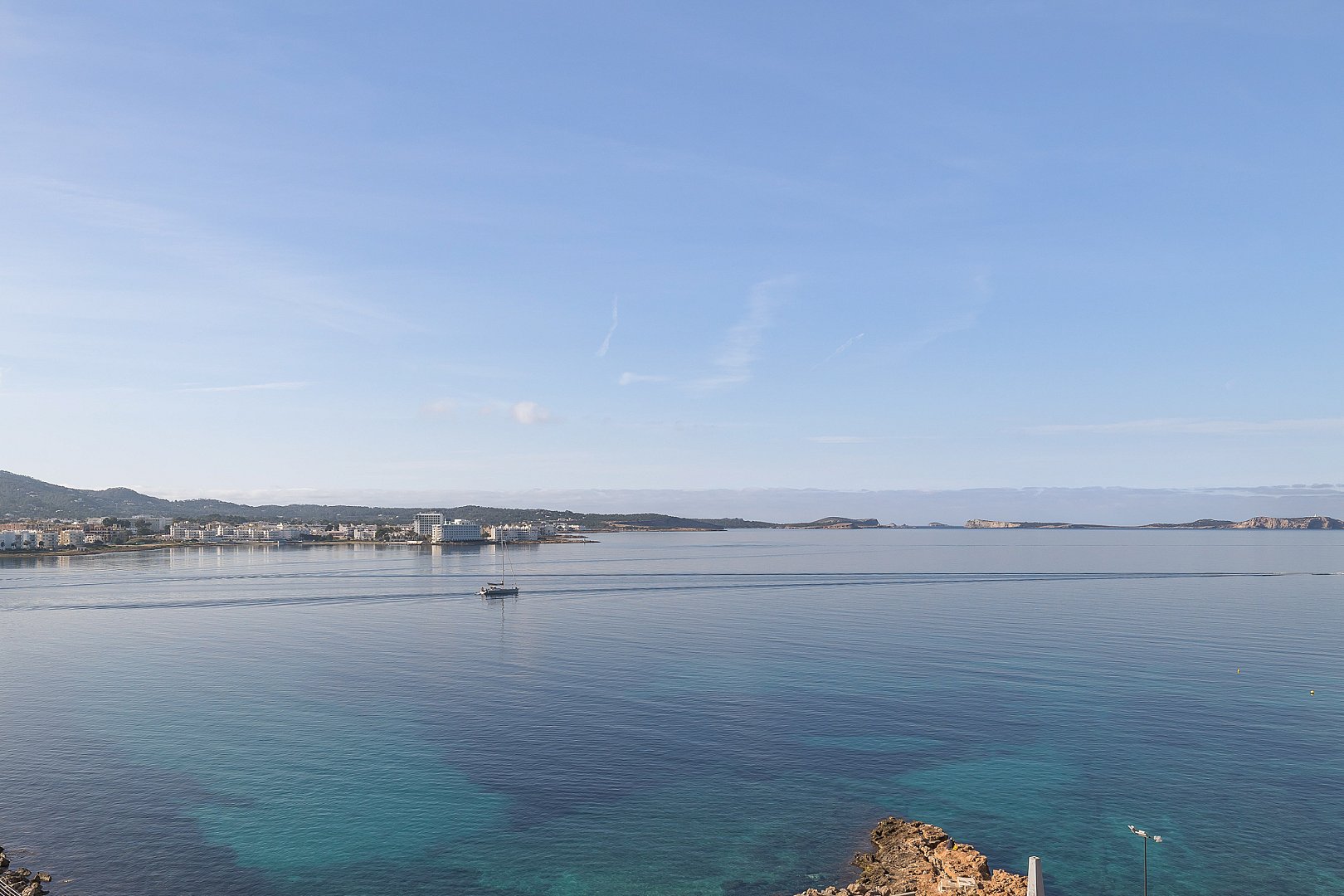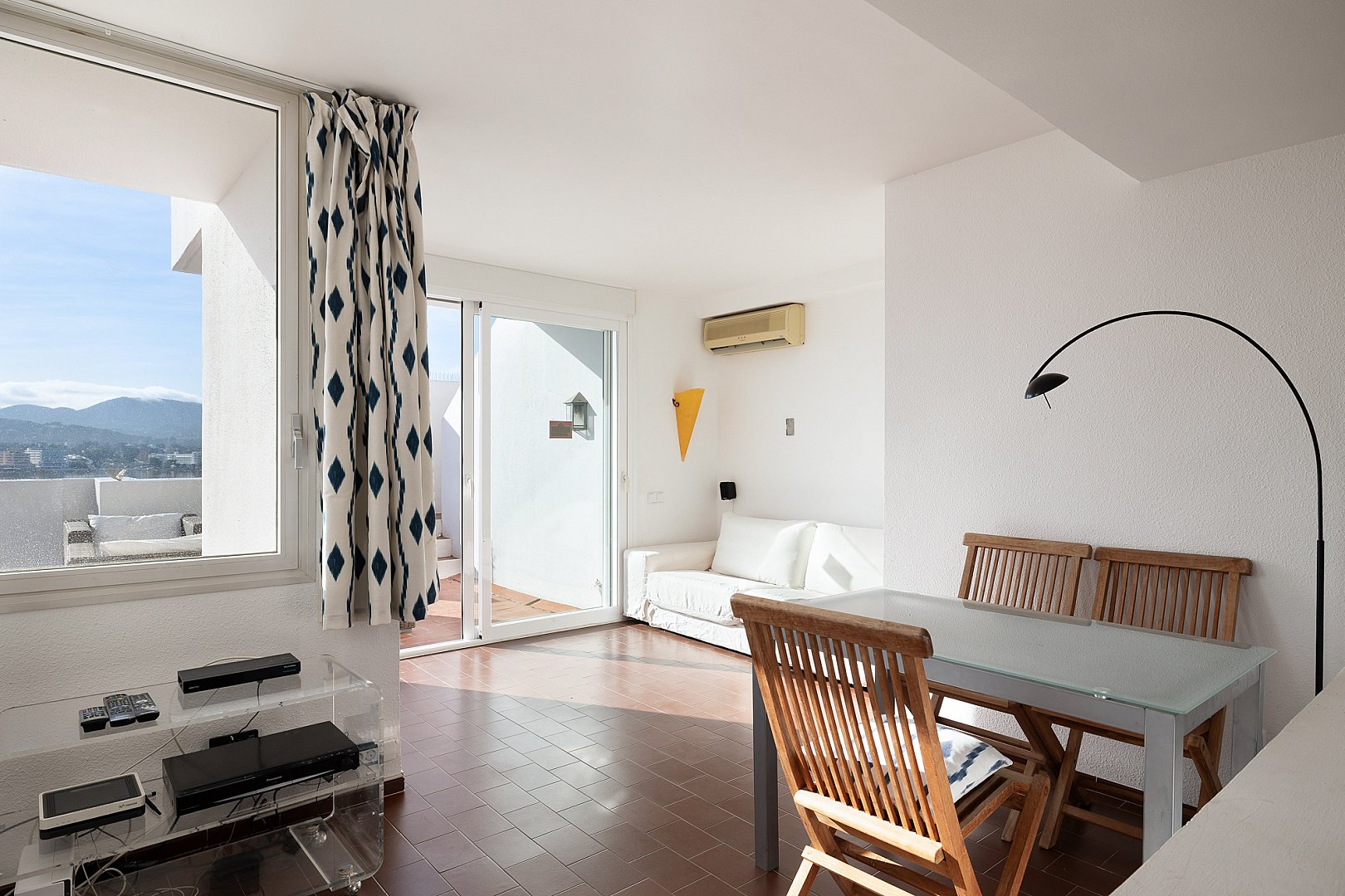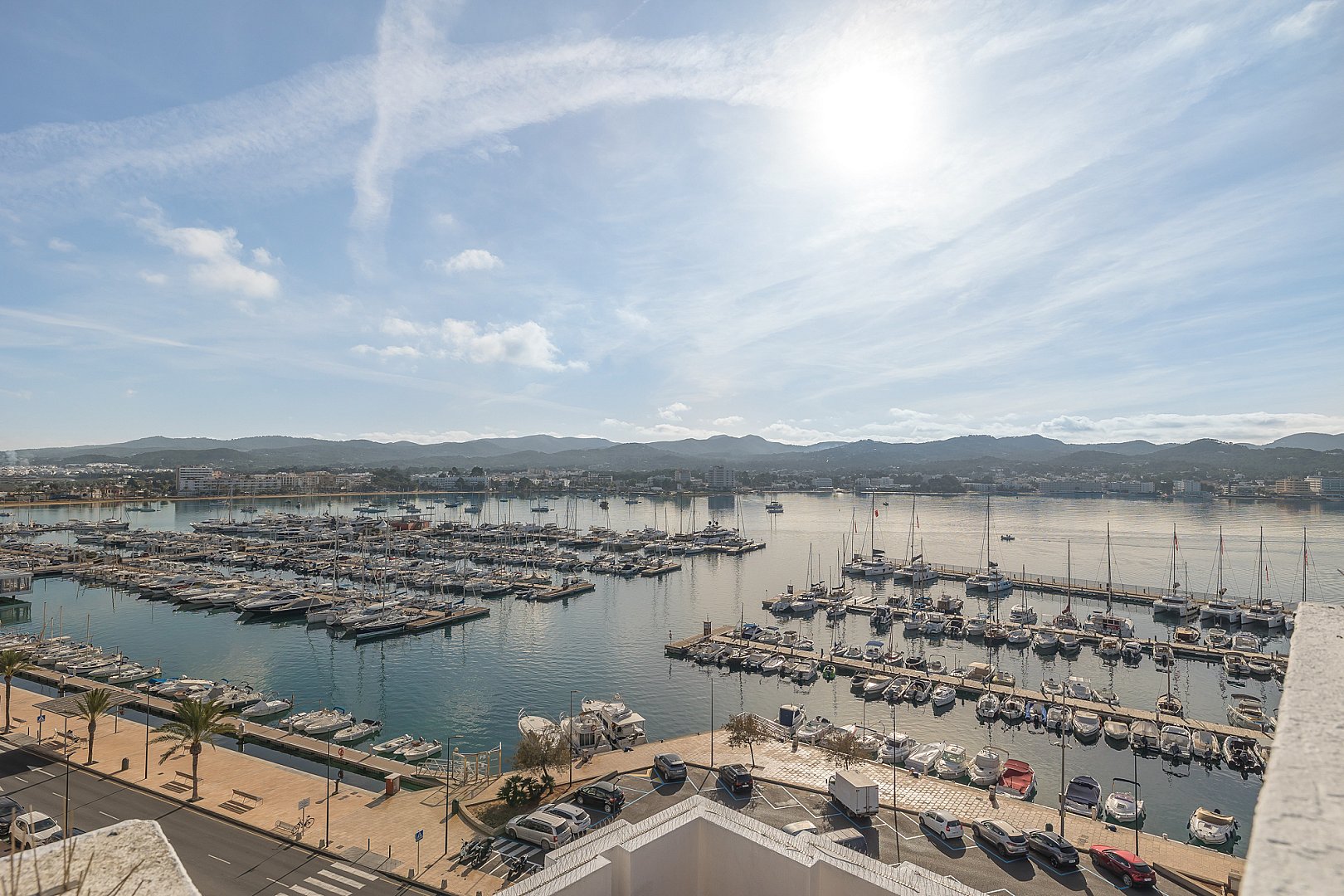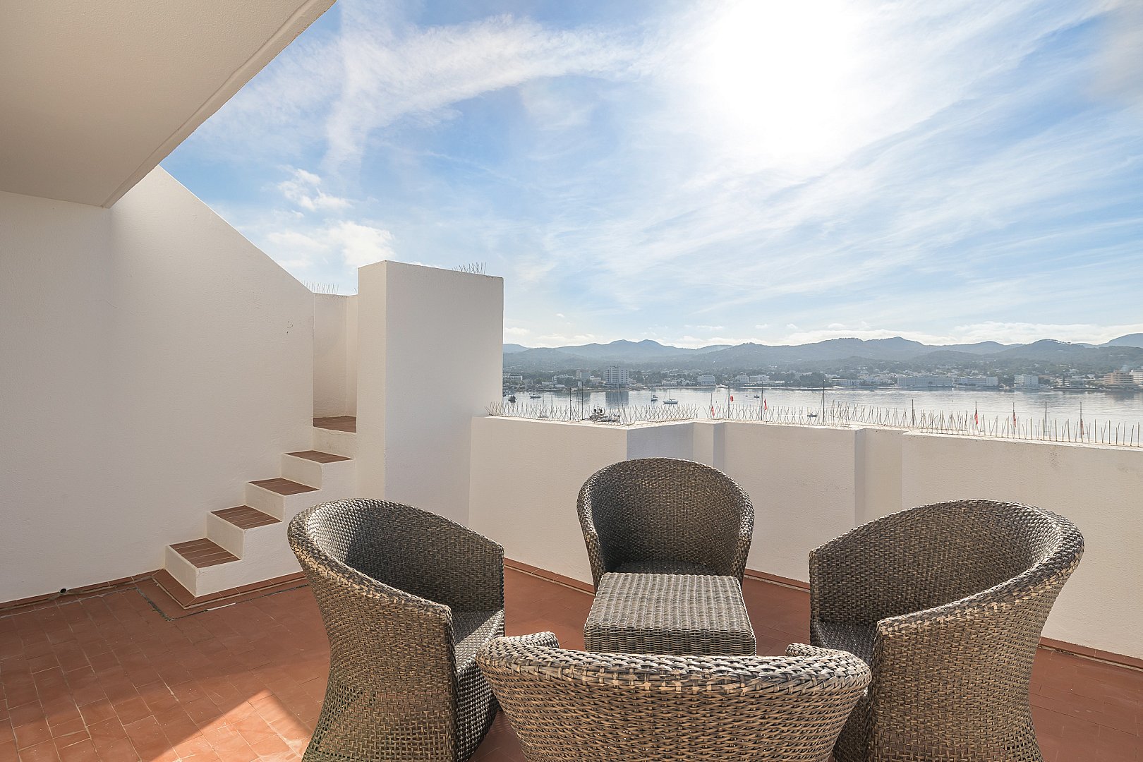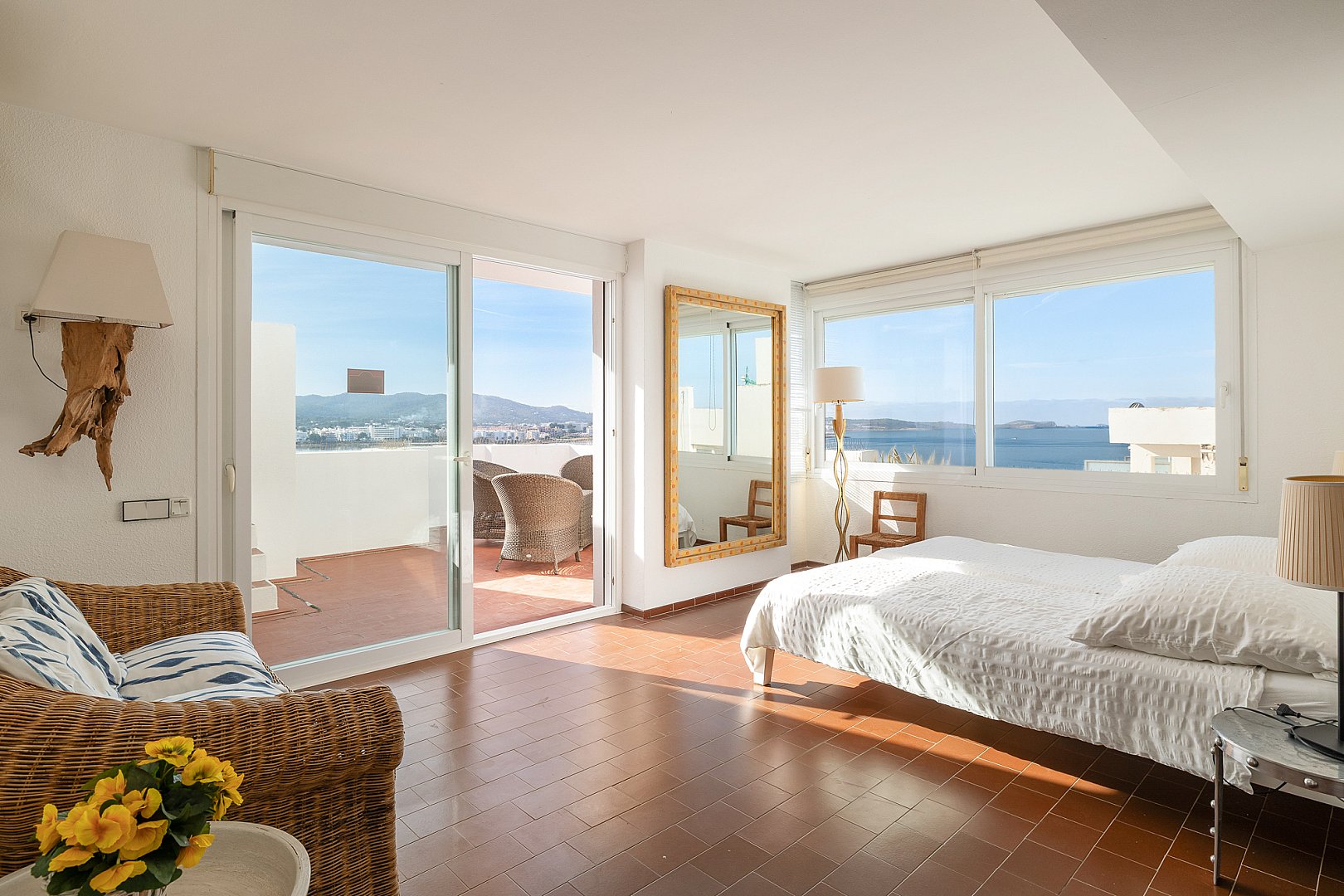 Este excepcional ático es el resultado de la fusión perfecta de dos apartamentos en una amplia residencia, ocupando el último piso del edificio. Situado directamente frente a la Bahía de San Antonio, la propiedad disfruta de vistas ininterrumpidas y luz solar durante todo el día, creando un ambiente de vida luminoso y estimulante desde la mañana hasta la noche. El interior ofrece un diseño bien equilibrado con dos salas de estar, tres dormitorios de generoso tamaño y dos baños modernos, diseñados para combinar comodidad con funcionalidad. Cada espacio se siente abierto y acogedor, realzado por la luz natural que fluye a través del apartamento gracias a su orientación privilegiada. Sin embargo, lo que realmente distingue a este ático es su extraordinario espacio exterior. La propiedad cuenta con una terraza notablemente grande que se extiende a lo largo de dos niveles, ofreciendo infinitas posibilidades para la vida al aire libre. Ya sea para tomar el sol, entretener a los invitados, cenar bajo el cielo abierto o simplemente relajarse mientras se contempla la bahía, esta terraza de múltiples niveles transforma la vivienda en un retiro urbano privado y la eleva a una oferta rara y muy deseable.