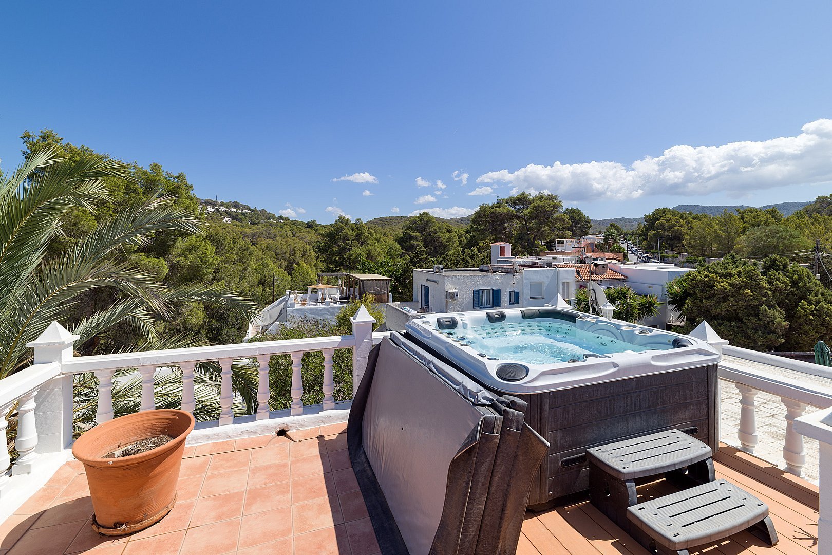 Esta encantadora casa independiente está situada en la hermosa zona de Cala Tarida, en la codiciada costa oeste de Ibiza. A tan solo unos minutos a pie de la pintoresca bahía, de playas de arena y de servicios diarios, la propiedad combina una ubicación práctica con una atmósfera residencial tranquila. Los espacios exteriores invitan a disfrutar plenamente del estilo de vida mediterráneo. Un rincón privado con barbacoa y una terraza sombreada crean el escenario perfecto para veladas relajadas con familia y amigos, mientras que la amplia azotea ofrece vistas panorámicas ininterrumpidas y mágicos atardeceres durante todo el año. Un jacuzzi añade un toque extra de confort, haciendo de esta casa el lugar ideal tanto para el relax como para el entretenimiento. En el interior, la planta baja está inteligentemente distribuida con una cocina totalmente equipada, un luminoso comedor y una acogedora sala de estar que conecta de manera fluida con la terraza. En este nivel se encuentra también un dormitorio de invitados. En la planta superior, dos dormitorios adicionales con sus baños ofrecen privacidad y comodidad, y la terraza superior se abre directamente a la generosa azotea. Gracias a su armoniosa combinación de vida interior y exterior, espacio de aparcamiento privado y una ubicación que equilibra accesibilidad con belleza natural, esta propiedad representa una excelente oportunidad tanto como segunda residencia o vivienda familiar, como también una atractiva inversión en la costa oeste de Ibiza.