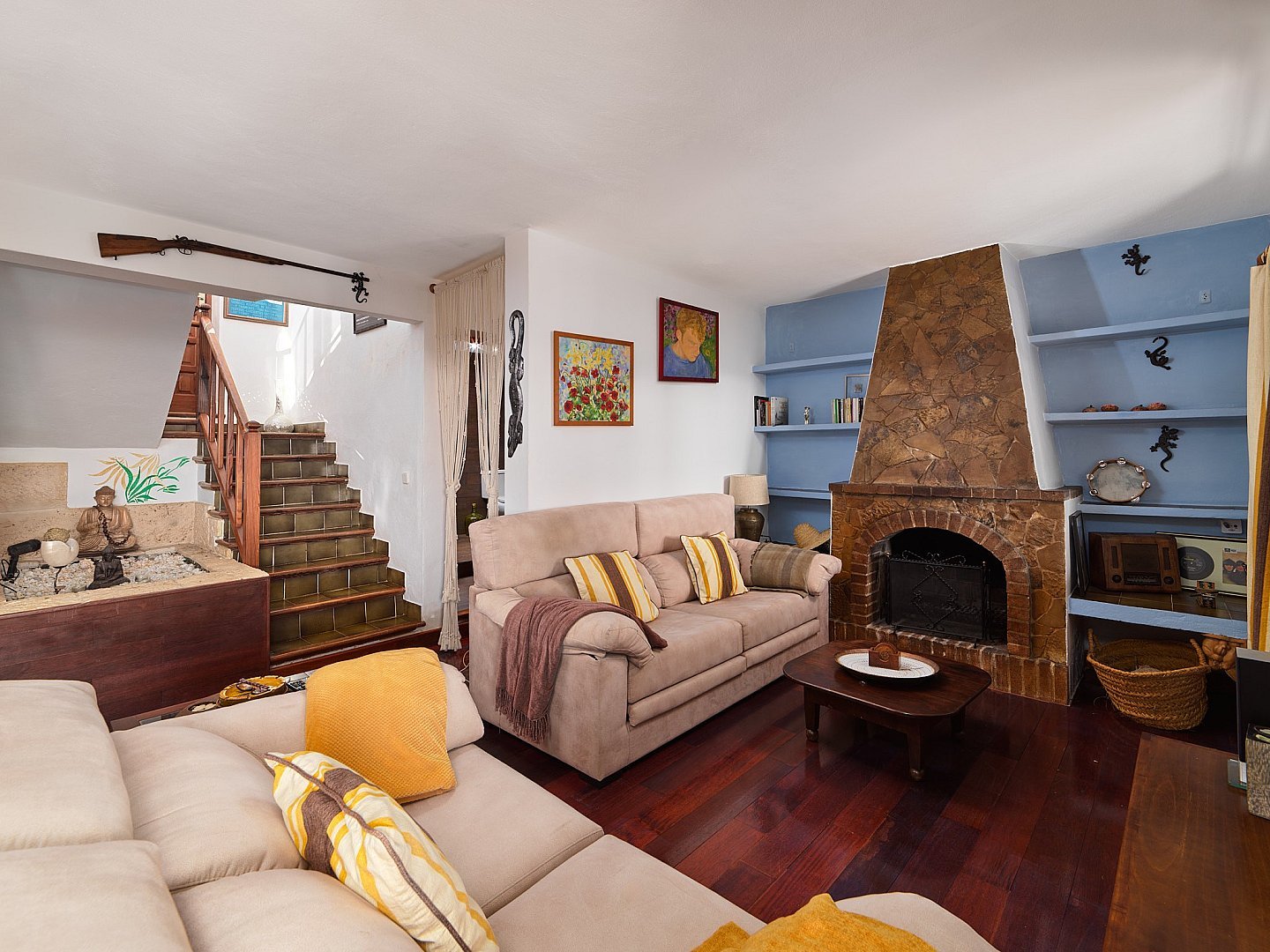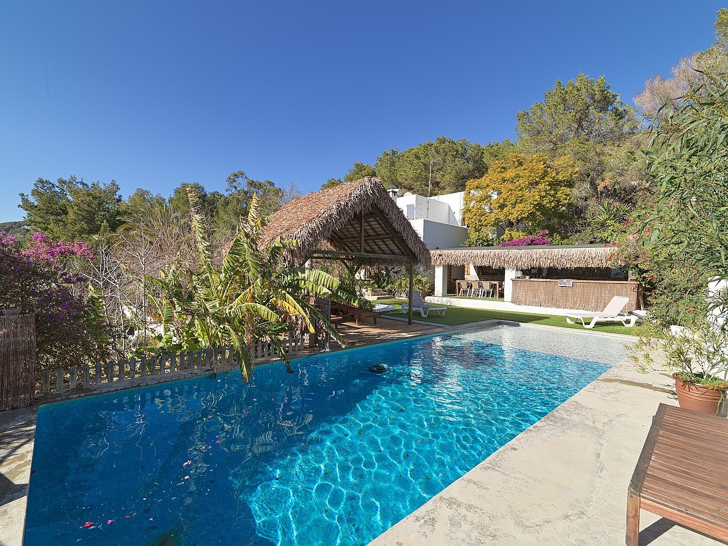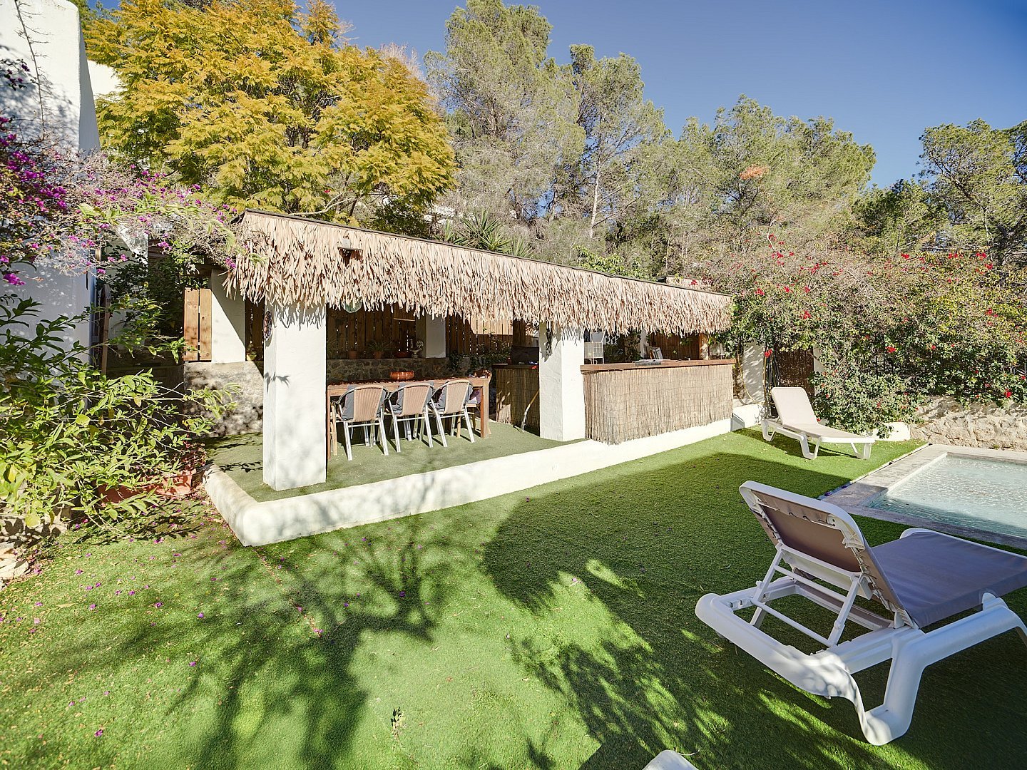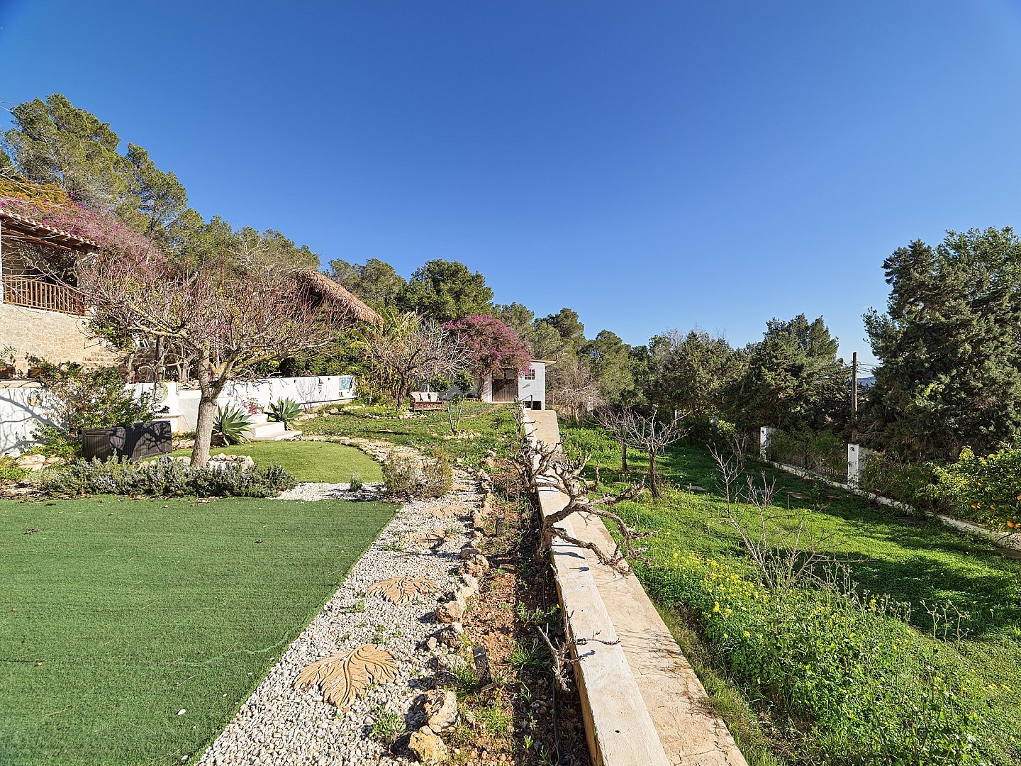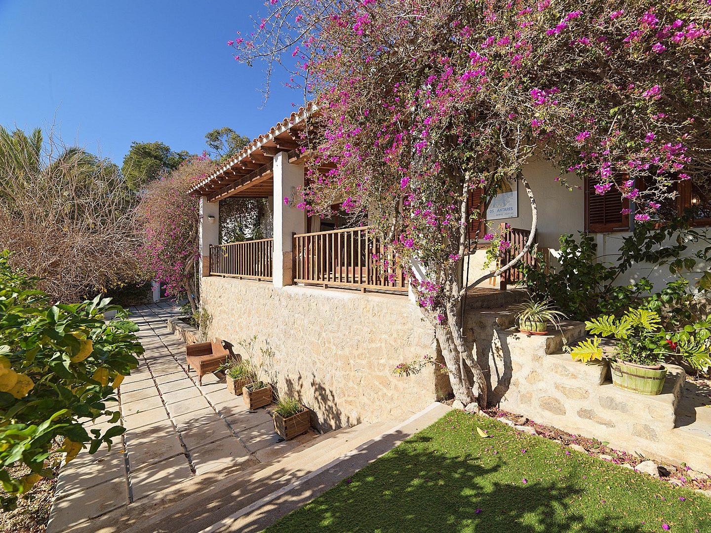 Esta encantadora casa rústica se encuentra en uno de los lugares más codiciados y exclusivos, a poca distancia de la ciudad de Ibiza, y cuenta con una licencia de alquiler junto con inmejorables vistas al mar, Formentera y Salinas. Orientada al sur, la propiedad disfruta de sol durante todo el día. La casa principal cuenta con cuatro amplios dormitorios, mientras que un estudio independiente, totalmente equipado, ofrece espacio de vida adicional. La zona exterior es un verdadero paraíso mediterráneo, con una piscina de agua salada de estilo playero, bar, barbacoa, horno tradicional ibicenco y un comedor al aire libre, el escenario perfecto para relajarse y disfrutar del soleado clima de Ibiza. Tanto si busca un hogar tranquilo cerca de la naturaleza con todos los servicios cerca, como si está considerando una inversión en el mercado de alquiler vacacional, esta propiedad es una oportunidad excepcional.